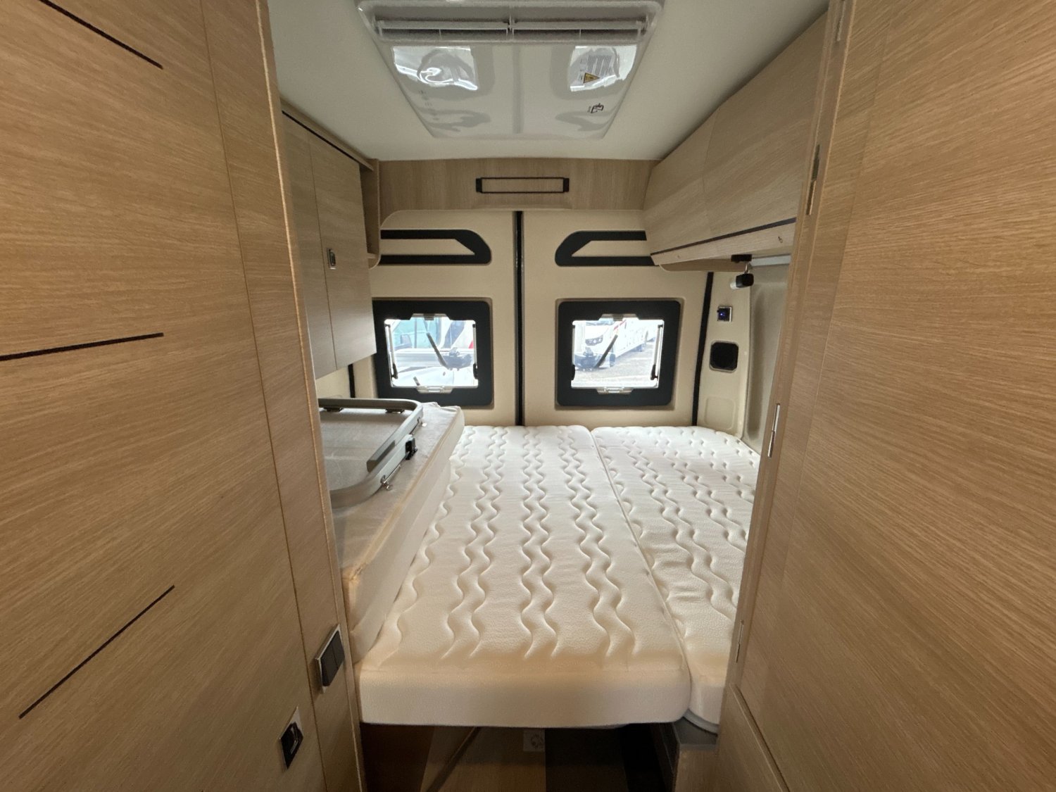 Fourgon aménagé compact (5,99 m). 4 places carte grise / 3 couchages (lit transversal + banquette convertible). Motorisation 2.2 L – 140 ch sur porteur Peugeot Boxer. Lit arrière confortable 132 × 195 cm, salon modulable et convivial, cuisine équipée, salle d’eau avec douche séparée + WC, grand frigo (˜ 146 L) et rangements bien pensés. Isolation thermique renforcée, aménagement intelligent (penderie modulable « MODUL’SPACE® »), chauffage intégré et confort de conduite optimal : idéal pour voyager librement et profiter d’une vraie autonomie sans dépasser les 6 m.