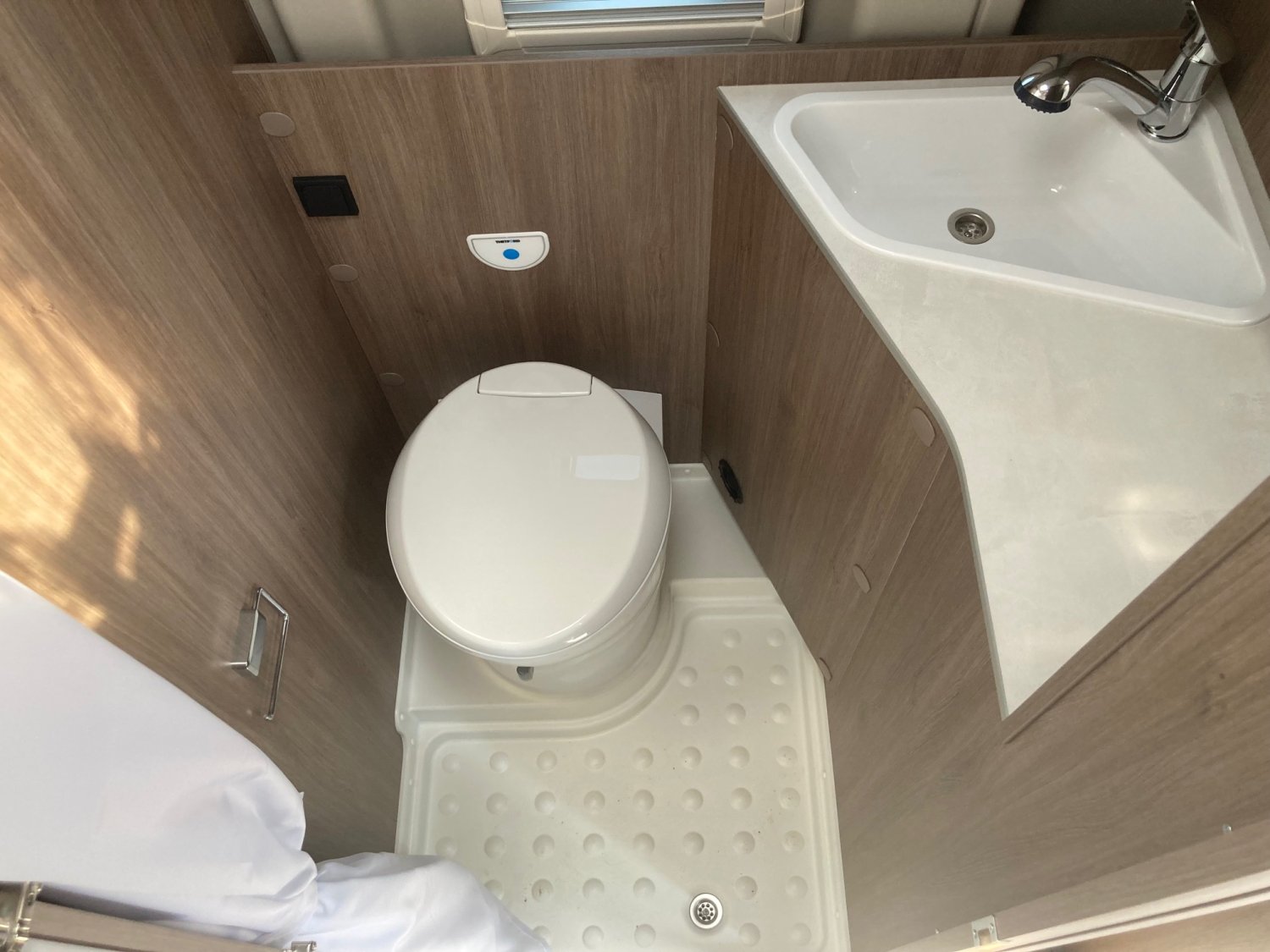 Pack Confort (Lanterneau Midi Heki 70 x 50 cm dans salon, Équipement douche (pommeau de douche extractible, rideau de douche, rail de guidage, support pour le pommeau), Baie dans la salle d’eau, Tringle à vêtements dans la salle d’eau, Large marchepied, Rallonge pivotante de la table dînette)3ème place couchagePrécablage caméra de reculPrécablage panneau solaireAmbiance Ice