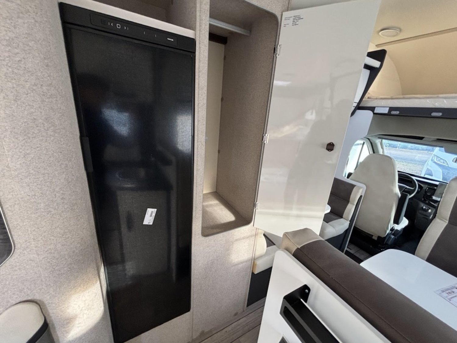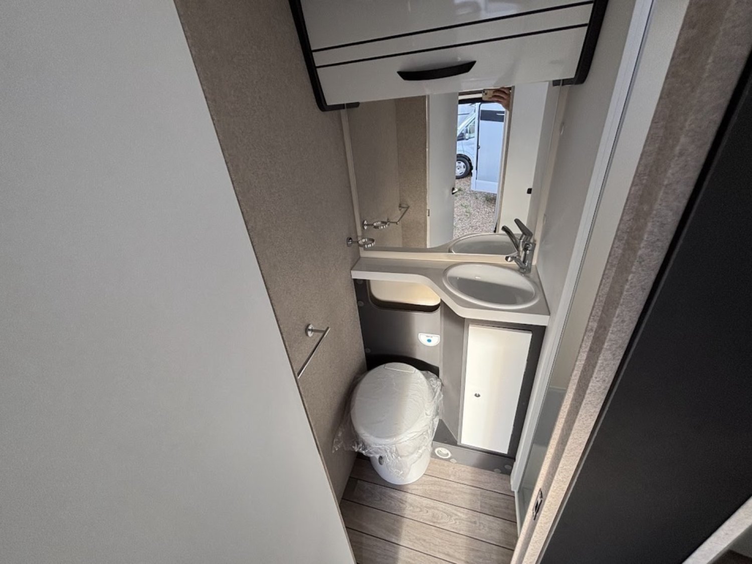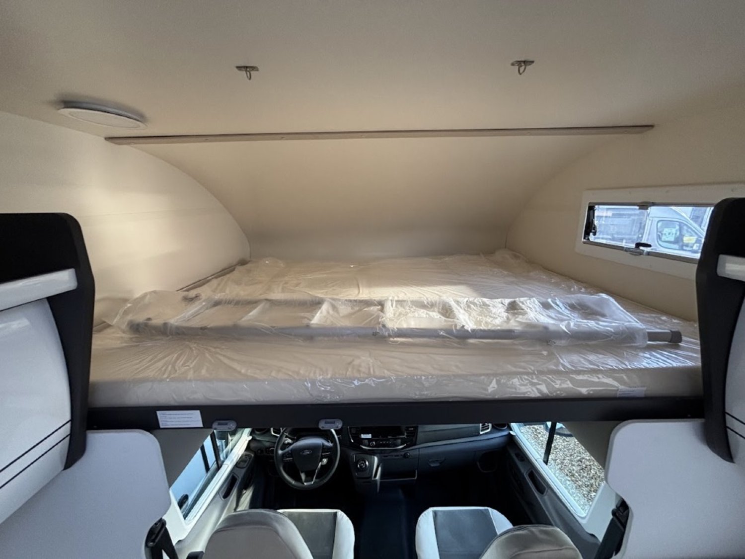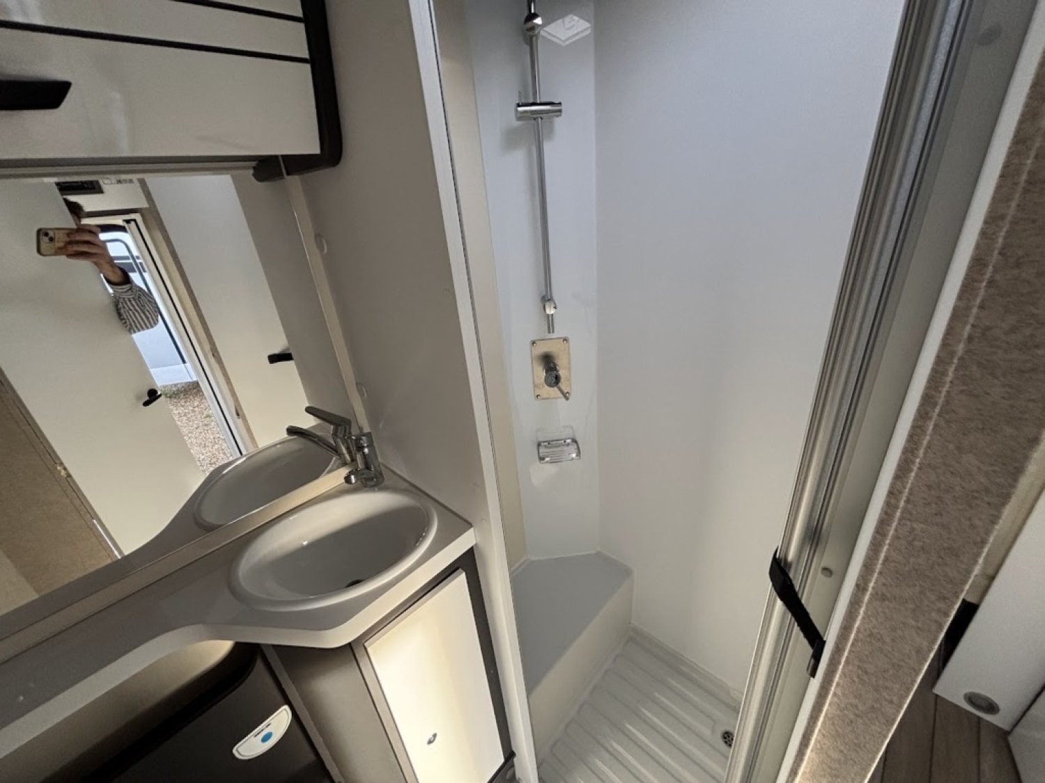 Bac de douche, Cuisine en L, Lit capucine, Lit dînette avant, lit superposés, Salon double dînette avant, Soute, WC Cassette.
