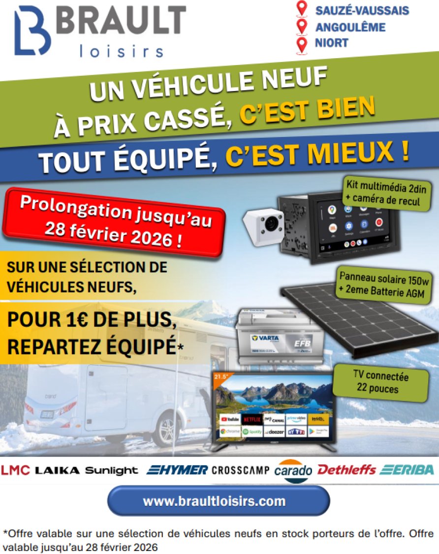 Offre de financement réservée à l’achat d’un camping-car neuf en stock pour une durée limitée et selon