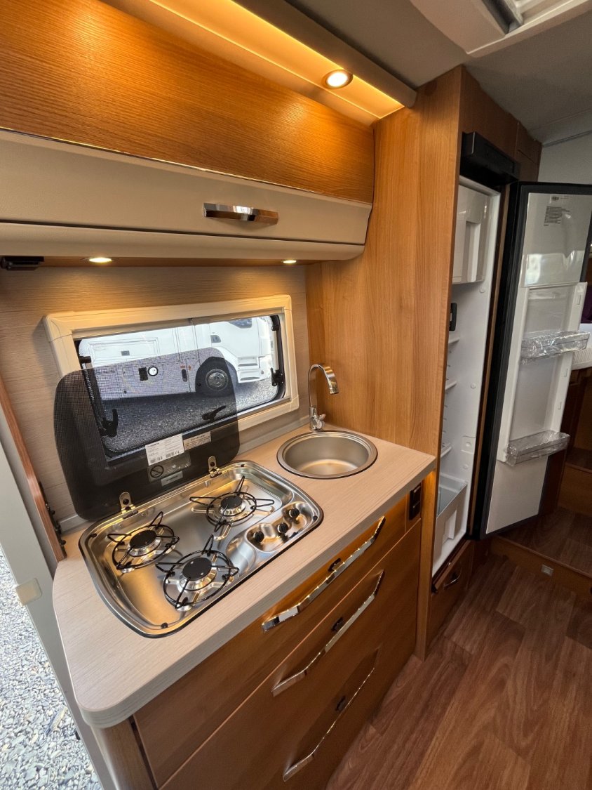 Résolument moderne avec une finition automobile, ce camping-car à le gros avantage de proposer une largeur réduite de 2,20m pour une longueur de 7m. Implantation parfaite lits jumeaux et lit pavillon, douche vario, soute garage il est idéal pour une famille de 4 qui n’envisage pas un grand intégral de 7,50m.