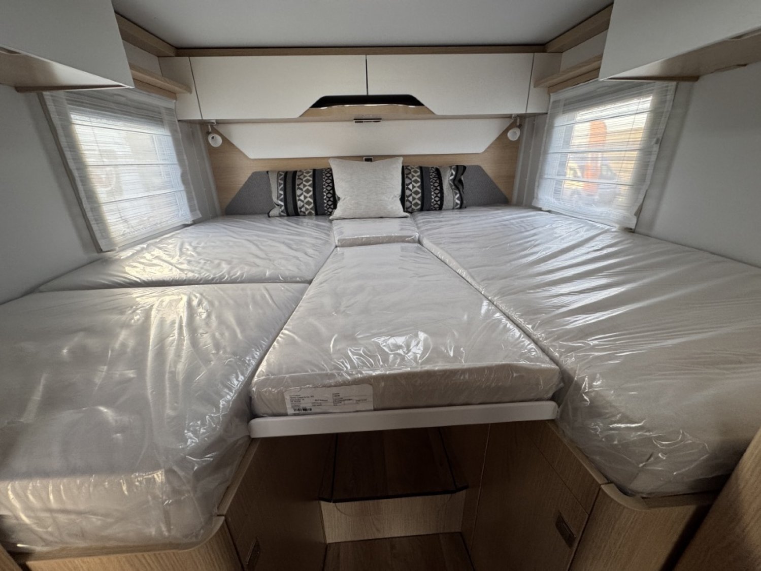 PACK CONFORT CELLULE : Caillebotis de douche avec surface en boisDraps-housses sur mesure pour lits arrière adaptés aux contours du matelasCoussins avec housses (4 pièces)Système Ambient Light : système d éclairage à plusieurs niveaux avec commande dynamique et individuelle (y compris l intensité de la lumière) ainsi qu un balisage au solPrises supplémentaires : 4 x 230 V (2 x garage ; 1 x dînette ; 1 x lit) / 1 x 12 V / 1 x double USB (y compris crédence cuisine)