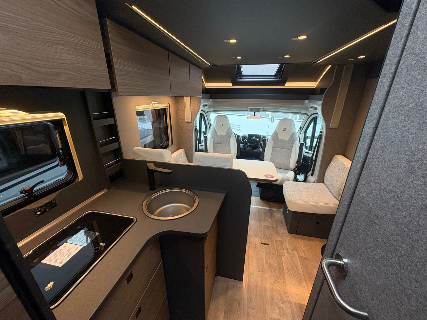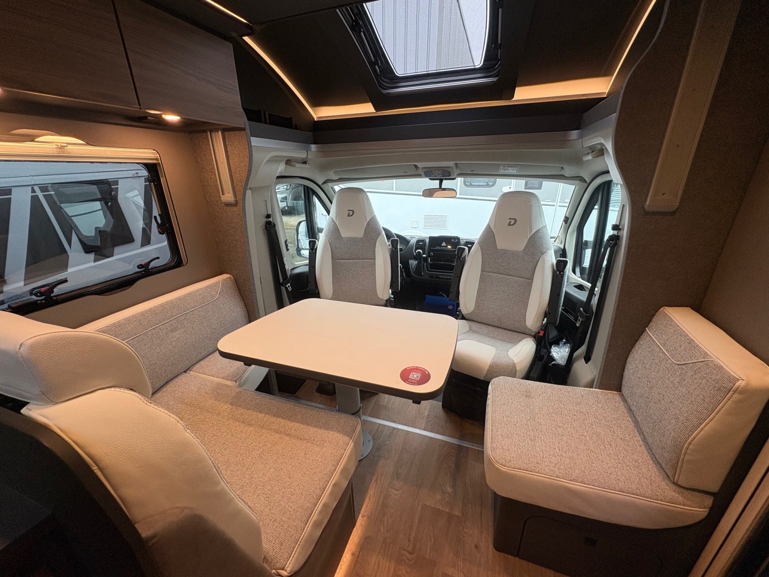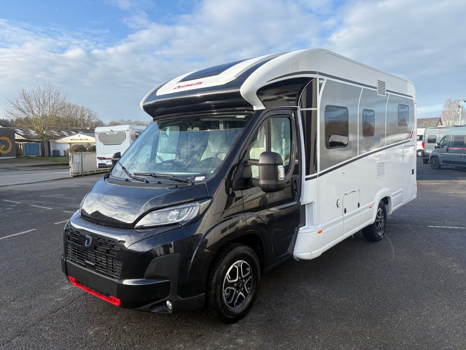 Camping-car haut de gamme de la marque DETHLEFFS, avec lits jumeaux et lit pavillon électrique