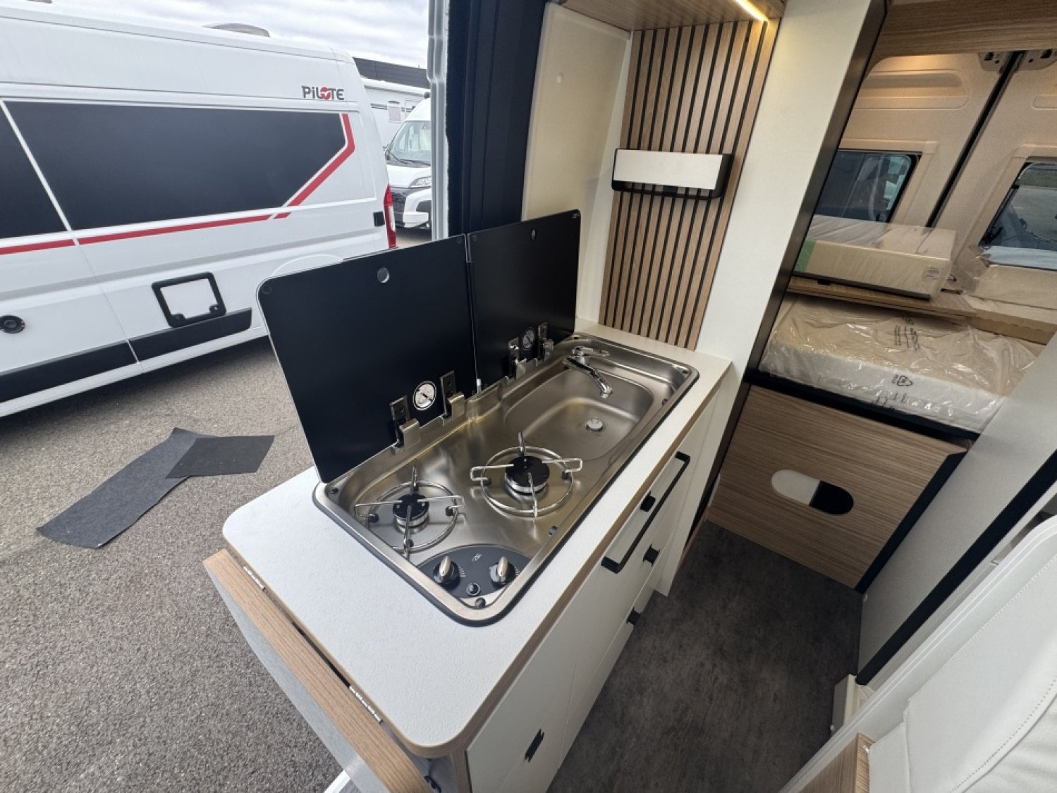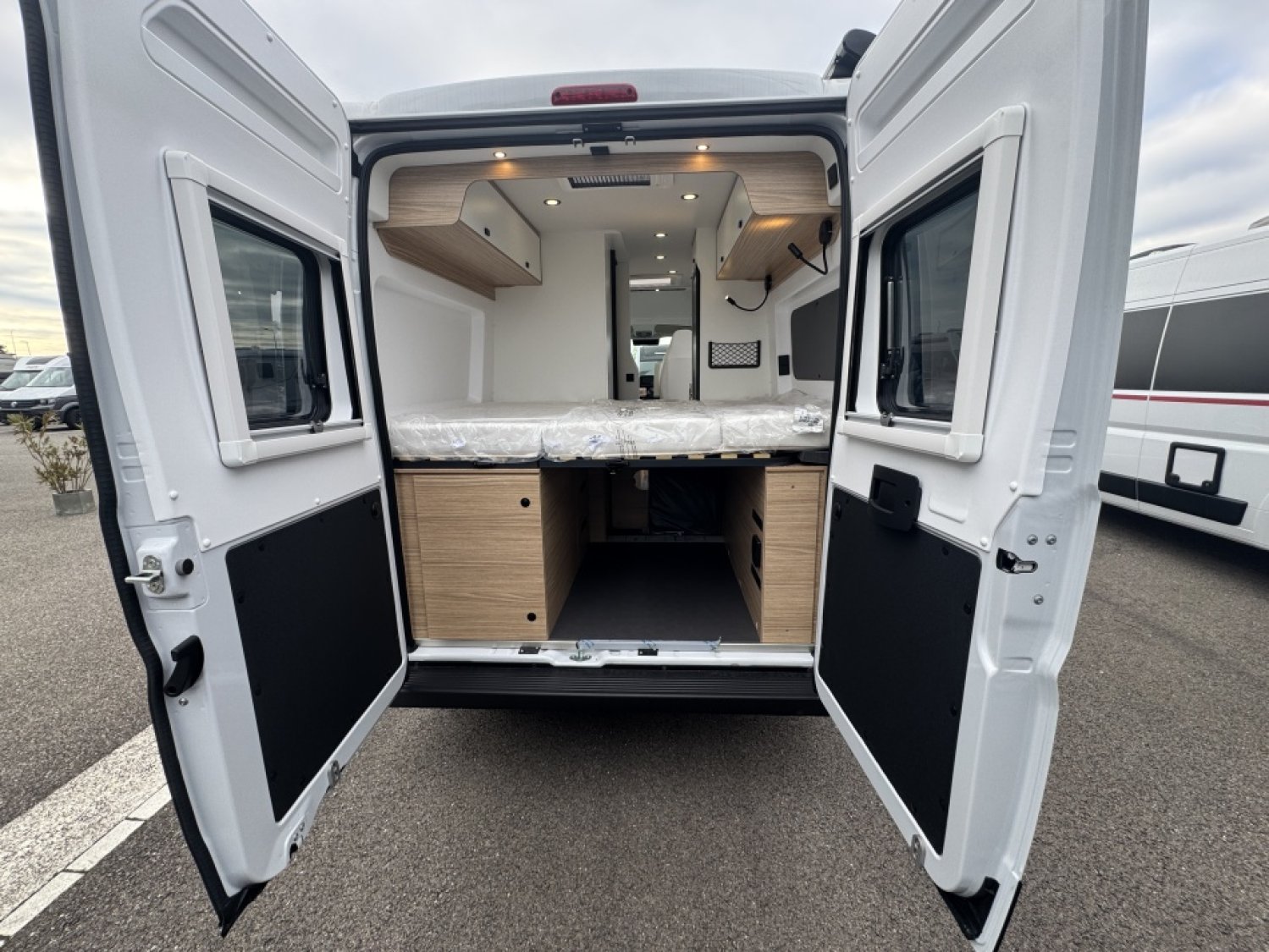 Parce qu’il offre le meilleur mix entre compacité et confort haut de gamme. Sa boîte automatique Euro 6E, son lit transversal, son double couchage possible, et son équipement complet en font un compagnon de voyage idéal toute l’année.Autonome grâce à son panneau solaire, confortable avec son chauffage gaz Truma, moderne avec son multimédia complet, le V600G Evidence coche toutes les cases du fourgon aménagé premium. Que ce soit pour les escapades spontanées ou les road trips plus ambitieux, il garantit qualité, fiabilité et plaisir de conduite.
