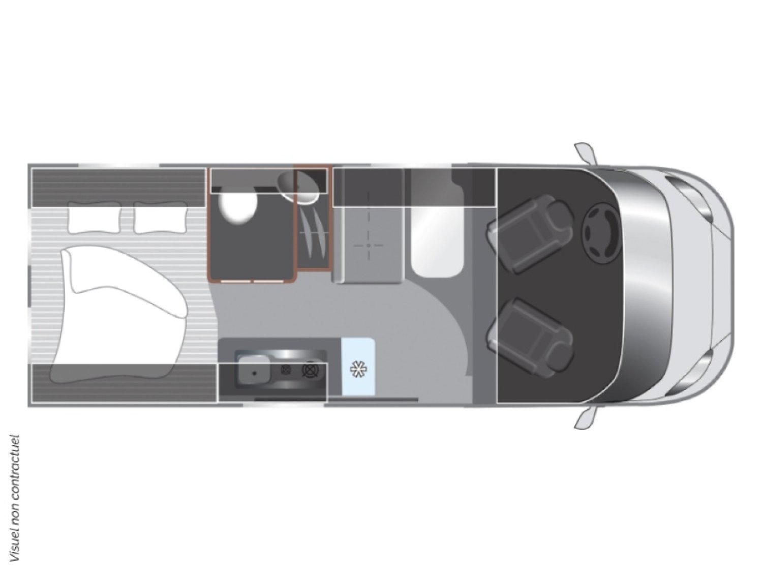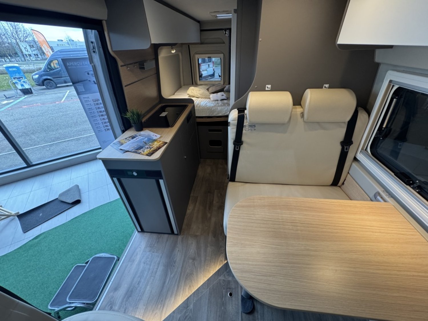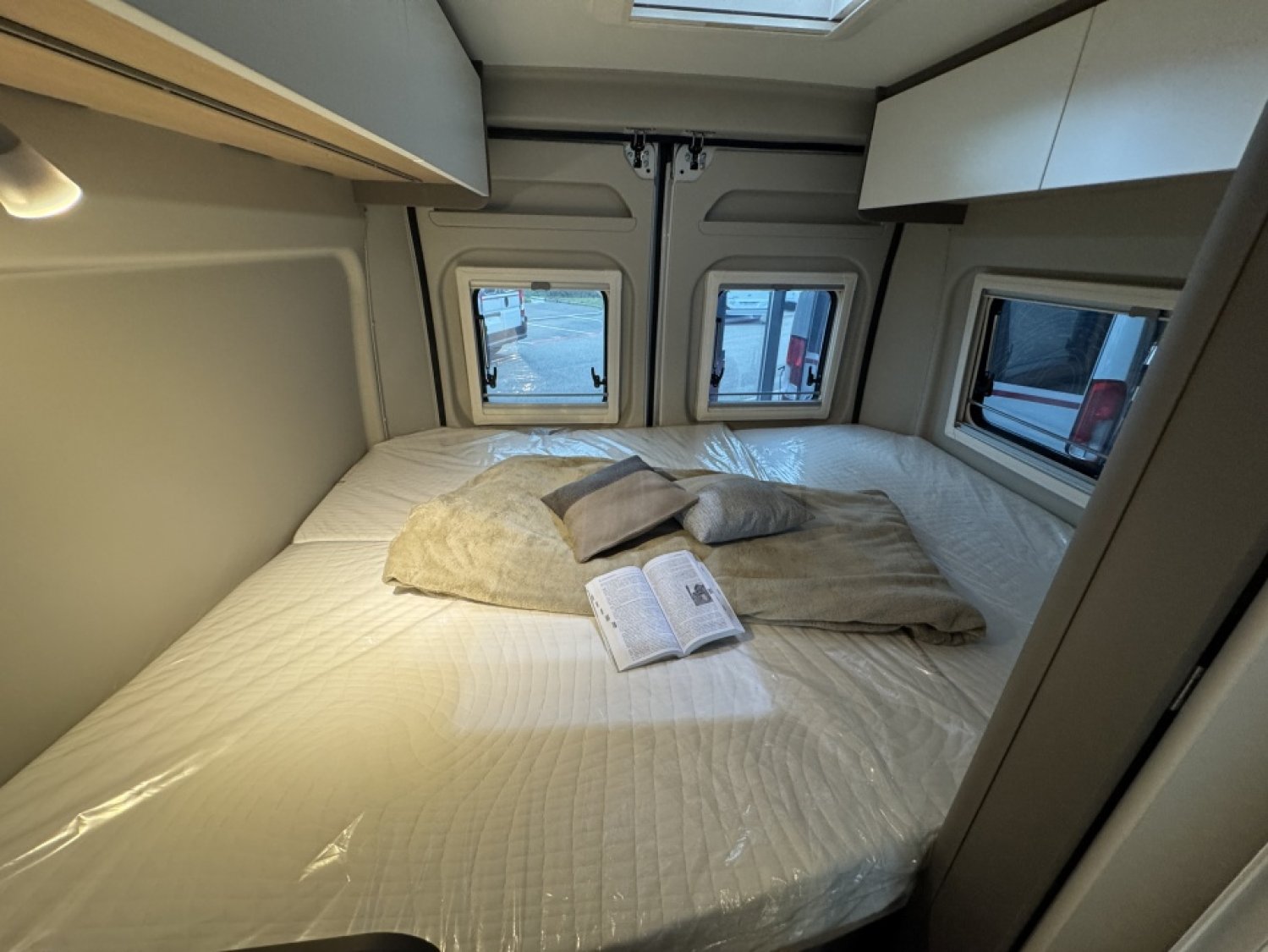 Reposant sur le Fiat Ducato 2.2 D 140 ch associé à une boîte automatique, l’Innovan 600 offre une conduite fluide et agréable. Son lit transversal arrière, sa cuisine fonctionnelle et son aménagement optimisé en font un compagnon idéal pour voyager à deux, toute l’année.