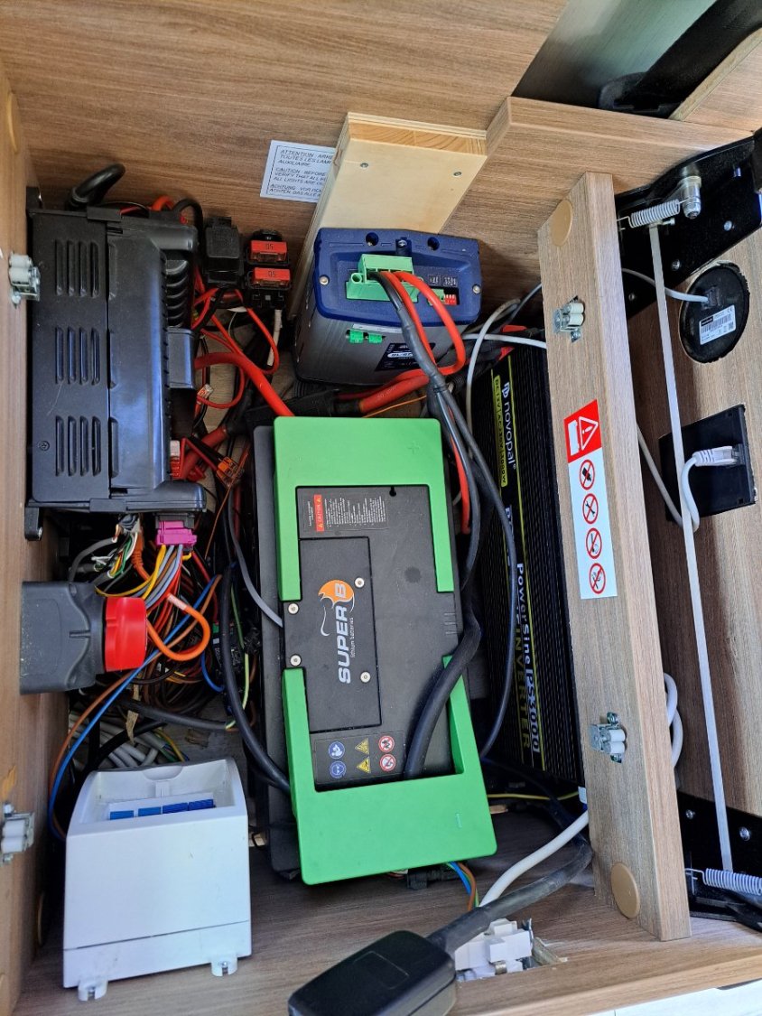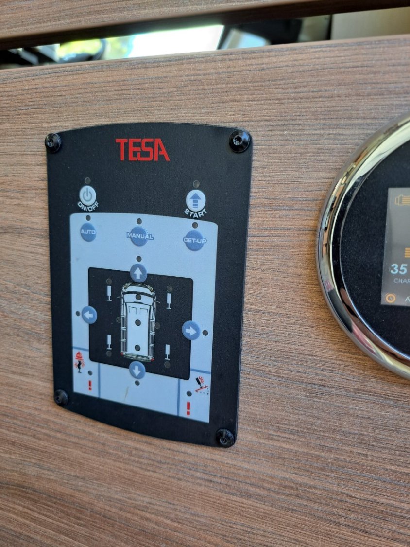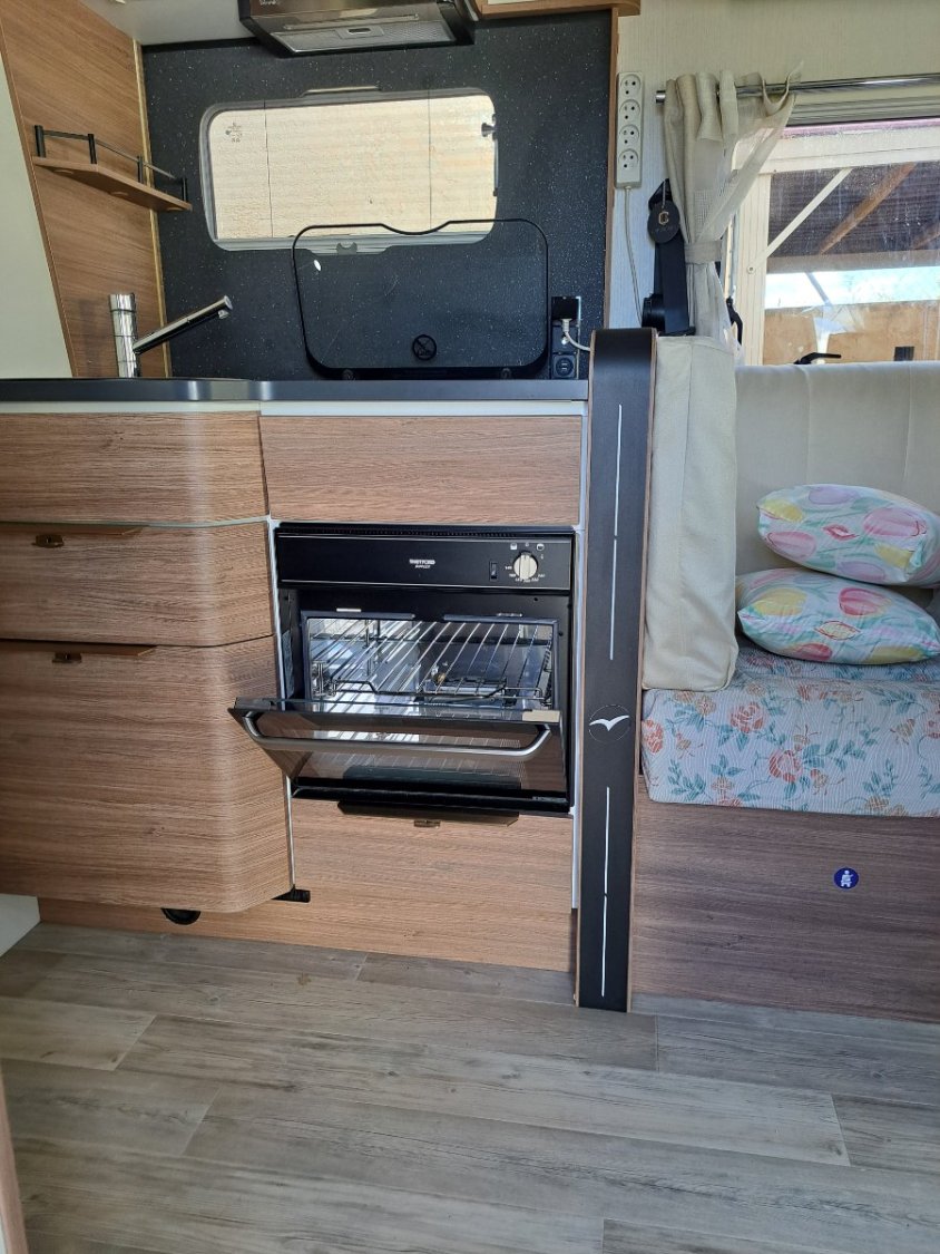 Pneus 4 saisons 1 ans verins élect. CCAR autolift 4, roue de secours avec jante, pose 1 bouteille de gaz Gaslow GPL. tente sommer extérieur gonflable, Housse camping car prof Wintertime 770, rideau Soplair, porte velo 2.