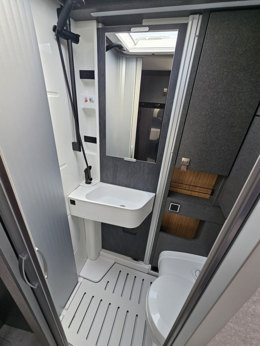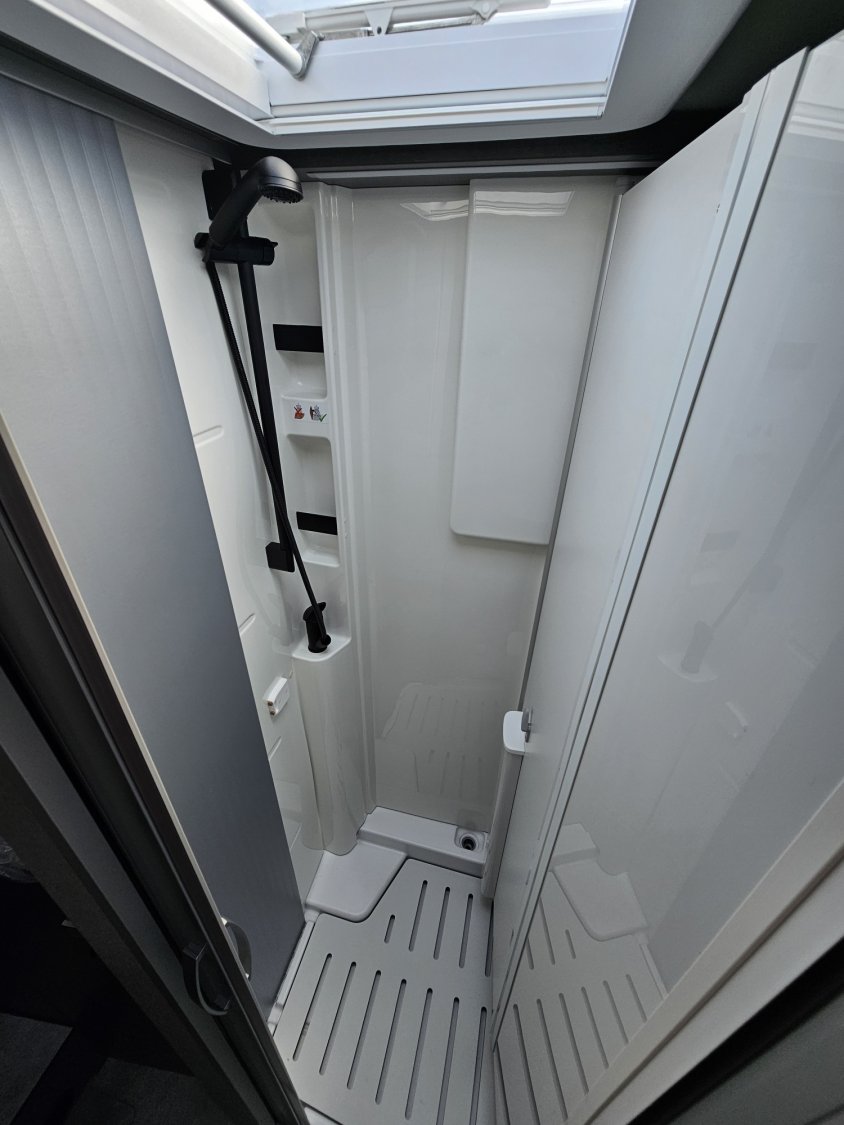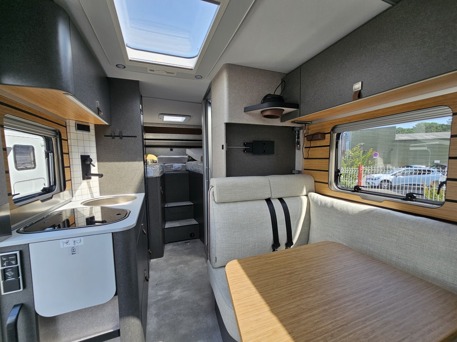 Couleur cabine : gris Ténorite , Couleur cellule : argent Crystal, Transmission intégrale 4x4, Boîte de vitesses auto 9G, TRONIC, Antibrouillard avec feux de virage, Pare, brise chauffant, Système multimédia MBUX avec, navigation caméra de recul, Climatisation auto THERMOTRONIC, Régul de vitesse DISTRONIC PLUS, Galerie de toit avec échelle arrière, Barre LED 44" au, dessus de la cabine, Store extérieur avec éclairage LED , Protection sous moteur, Douche extérieure , Set d’outils (bêche pliante, hache, etc.), Transfo dînette en L en couchage, Draps, housses sur mesure lits arrière, Coussins avec housses (4 pièces), Deuxième cassette de toilettes, Chauffage à air pulsé au diesel 6 kW, kit altitude et résistance électr 1800 W, HYMER Smart Battery System 2.0 (4 x 80Ah LFP), Panneaux solaires 2 x 95 W avec régulateur MPPT, Convertisseur 12 V à 230 V, 1800 W