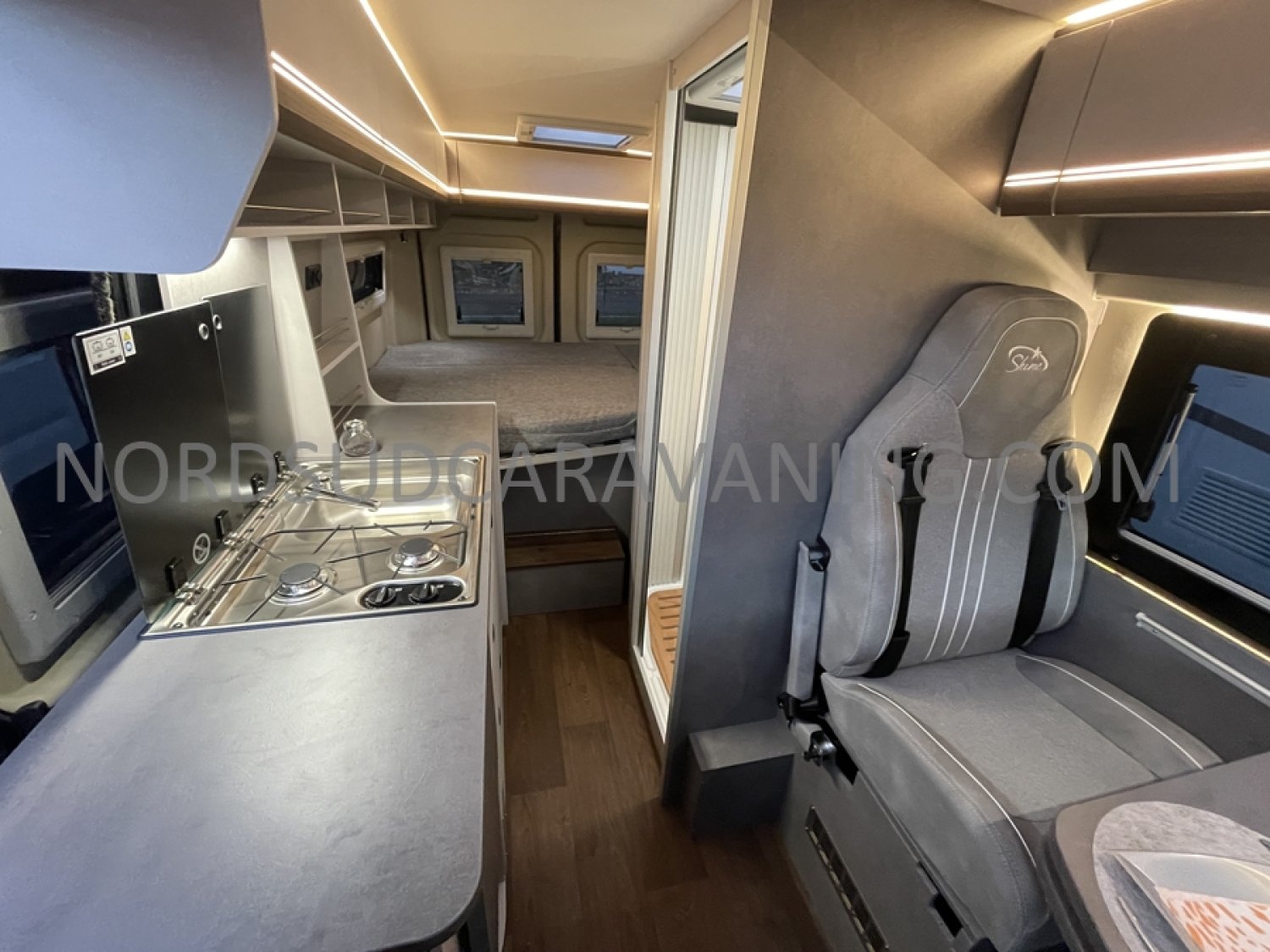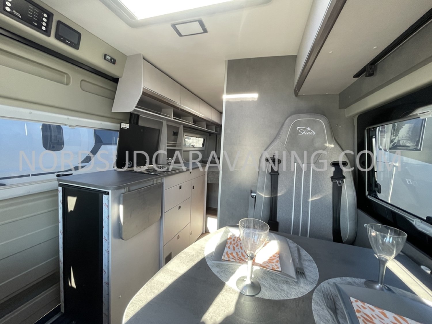 Sa dinette agréable et lumineuse pour une ambiance conviviale. Sa cuisine latérale pratique et fonctionnelle est équipée d’un réchaud 2 feux, évier et plan de travail rabattable. En face, une salle d’eau avec WC, lavabo, et une douche spacieuse. A l’arrière, c’est un lit transversal, pour des nuits confortables et agréables. Sans oublier ses nombreux rangements astucieux !