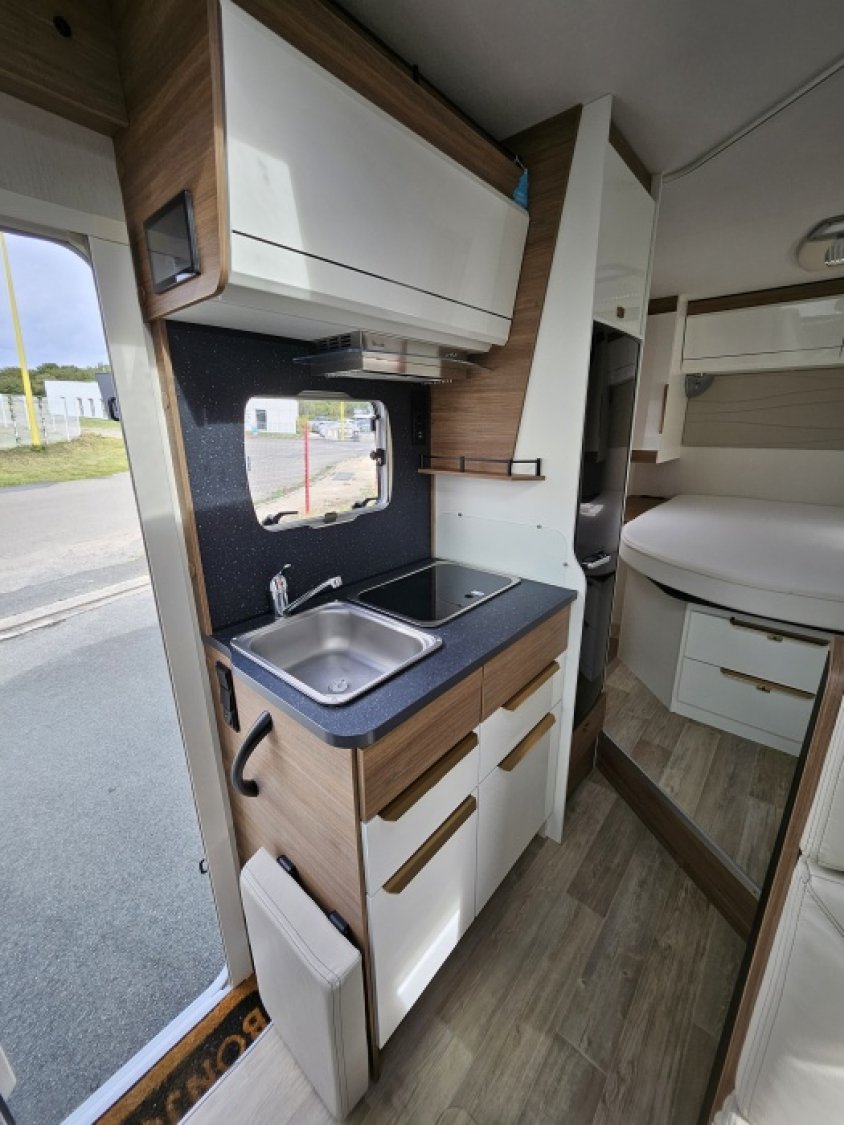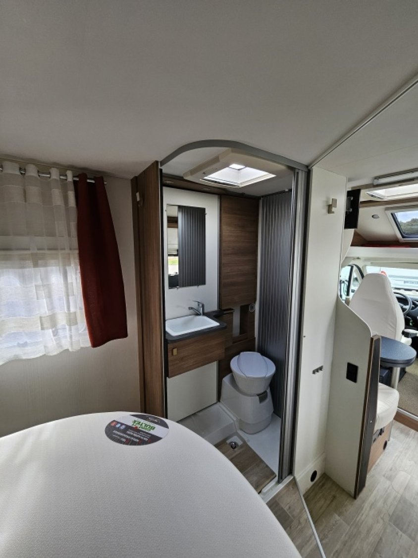 PORTEUR : Fiat Ducato Euro Cylindrée : 2,3L Puissance : 8CV / 140 CV PTAC : 3500 KG - charge utile : 755kg - Boite 6 vitesses mécanique - Largeur/Hauteur : 6.50 /2.30 /2.85 - Stores Remis - Regulateur - Limiteur - V.E - FC + Cellule - Feux de jour à leds - Antibrouillard - Radio bluthooth.