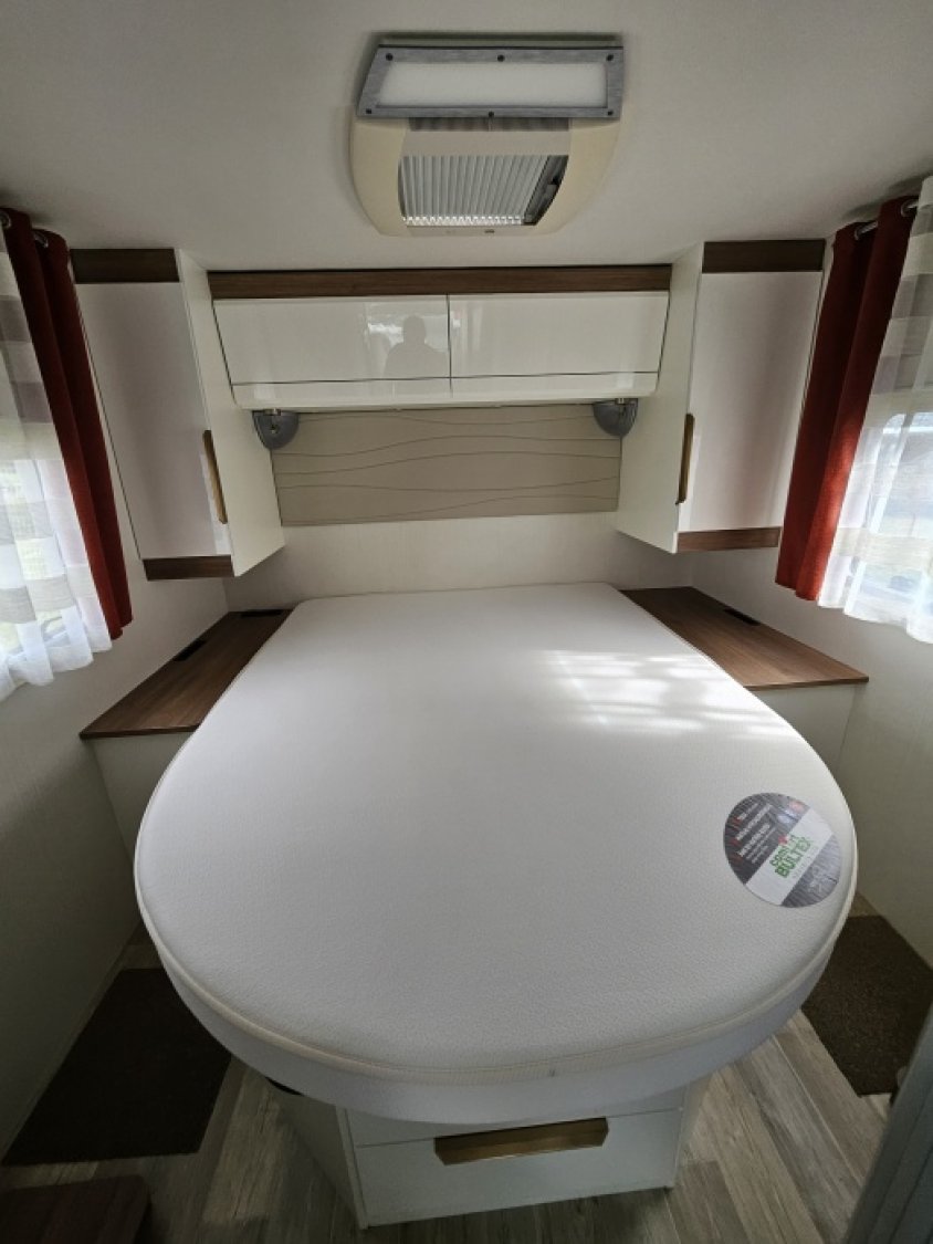 Lit Central 2 adultes - Lit sur dinette - gazerie 2 feux - Refrigerateur / conservateur - dinette 4 personnes - Siéges sur embases pivotantes