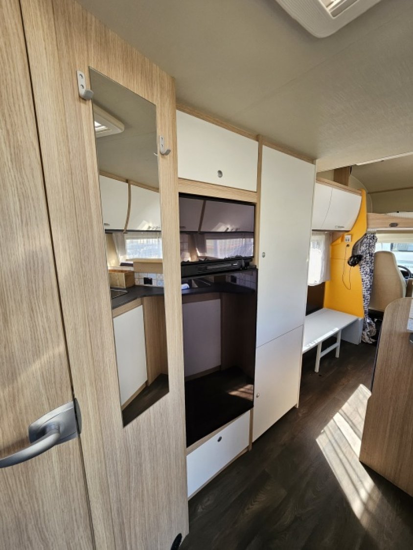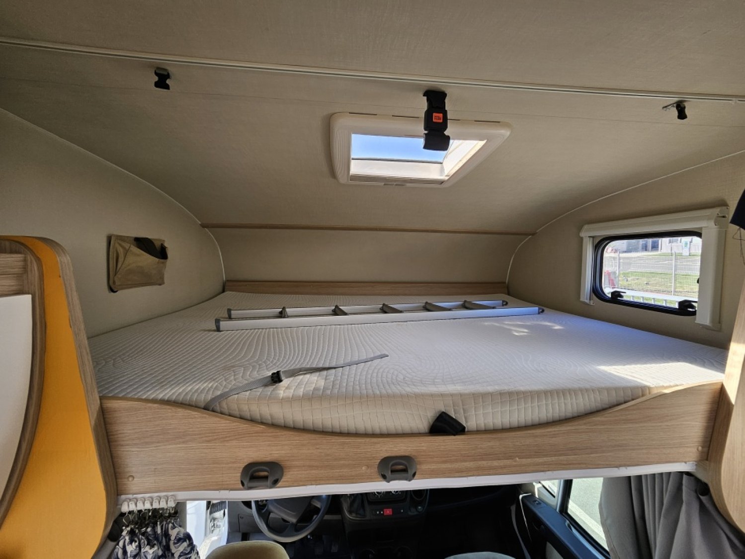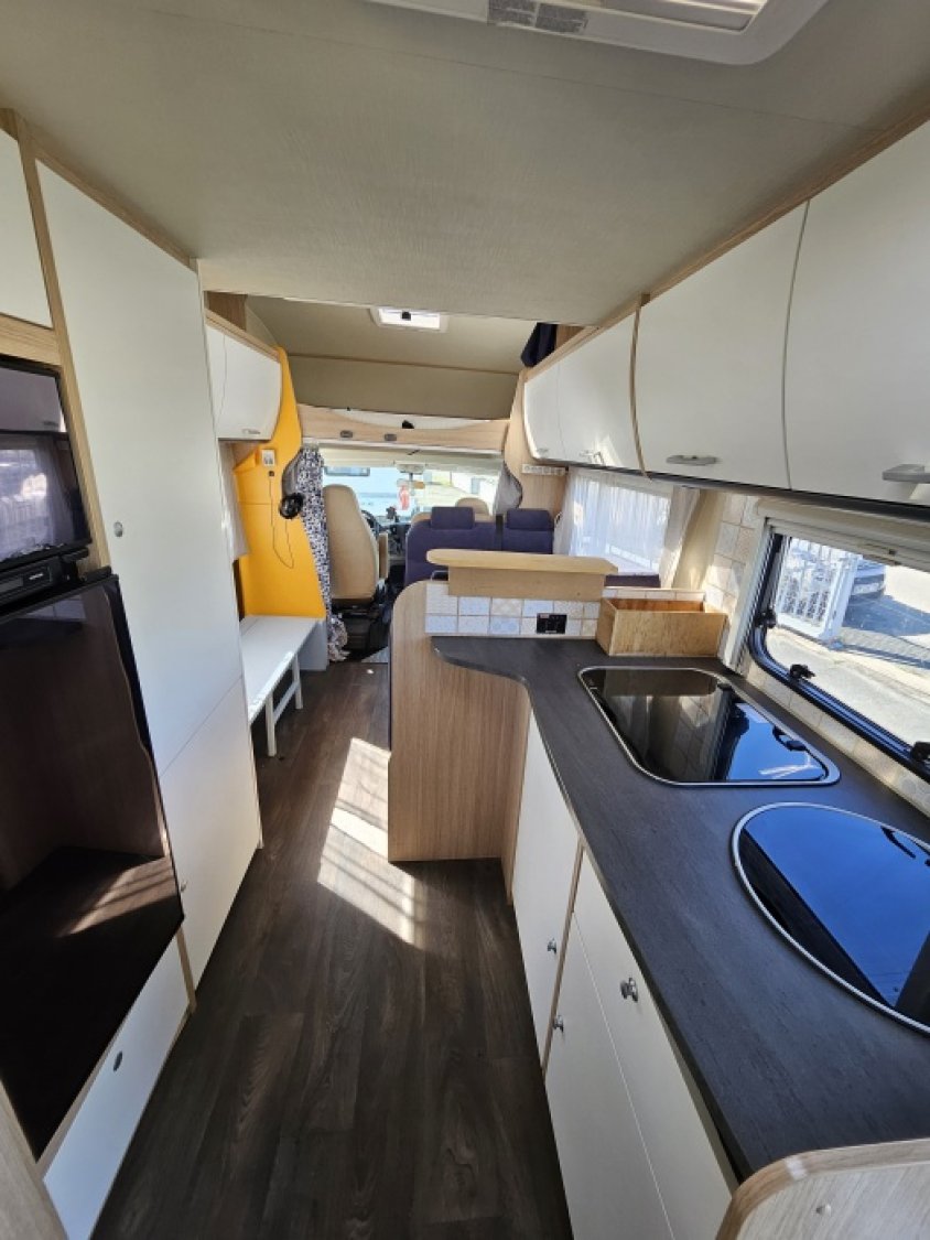 Capucine Sunlight, agencement familiale, 6 couchages, lits superposés modulable en soute, salle de bain modulable, cuisine équipée d’un grand frigo automatique, maxi salon avant avec dinette 4 personnes.