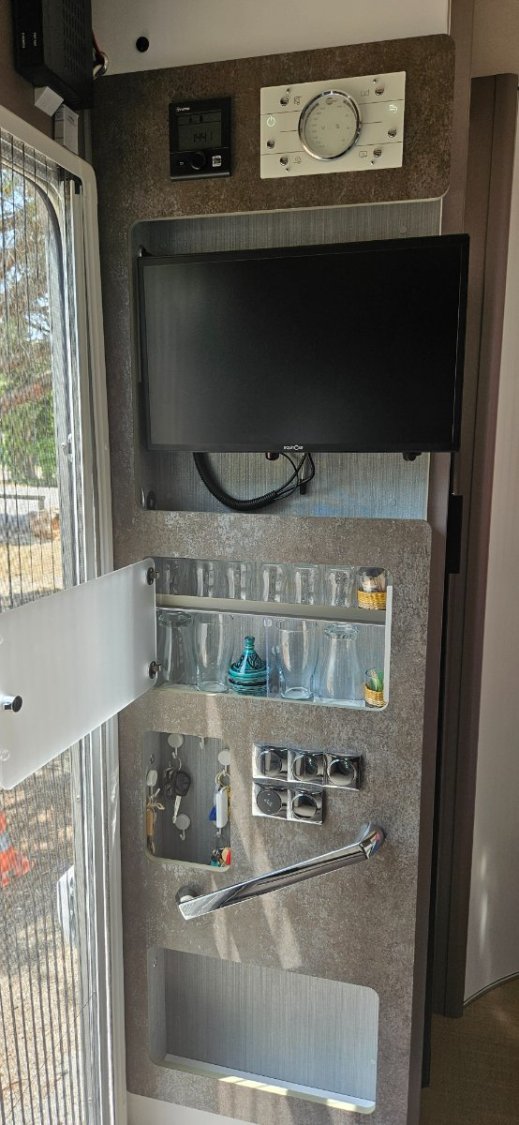 Date de 1ère mise en circulation 10/04/2025. Burstner Lyséo Privilège TD 684 G, Garantie jusqu'en 03/2027. Implantation lit pavillon 1.60m et lit dinette 1.40m. Pack premium 7, Couleur gris lauzarote, store 3m, panneau solaire 100w, Parabole Auto- TV DVD, Porte vélo (2 vélos électrique) Douchette extérieure(eau chaude et froide), Four. 3 feux cuissons.