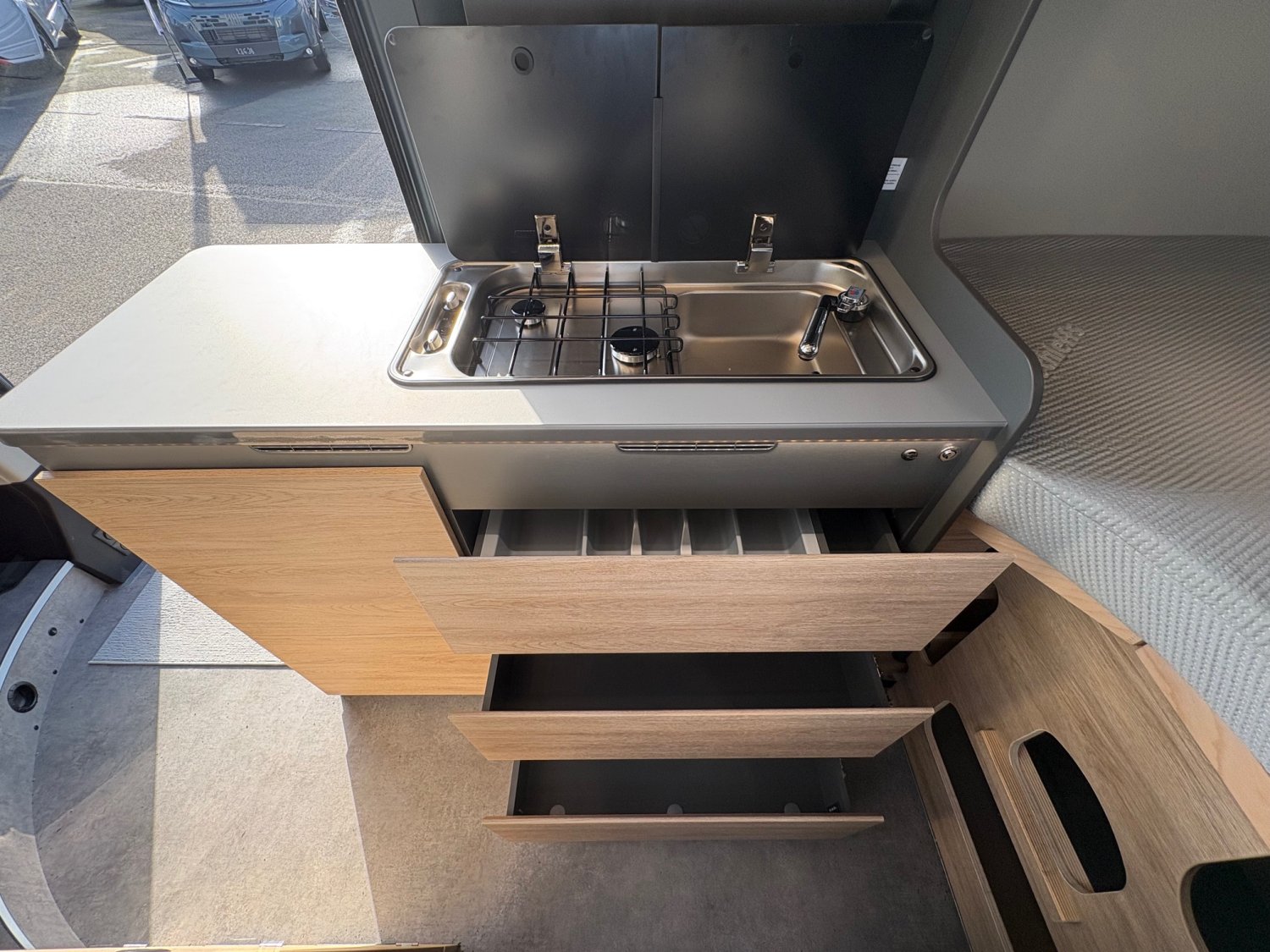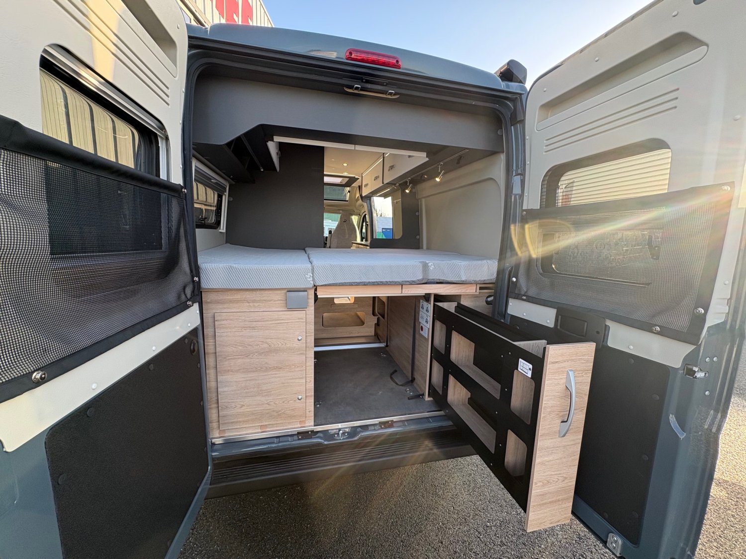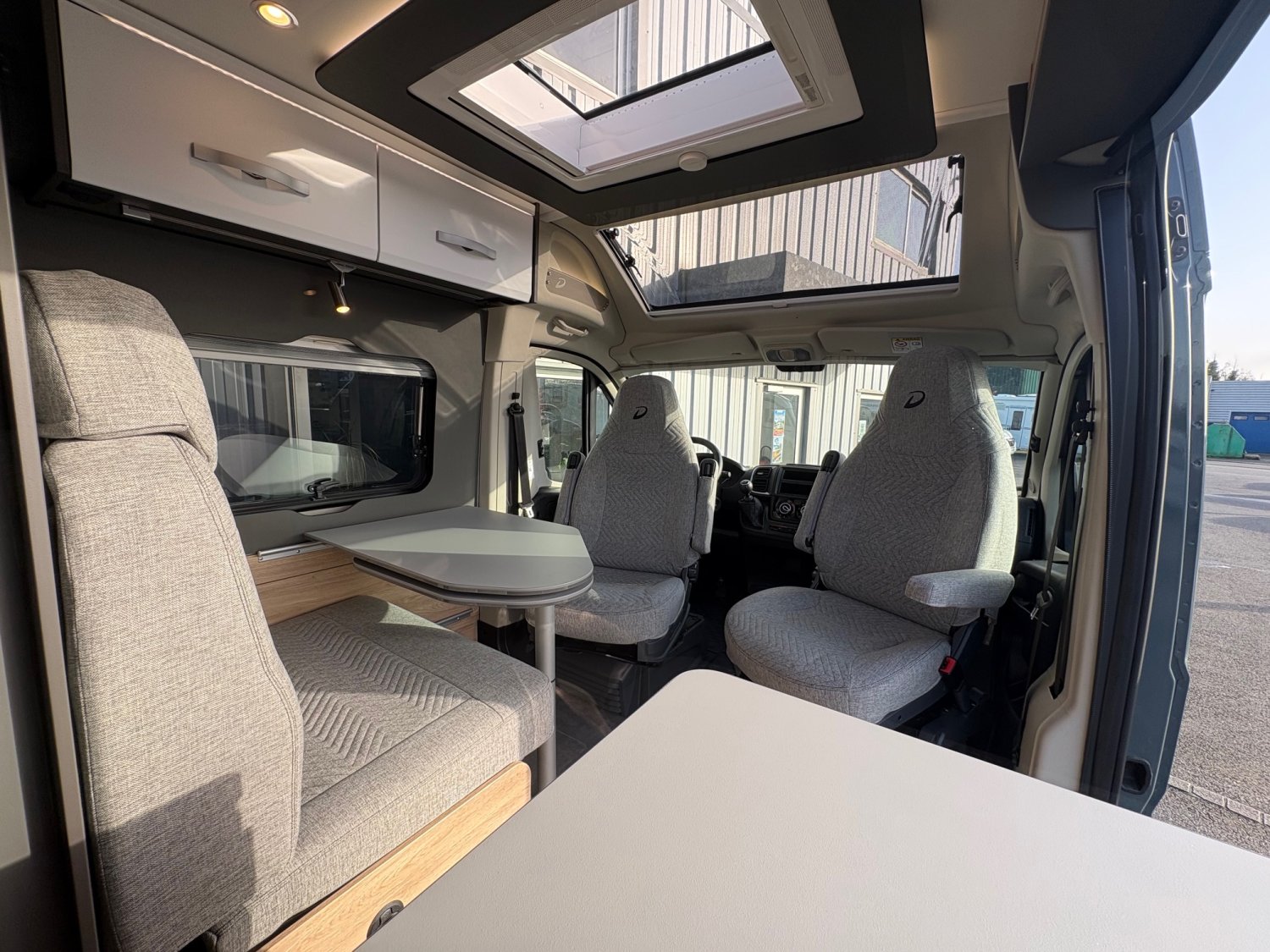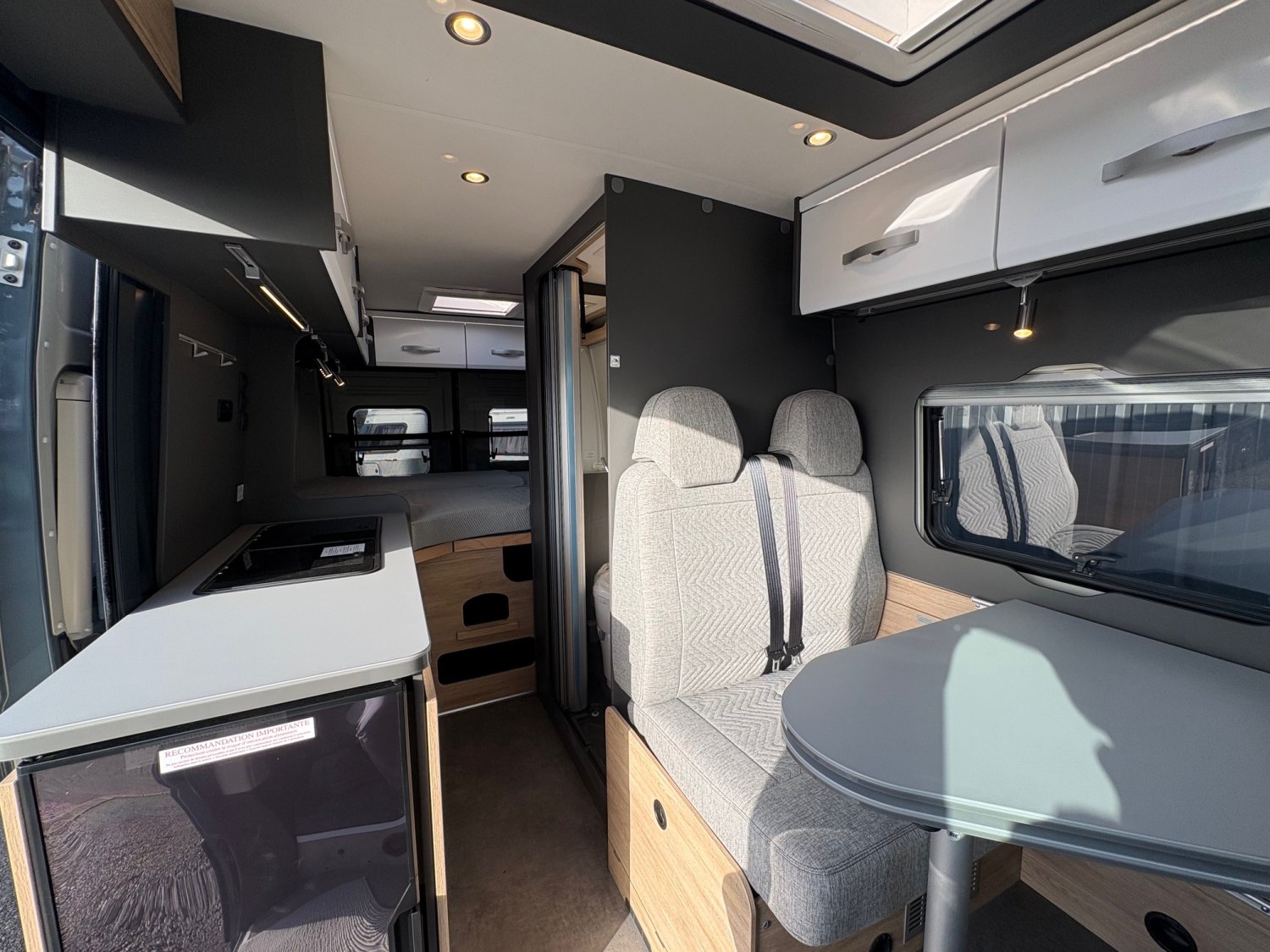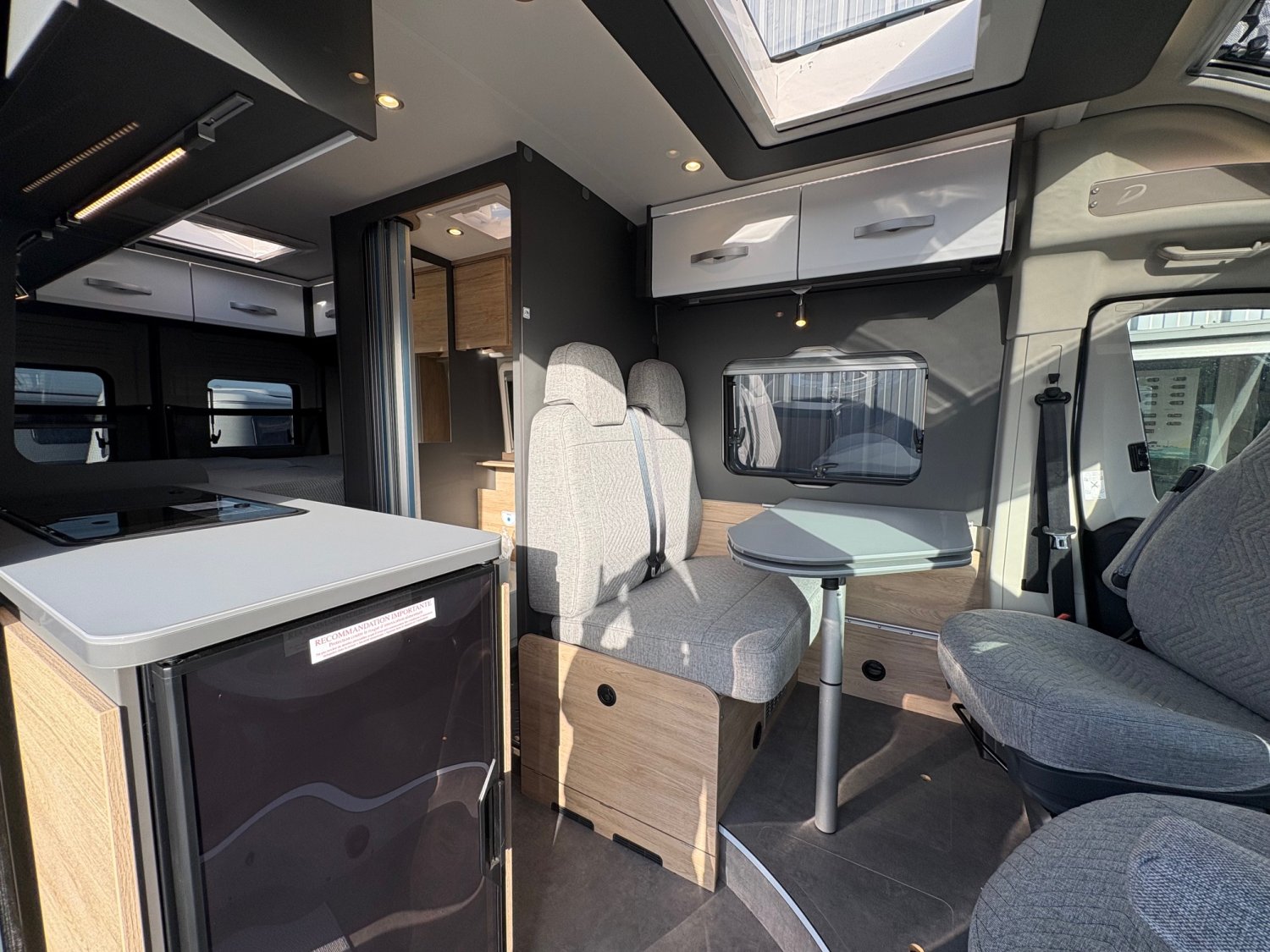 2 batteries cellule AGM 95 AhPeinture métalJantes Alu 16″Multimédia 7″ + caméraStore extérieurDouche varioTV connectée 22″Panneau solaire 140WDétecteur d’angles mortsRétroviseurs rabattables électriquementÉclairage d’auventBaies à cadre