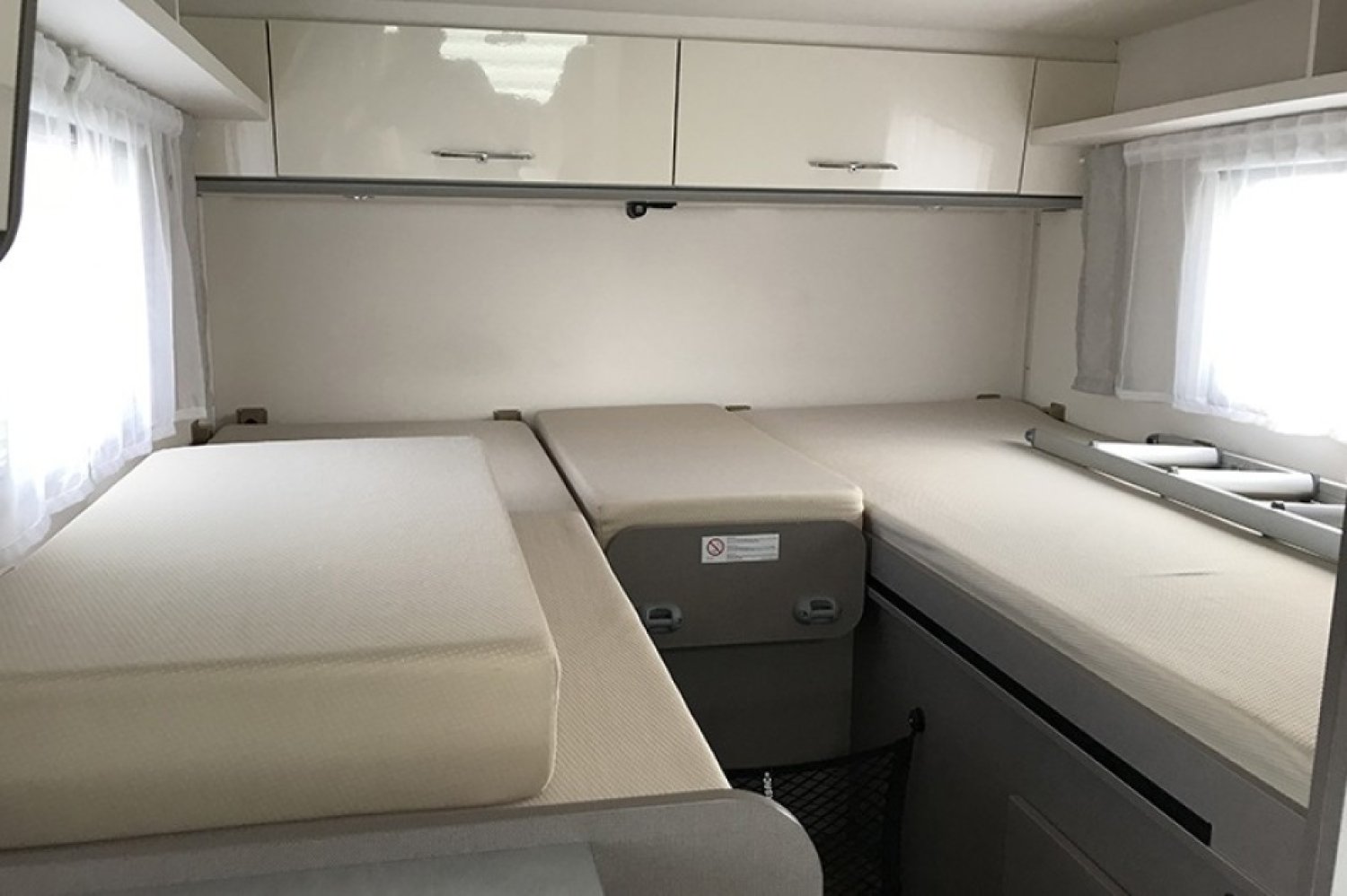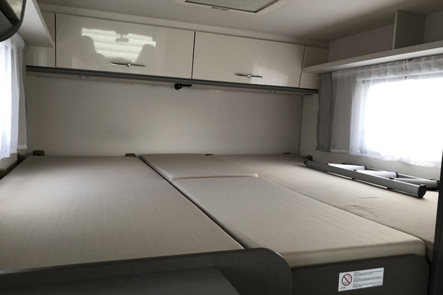 L x l x h : 6.65 x 2,14 x 2,71 m - PTAC/CU (kg) : 3700/600 - Places C.G./nuit/repas : 4/3/4 – Dimension lit jumeaux : 2 x 1970 x 680 transformable en 1920 x 1910