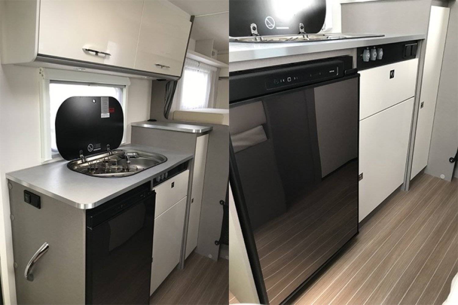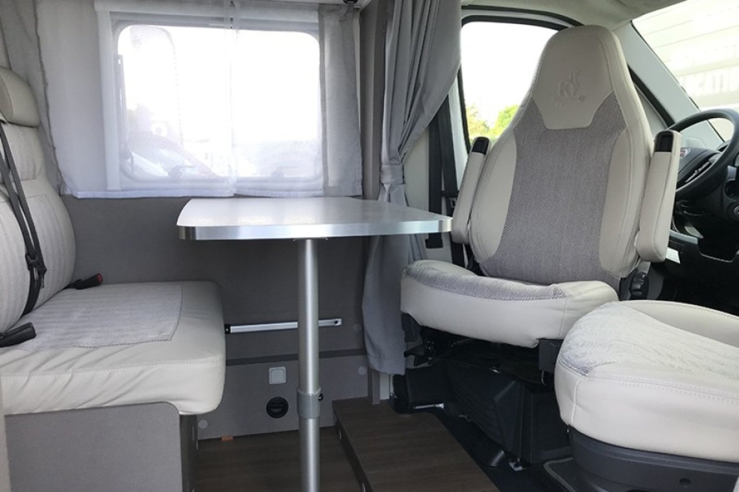 Chauffage / chauffe-eau Truma - - sièges confort pivotants réglables en hauteur - poignées de meuble finition chrome – salon 4 places - Grande soute transversal – salle d’eau modulable – réfrigérateur Thetford 89L