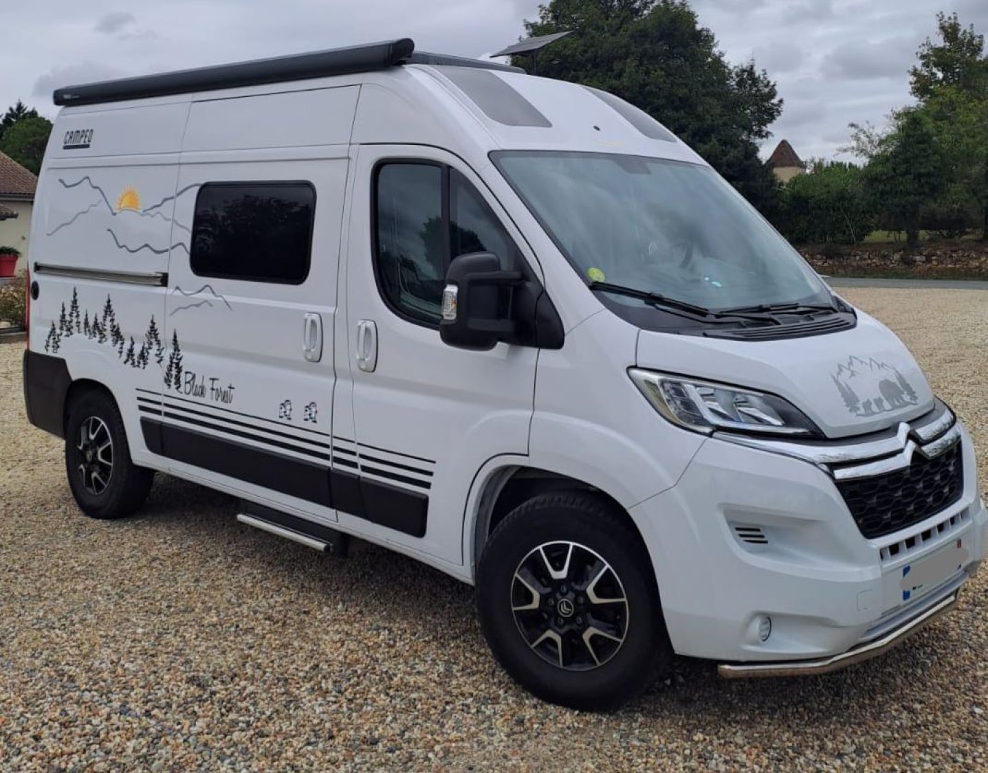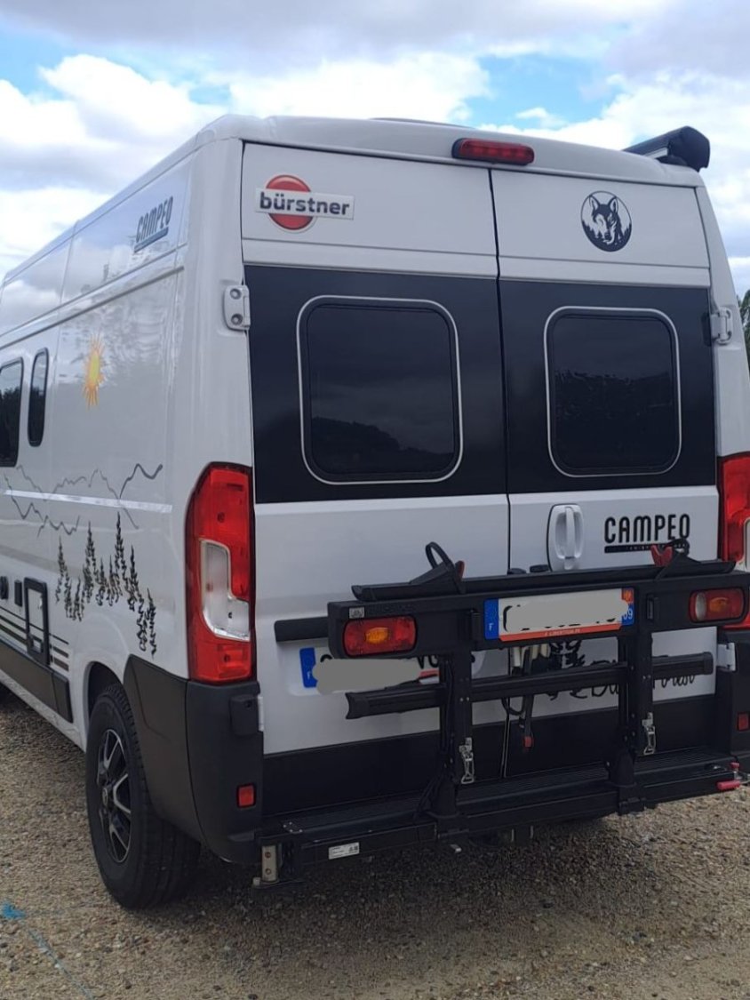 Campéo 540 Black Forest. 1ère main. équipé porte vélo-attelage Busbiker XM290, panneau solaire, store Thule.
