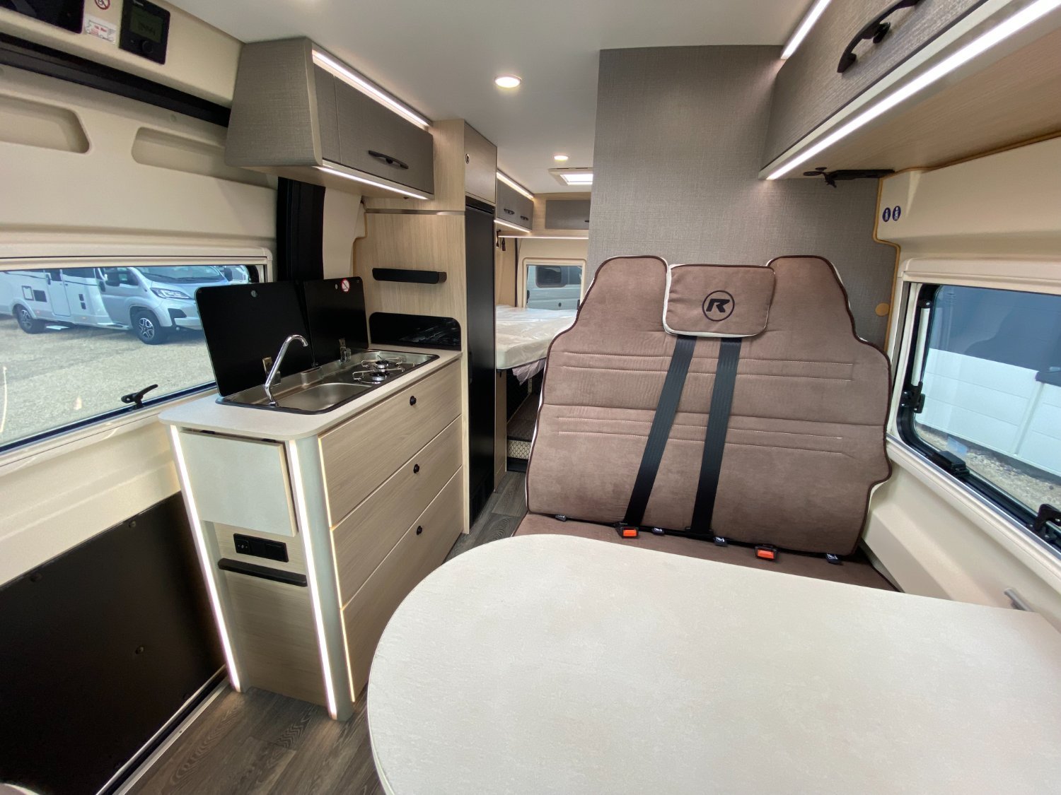 Grâce à son lit jumeau transformable en King Size, sa belle douche modulable, son maxi frigo à compression et son spacieux salon dans un seul et même espace compact, le R 640 réunit les avantages d’un camping-car dans 6,36m pour vous transporter en France et dans le monde été comme hiver !