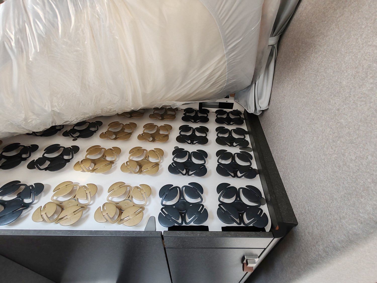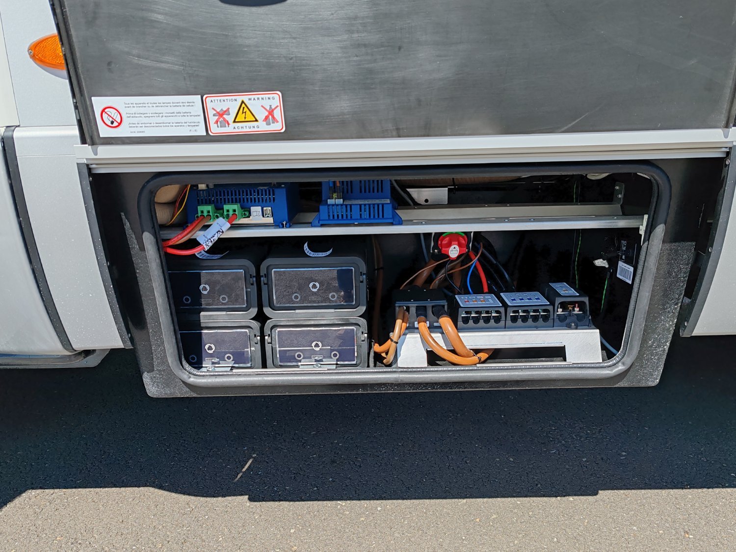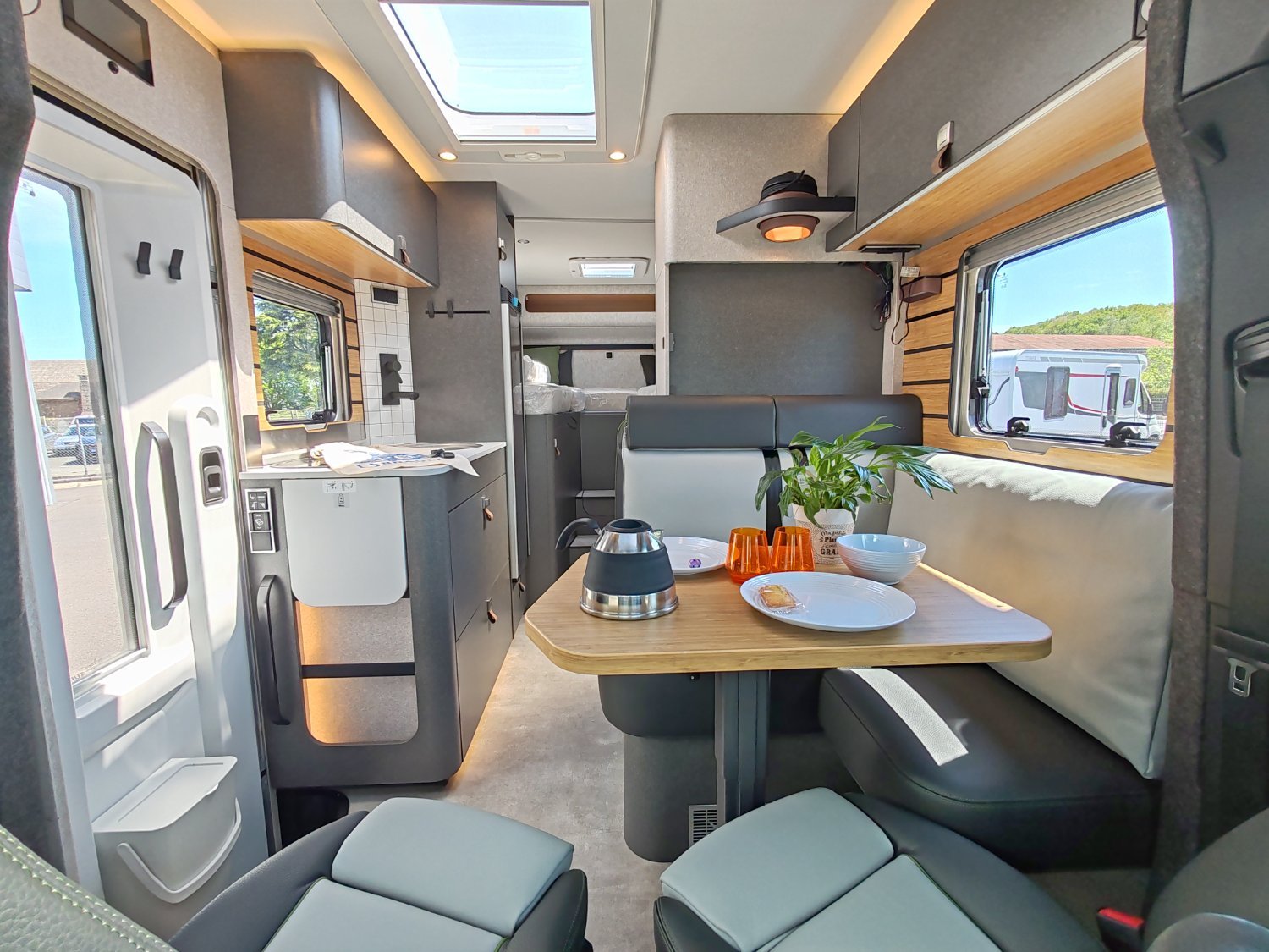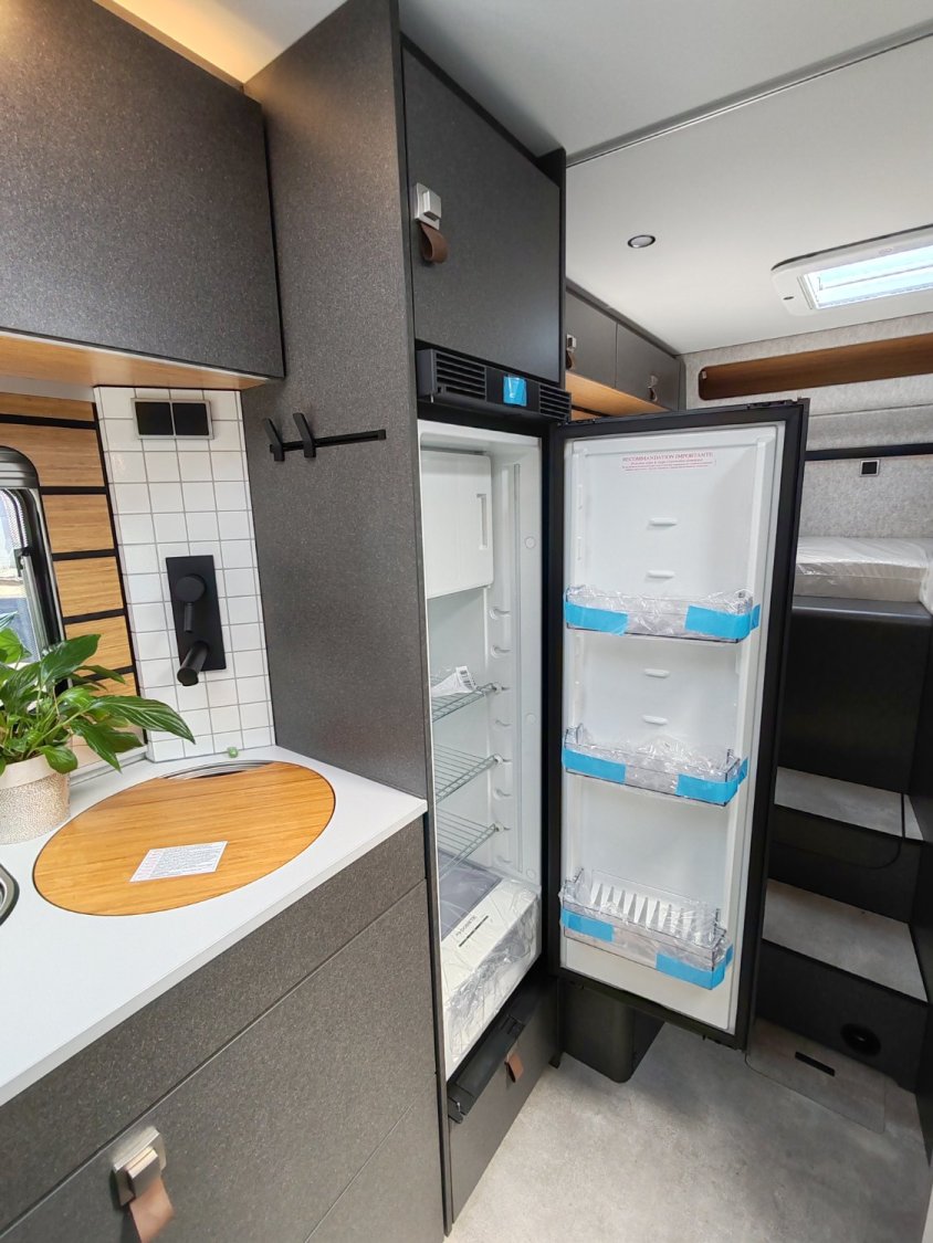 Mercedes-Benz Sprinter 4,1 t - 419 CDI - 140 KW/190 ch - Euro VI-E Couleur extérieure cabine : gris Ténorite (métallisé) Couleur extérieure cellule : argent Crystal métallisé (y compris casquette) Transmission intégrale 4x4 permanente + réservoir carburant 93 l Boîte de vitesses automatique 9G-TRONIC incluant la fonction Hold (x19 CDI) Bandes décoratives chromées sur la calandre Feux LED haute performance Feux antibrouillard avec feux de virage Spoiler, éléments face avant et cadre de la calandre peints couleur carrosserie Pare-brise chauffant Rangement pour smartphones avec fonction de recharge sans fil et indicateur du niveau de charge Pack chargement pour le tableau de bord avec 2 x prises USB-C 5 V / 1 x prise 12 V Volant cuir (uniquement avec la boîte de vitesses automatique) Système multimédia MBUX 10,25" avec caméra de recul, commande vocale et écran tactile, y compris navigation & intégration pour smartphone Climatisation automatique THERMOTRONIC Régulateur de vitesse actif DISTRONIC PLUS avec commandes au volant Détecteur de franchissement de ligne Système de gestion automatique des phares Assistant reconnaissance des panneaux de signalisation Galerie de toit avec échelle arrière sans plateforme en aluminium Barre LED 44" au-dessus de la cabine Store extérieur (anthracite) avec éclairage LED dimmable, 400 x 250 cm Protection sous moteur Sérigraphie CrossOver Porte cellule Confort fermeture 2 points avec baie, store occultant et poubelle intégrés Tôle et moquette dans le garage Élargisseur d'ailes avant Douche extérieure dans le garage Set d’outils (bêche pliante, hache, etc.) dans le compartiment de rangement arrière Dînette en L confort avec coussins lounge, table coulissante longitudinalement / transversalement et 2 ceintures 3 points intégrées Transformation dînette en L en couchage (table au pied télescopique + coussin supplémentaire + utilisation du siège conducteur) Système de couchage confort avec sommier à assiettes et matelas multizones pour lits arrière Draps-housses sur mesure pour lits arrière adaptés aux contours du matelas Coussin supplémentaire pour lits jumeaux avec accès confort Coussins avec housses (4 pièces) Éclairage d'ambiance Deuxième cassette de toilettes avec support dans l'espace de rangement extérieur Chauffage à air pulsé au diesel 6 kW avec chauffe-eau 10 l, kit altitude et résistance électrique 1800 W HYMER Smart Battery System 2.0 (4x80 Ah LFP) avec chargeur supplémentaire Panneaux solaires 2 x 95 W avec régulateur MPPT et écran d'affichage Convertisseur 12 V à 230 V, 1800 W avec priorité réseau Prises supplémentaires : 5 x 230 V / 2 x 12 V / 2 x USB Filtre pour le circuit d'eau propre
