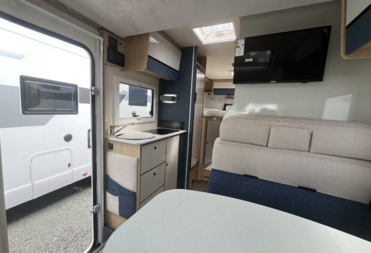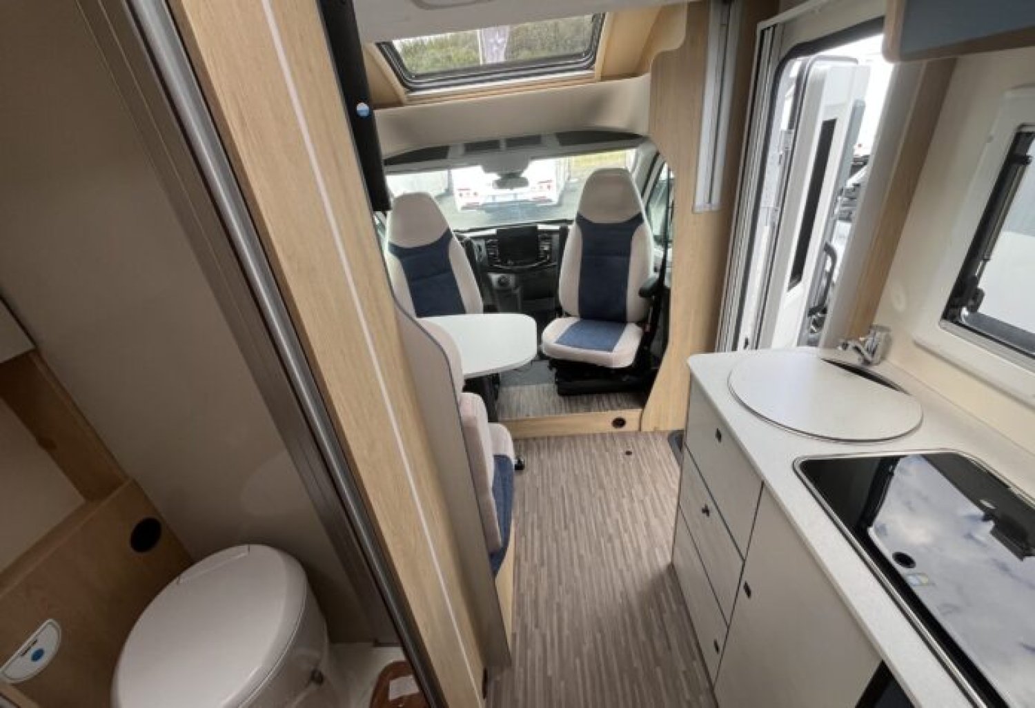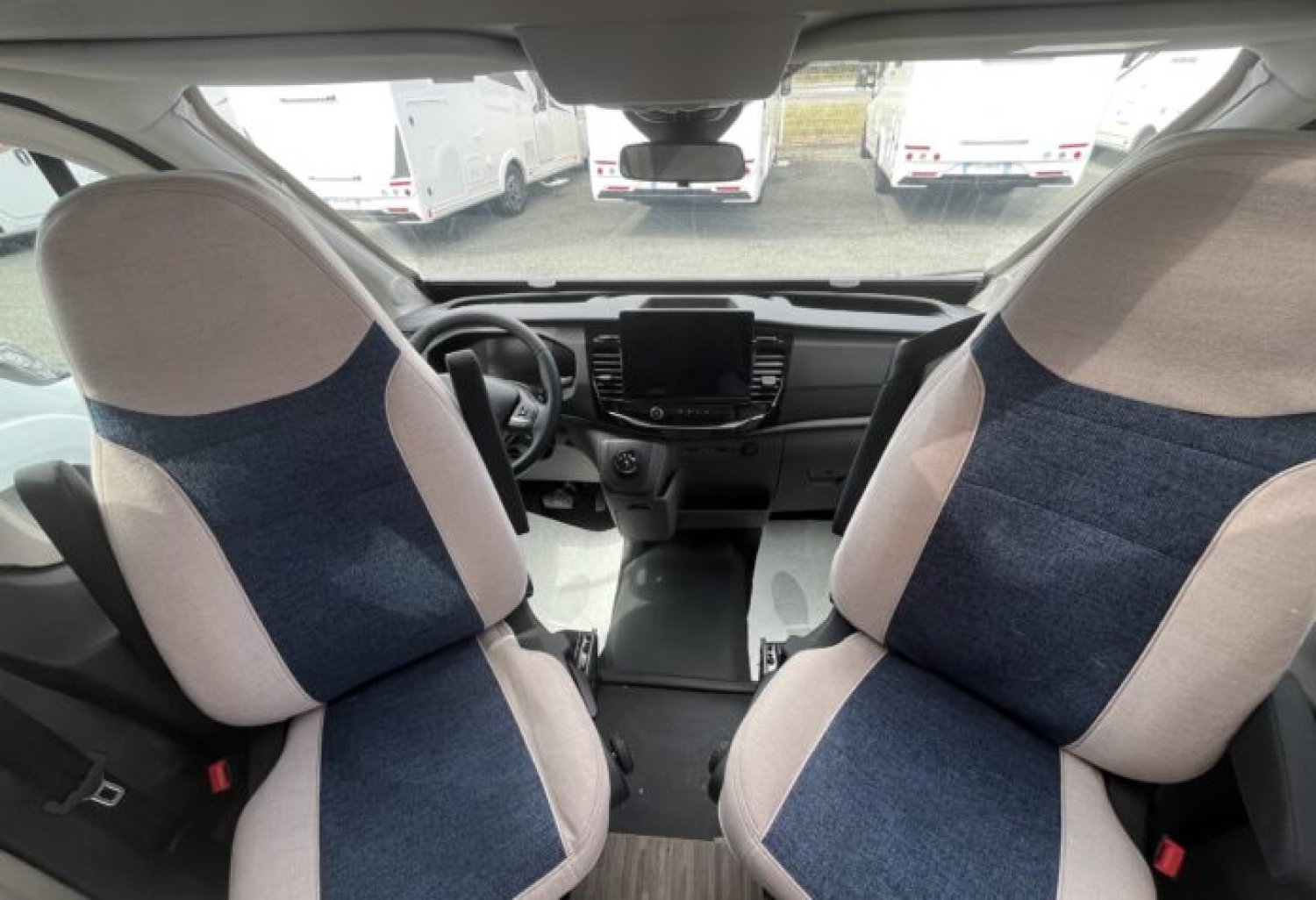 Châssis Ford transit, régulateur de vitesse avec « intelligent speed assist », allumage des phares et essuie-glace automatique, frein à main élecrique, caméra de recul, système de freinage avec atténuation de collision N2, alerte et assistance de maintien de voie, reconnaissance des panneaux de signalisation, capteurs de stationnement avant, capteur de pression des pneus, écran tactile 12 pouces avec système SYNC4, tableau de bord semi-numérique, climatisation automatique
