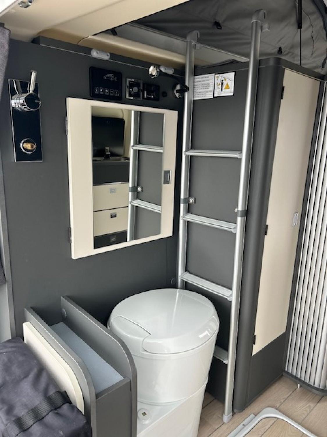 Double portes latérales (D et G) - Caméra de recul - Attelage fixe - Jantes alu 16'' - Le Pack Kelsey (batterie cellule AGM 92Ah, chauffe-eau, kit outdoor, 2 portes latérales coulissantes, prédisposition électrique panneau solaire et attelage, rideaux arrière latéraux opacifiants, sellerie bi-matière « Missouri », tapis cabine, variateur d`intensité lumineuse LED) - Système de navigation - Régulateur de vitesse - Système de surveillance angle mort - Vitres teintées AR - Sièges et rétroviseurs chauffants. Douches WC.