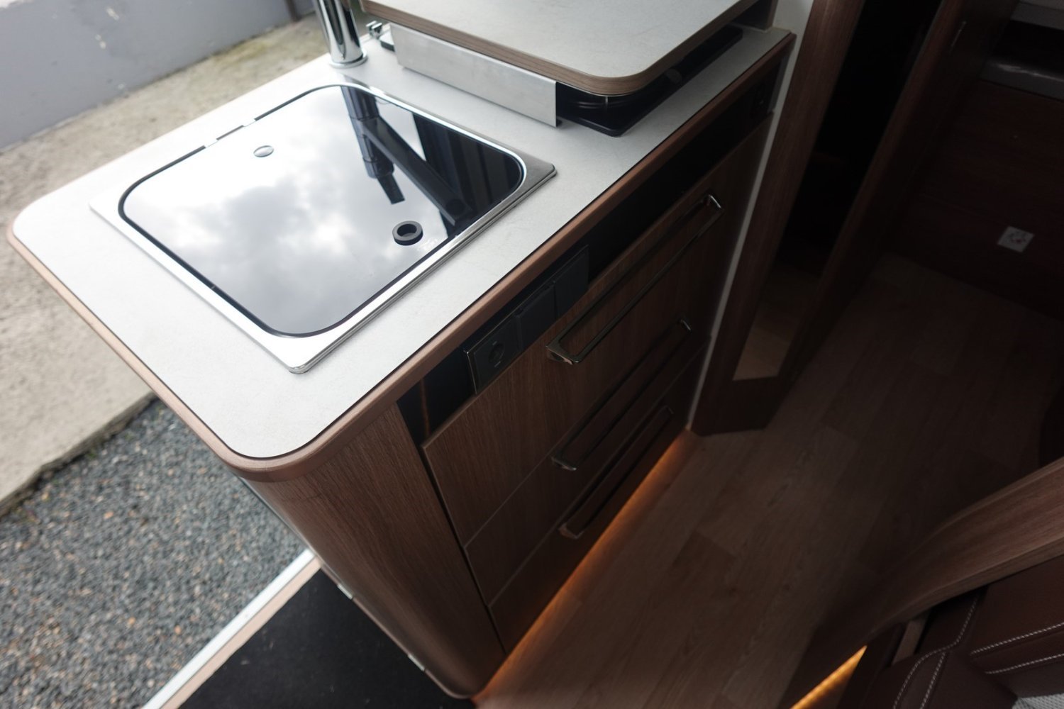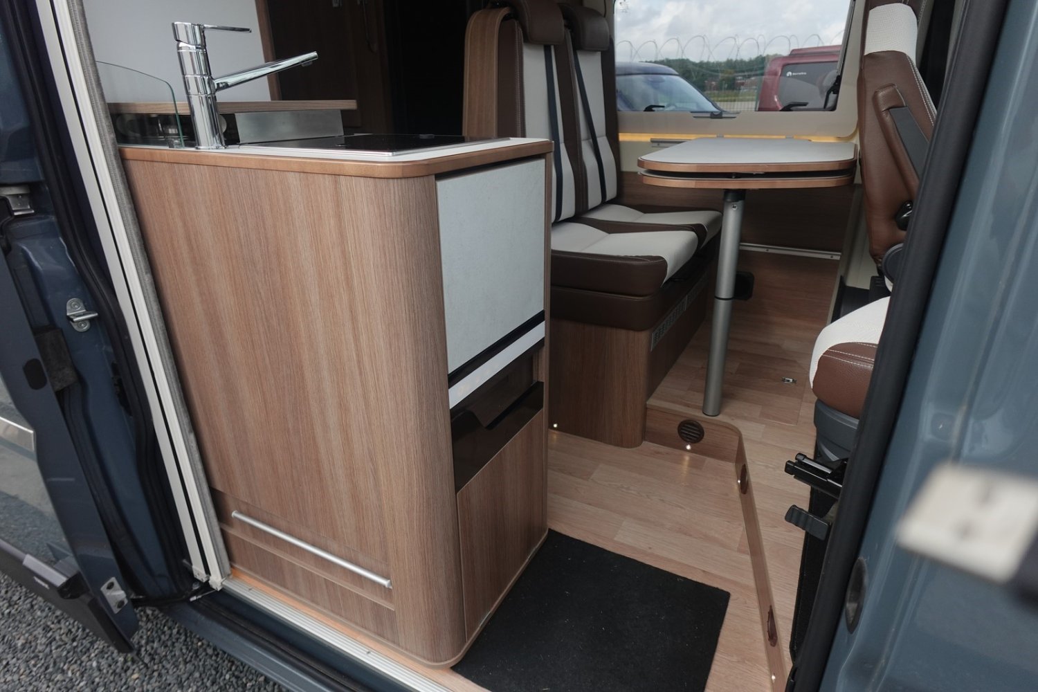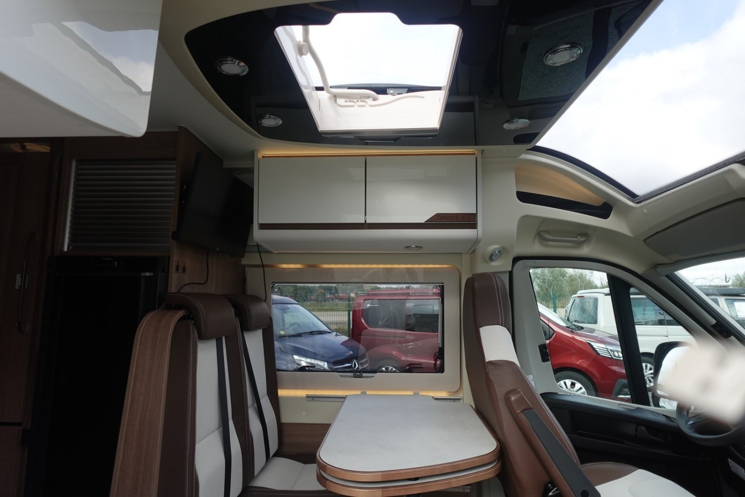 Magnifique fourgon aménagé comprenant un salon avant panoramique, un grand réfrigérateur, une douche indépendante de l’espace WC/lavabo et un lit arrière transversal. Le tout en série limitée sur-équipé.