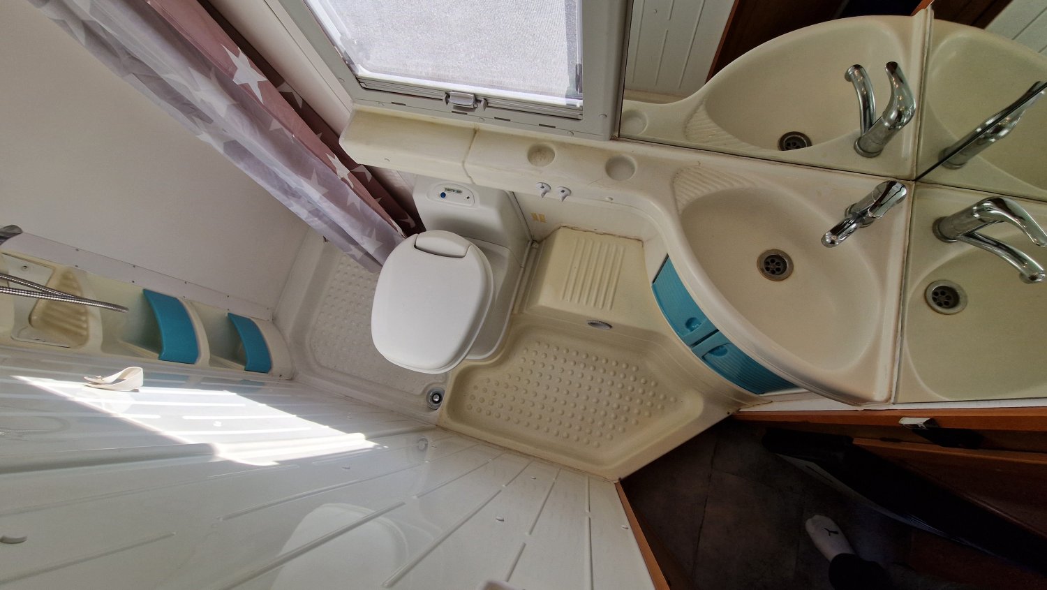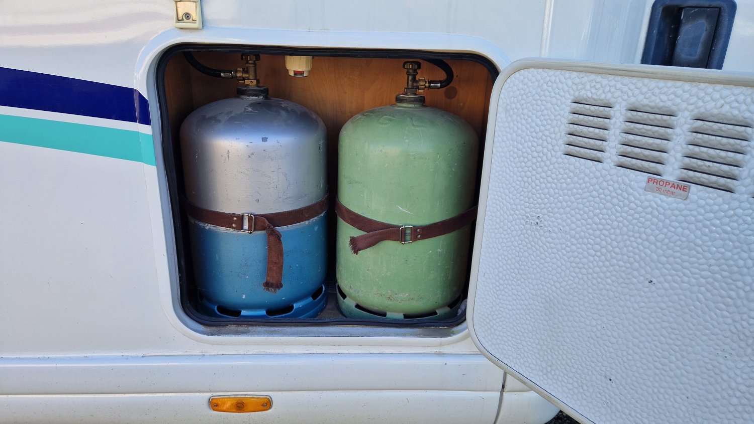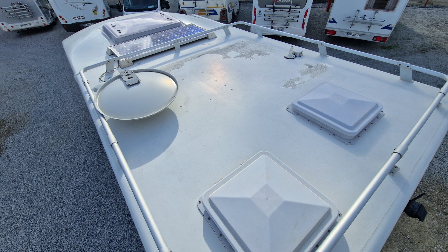 STORE EXTERIEUR 4M, CHAUFFAGE ROUTE, GAZINIERE 3 FEUX, FENETRE SDB, DOUCHE ET WC SEPARES, HOTTE ASPIRANTE, REFRIGERATEUR TRI MIX, CHAUFFAGE GAZ TRUMATIC, MARCHEPIED INTÉGRÉ