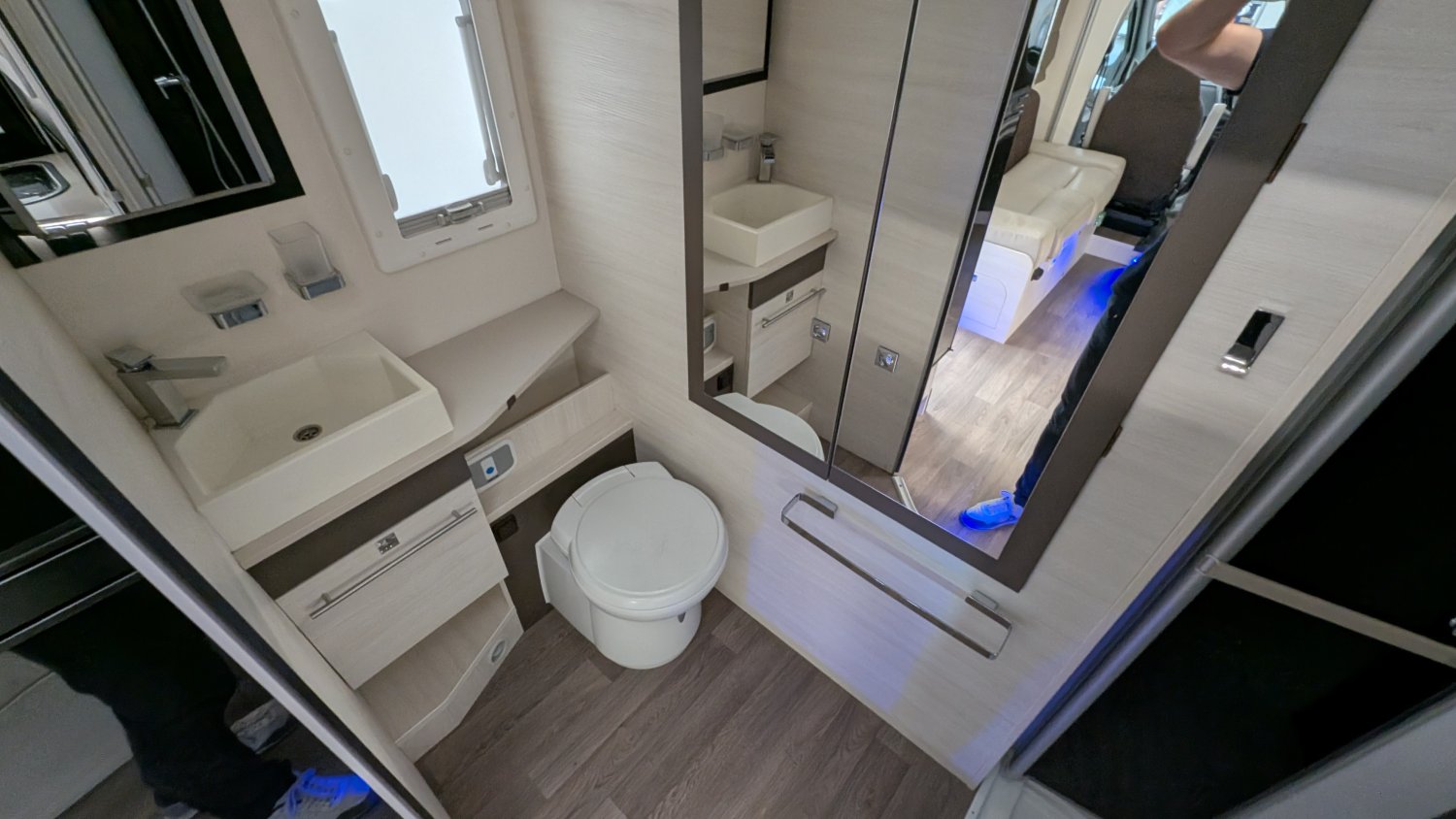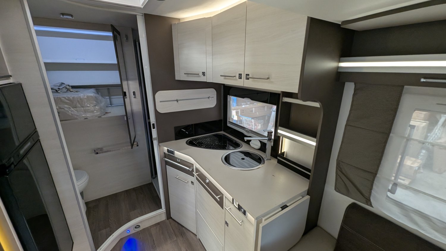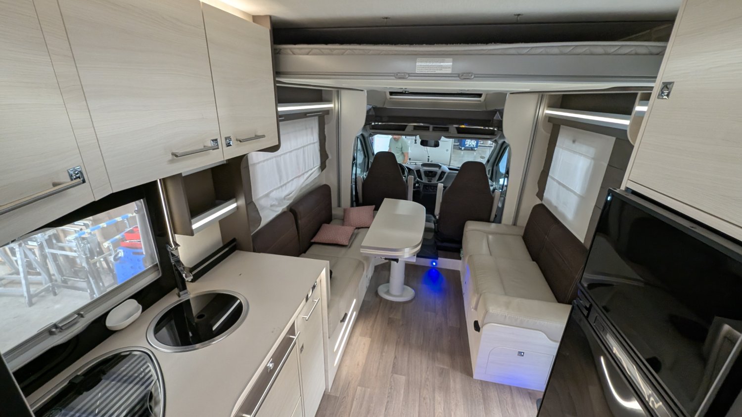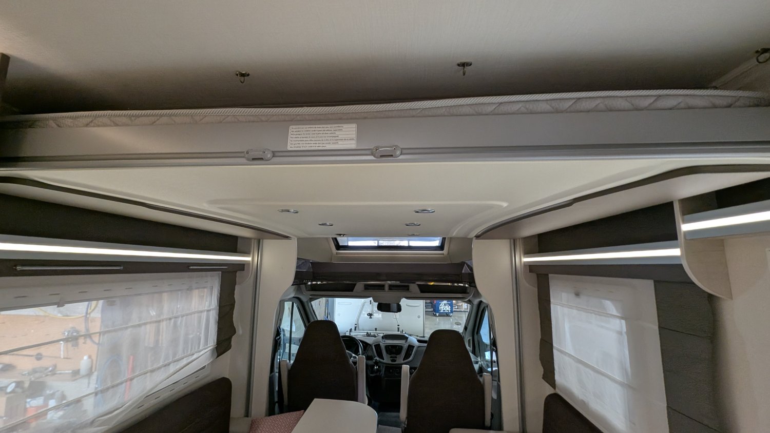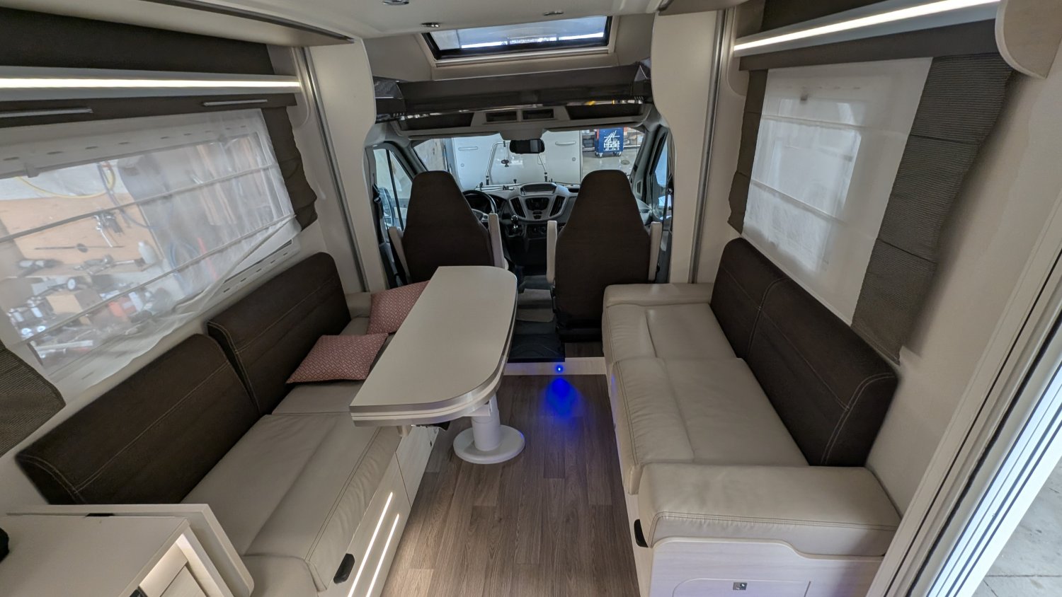 Antenne satellite automatique + TV, Stores occulatants en cabine, Caméra de recul, Lit de pavillon et table électriques, Grand refrigerateur, Phares antibrouillard, Chauffage utilsable en roulant, Autoradio Ford, Regulateur de vitesse, Climatisation manuelle de cellule, Panneau solaire, Chauffage sur carburant, Store extérieur