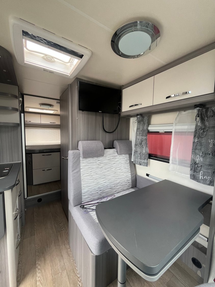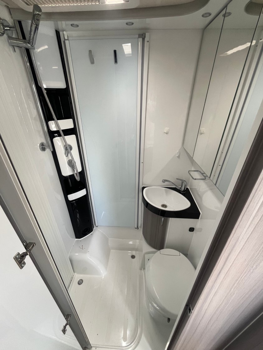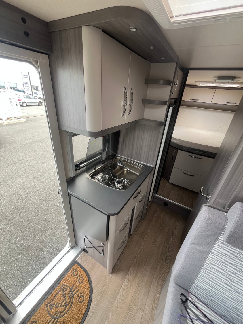 Son implantation met en valeur un lit central confortable, accessible de chaque côté, une grande salle de bain arrière, ainsi qu’un coin cuisine bien équipé, optimisé pour le quotidien des voyageurs.