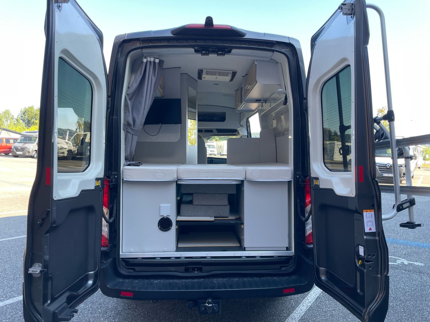 Le Font Vendôme Fortyvan 4x4 2020, monté sur châssis Ford Transit intégral, est un fourgon aménagé tout-terrain pensé pour l’aventure. Homologué pour 4 passagers, il allie confort, robustesse et capacités hors-piste, pour vous permettre d’explorer les itinéraires les plus exigeants en toute sérénité.