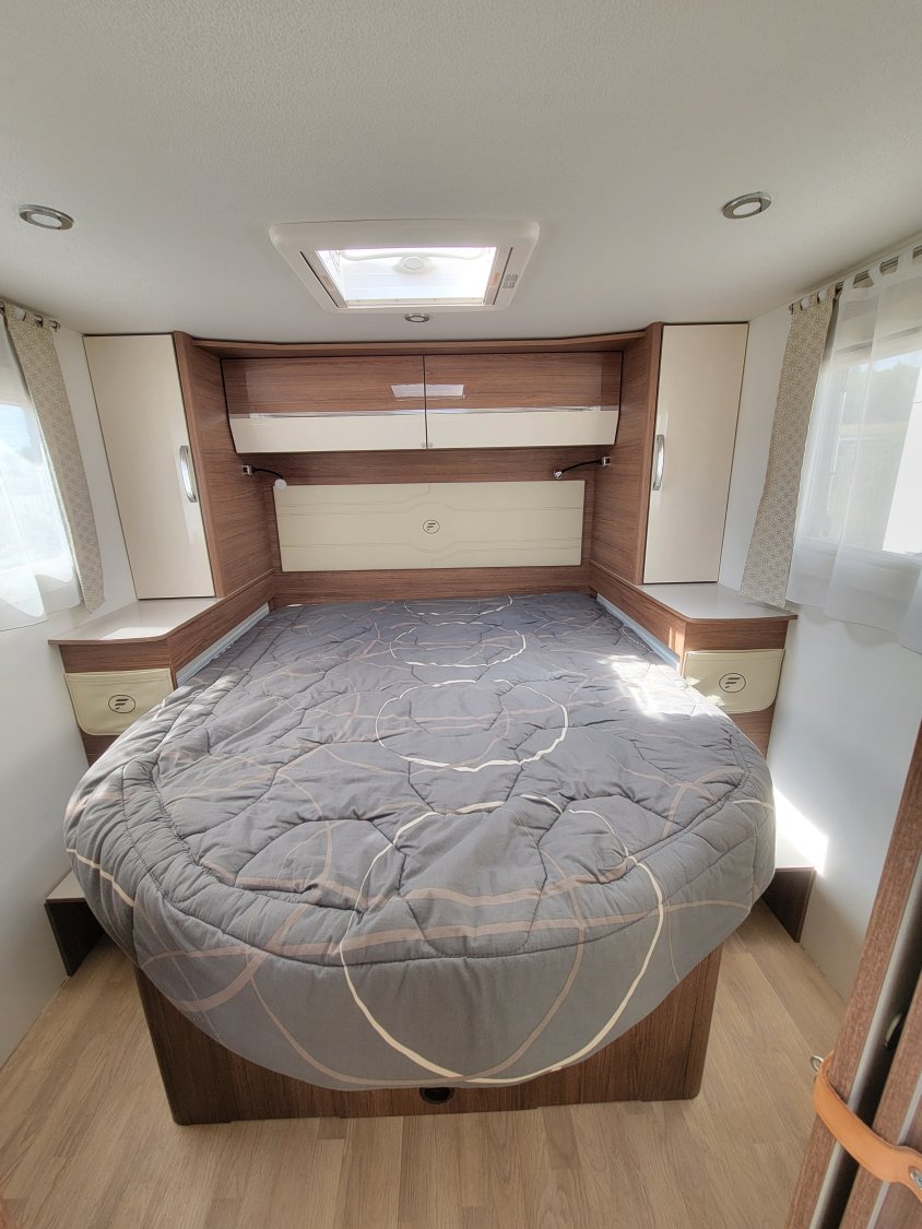 Le Fleurette Magister 74?LMF Édition Crystal est un profilé spacieux de 7,38?m, homologué pour 4 places carte grise et proposant 4 couchages (lit central à l’arrière + salon face-à-face convertible). Son aménagement lumineux comprend un vaste salon en face-à-face, une cuisine tout équipée, une salle d’eau indépendante avec douche et WC, ainsi qu’un grand garage accessible par deux portes. Conçu avec une structure polyester sans bois, une isolation renforcée et des finitions haut de gamme, l’Édition Crystal accentue l’élégance avec des éléments décoratifs raffinés et un mobilier premium.