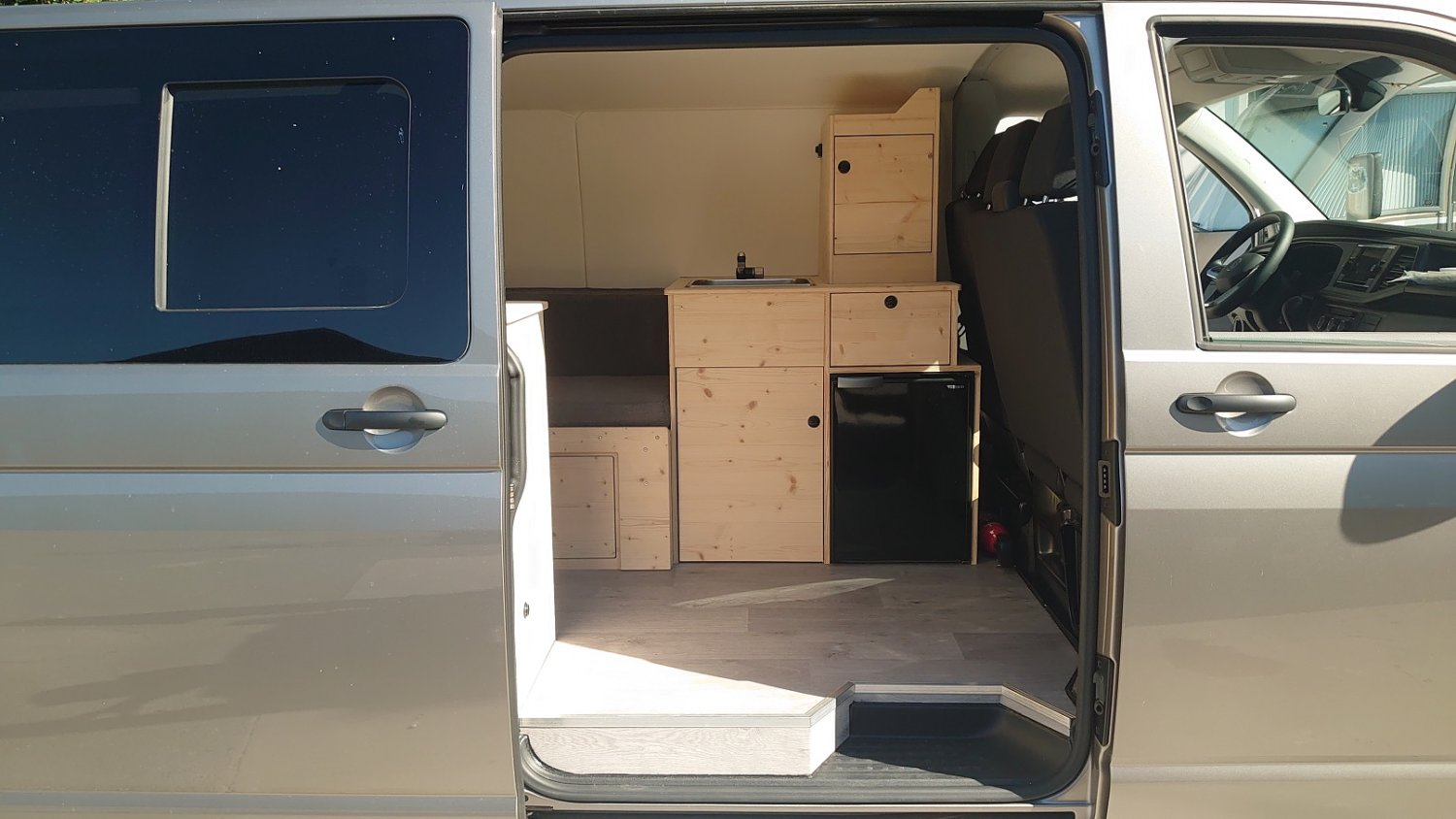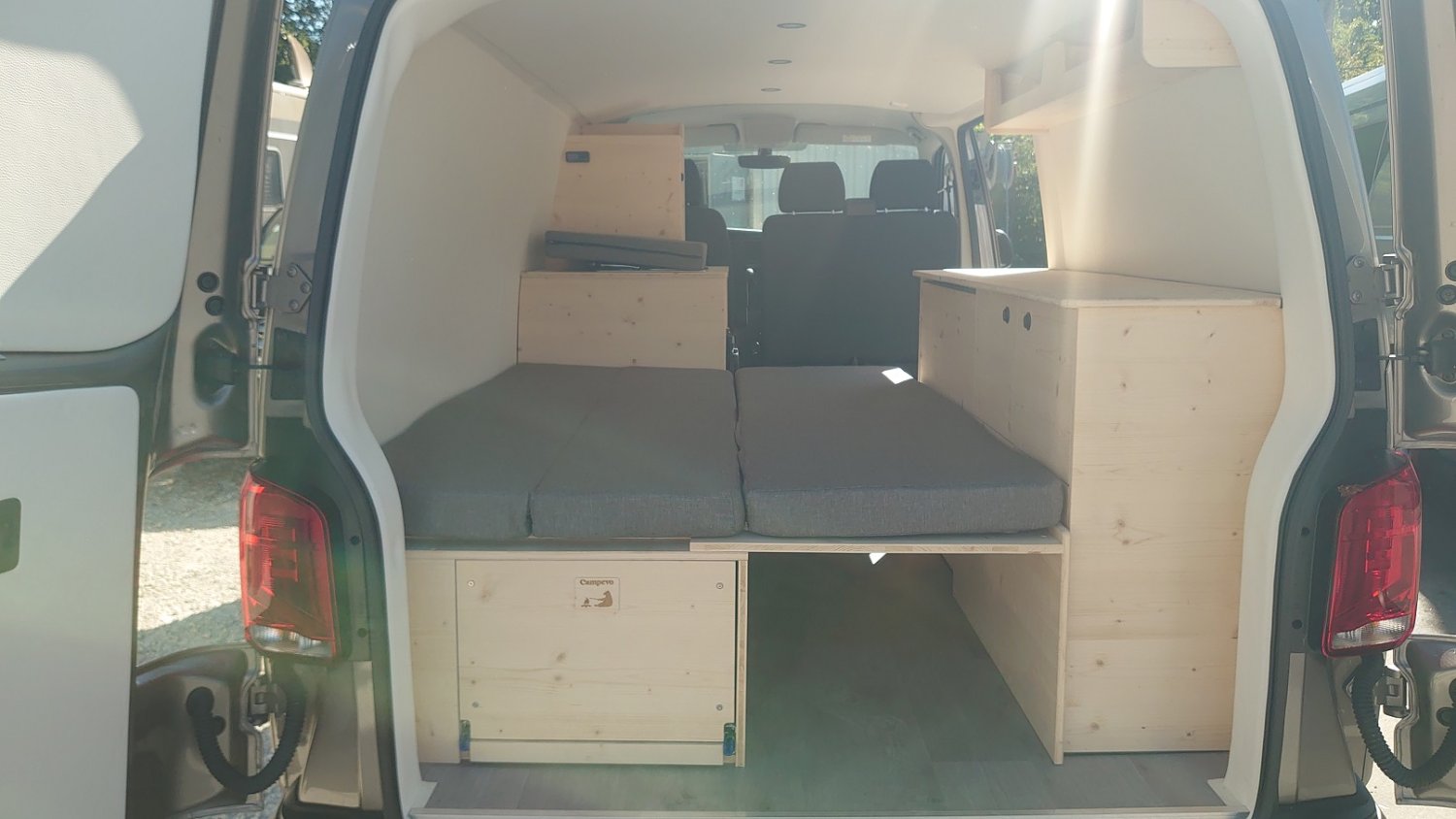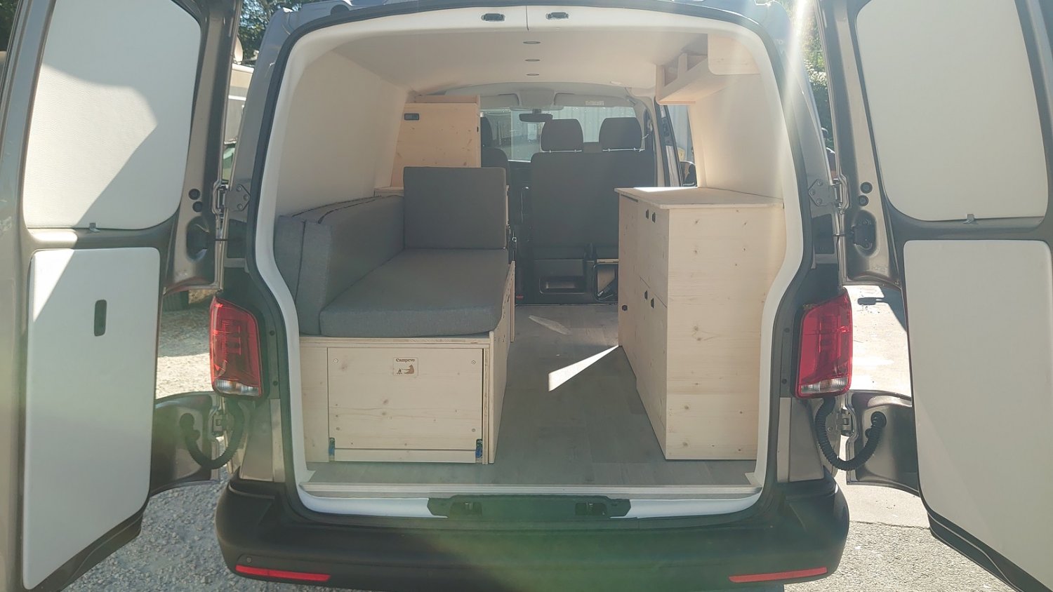 Superbe Transporter aménagé par Campévo, idéal pour deux personnes.