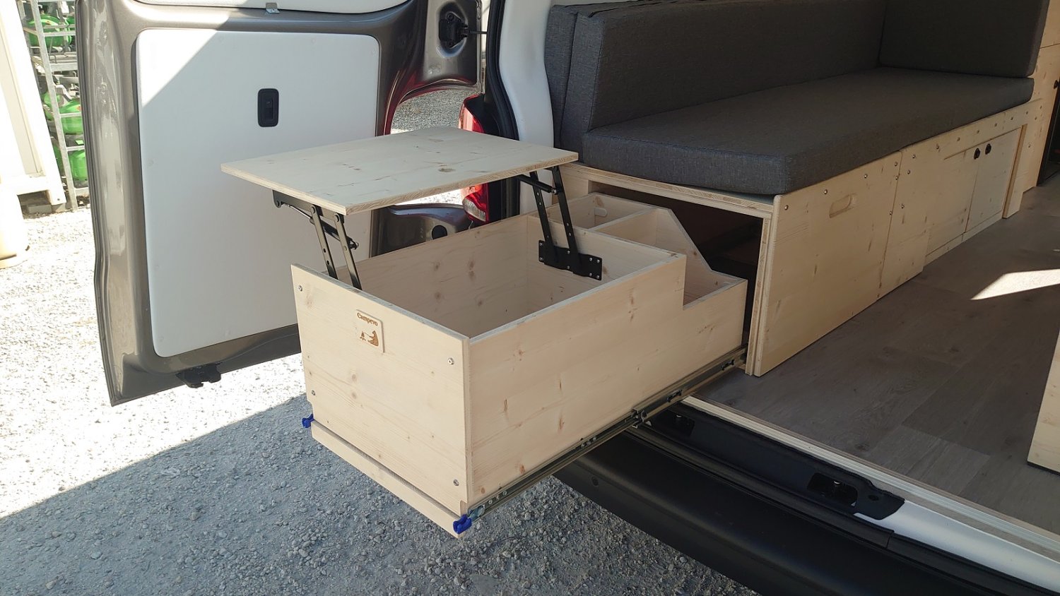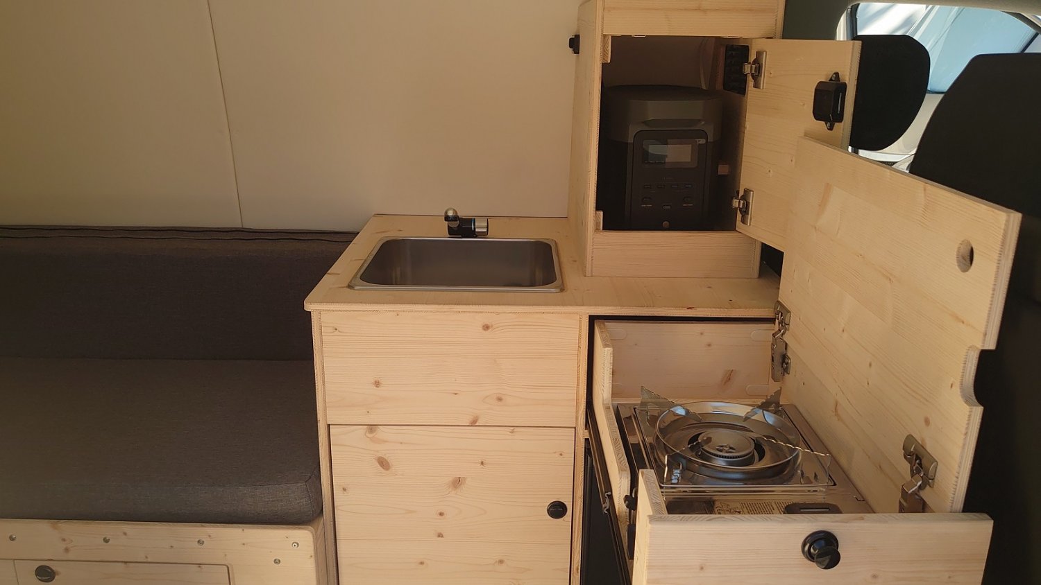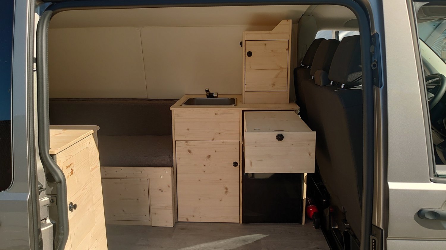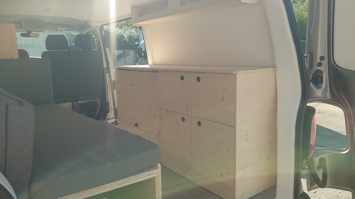 Superbe Transporter aménagé par Campévo, idéal pour deux personnes.