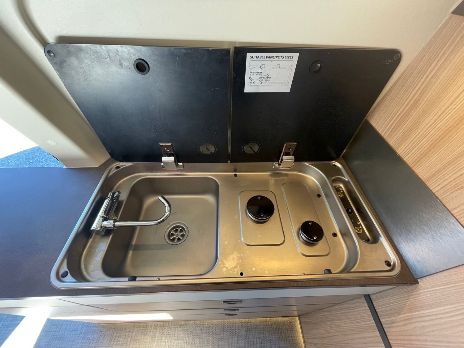 ATTELAGE, BOITE AUTOMATIQUE, WC A CASSETTE CHIMIQUE, DOUCHE ARRIERE, COFFRE DE RANGEMENT SUR ATTELAGE, CUISINE AVEC RECHAUD 2 FEUX, REFRIGERATEUR 51 LITRES, PANNEAU SOLAIRE