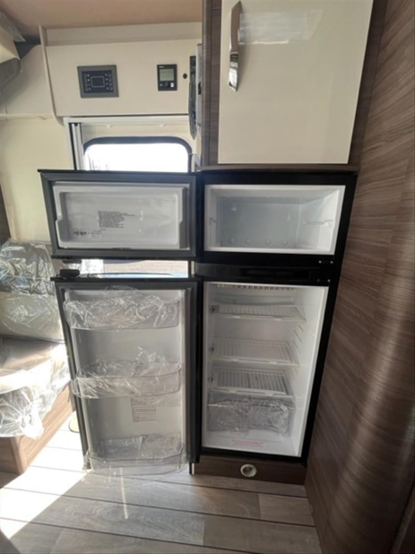 Housses de sièges cabine, Moustiquaire de porte cellule, Pare-chocs peint, Porte cellule vitrée avec fermeture centralisée à deux point, Réfrigérateur trimixte automatique (220 V, 12V, GAZ), Store cabine plissé, Réservoir carburant 75L, Jantes acier 15", Feux Jour DRL (Day runnig light), Porte cellule vitrée, Sièges cabine pivotants, Antenne intégrée au rétroviseur