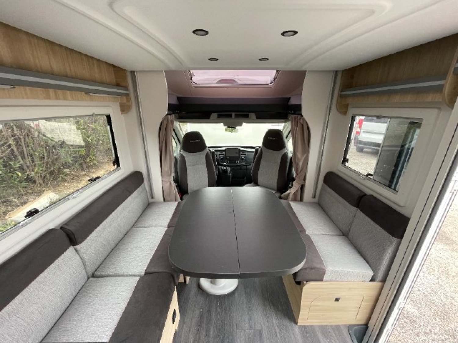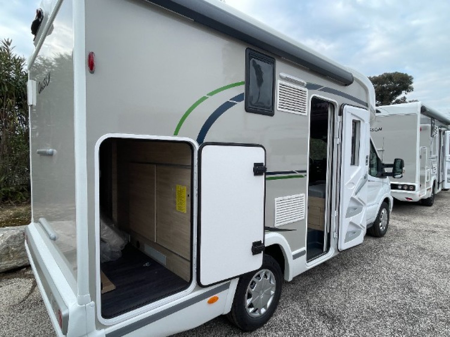De belles capacités de rangements et de la compacité : Voici le camping-car profilé 650 : à l'arrière un grand dressing et une soute pour accueillir les vélos, salle d'eau transversale et à l'avant le salon Smart Lounge et un lit de pavillon pour deux. A noter le passage de la porte d'entrée mesure 60 cm de large. A découvrir chez Libertium Toulon.