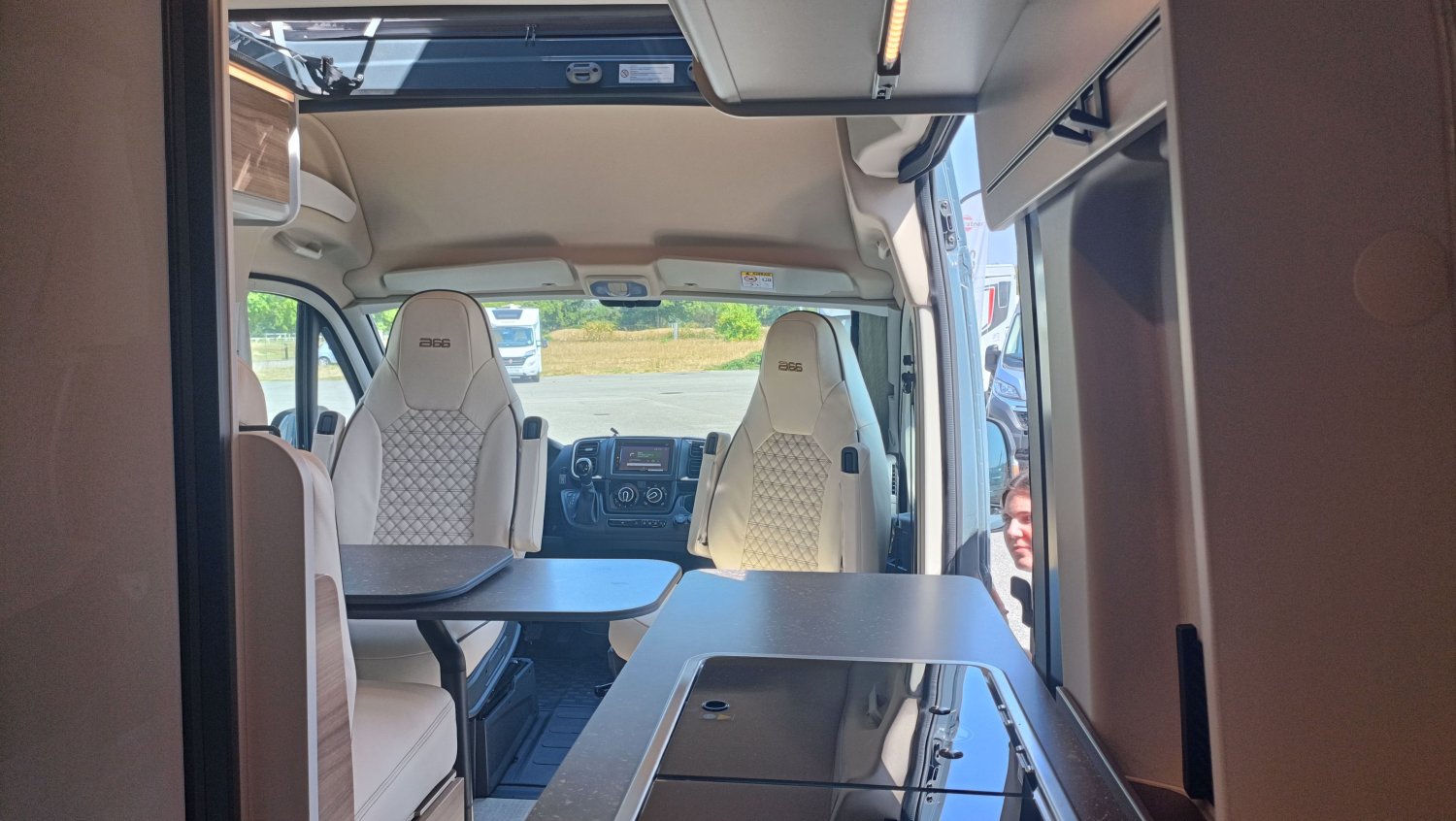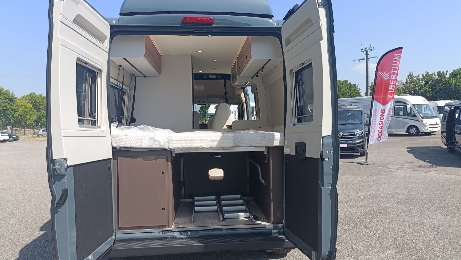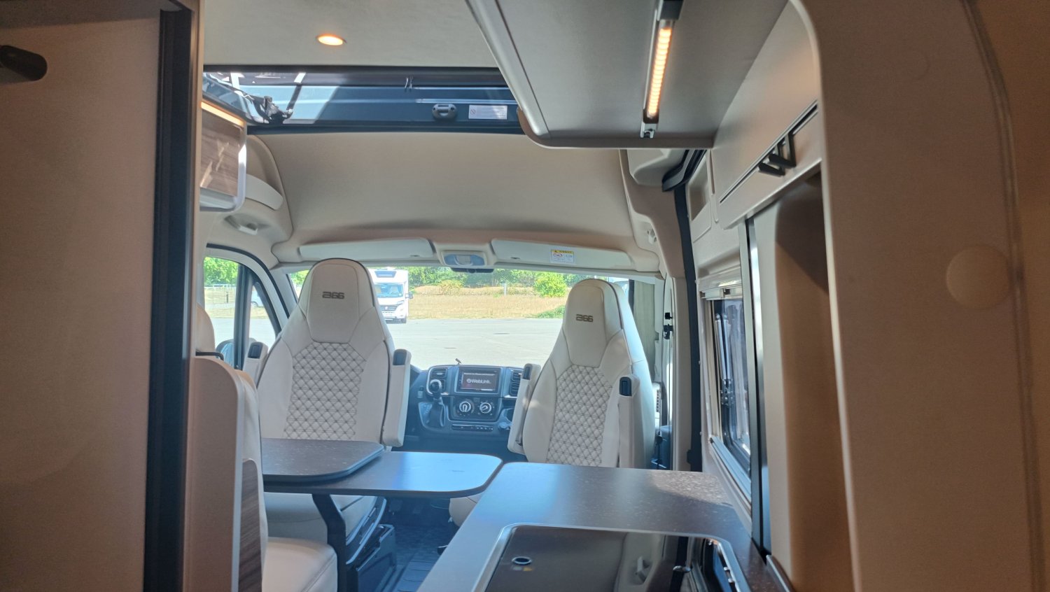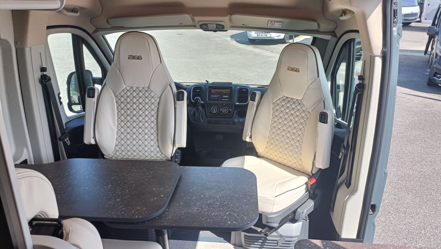 FEUX ANTI BROUILLARD AVANT, GRAND COUCHAGE ARRIERE 197X150, GRAPHISME EXCLUSIF B66, BAIE LATERALE ARRIERE GAUCHE, SELLERIE EXCLUSIVE CUIR MATELASSE AVEC SURPIQURES B66, MOTORISATION 140CV AVEC BOITE AUTOMATIQUE, MOUSTIQUAIRE PORTE LATERALE, PACK ECLAIRAGE INDIRECT, POMMEAU CUIR, BAIES A ENCADREMENT, STORE EXTERIEUR 3.75 M ANTHRACITE, STORES PLISSES OCCULTANTS DE CABINE, COULEUR CARROSSERIE GRIS LANZAROTE, VOLANT MULTIFONCTIONS, STATION MULTIMEDIA CAMERA RECUL, JANTES ALU 16", MARCHEPIED ELECTRIQUE