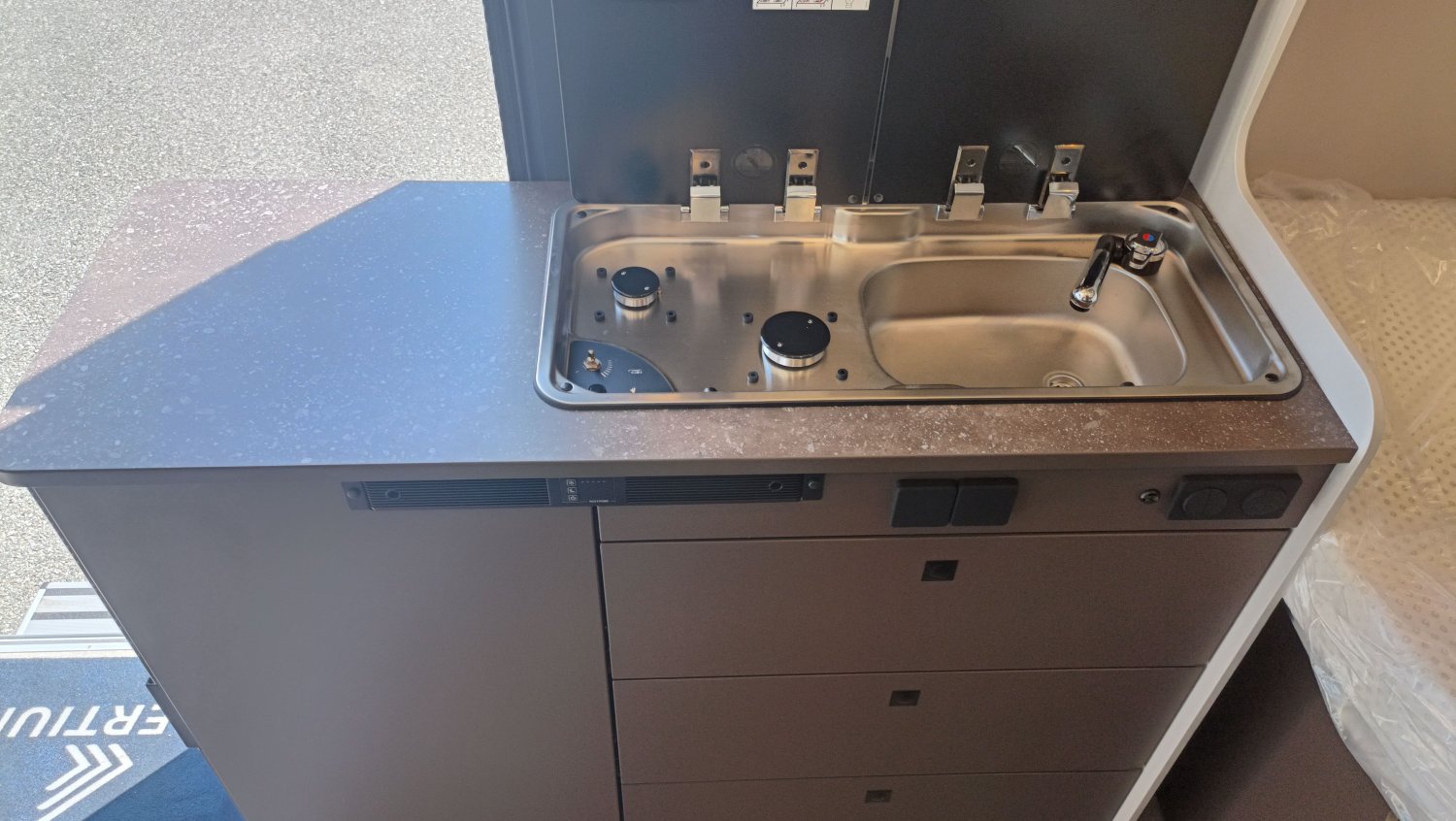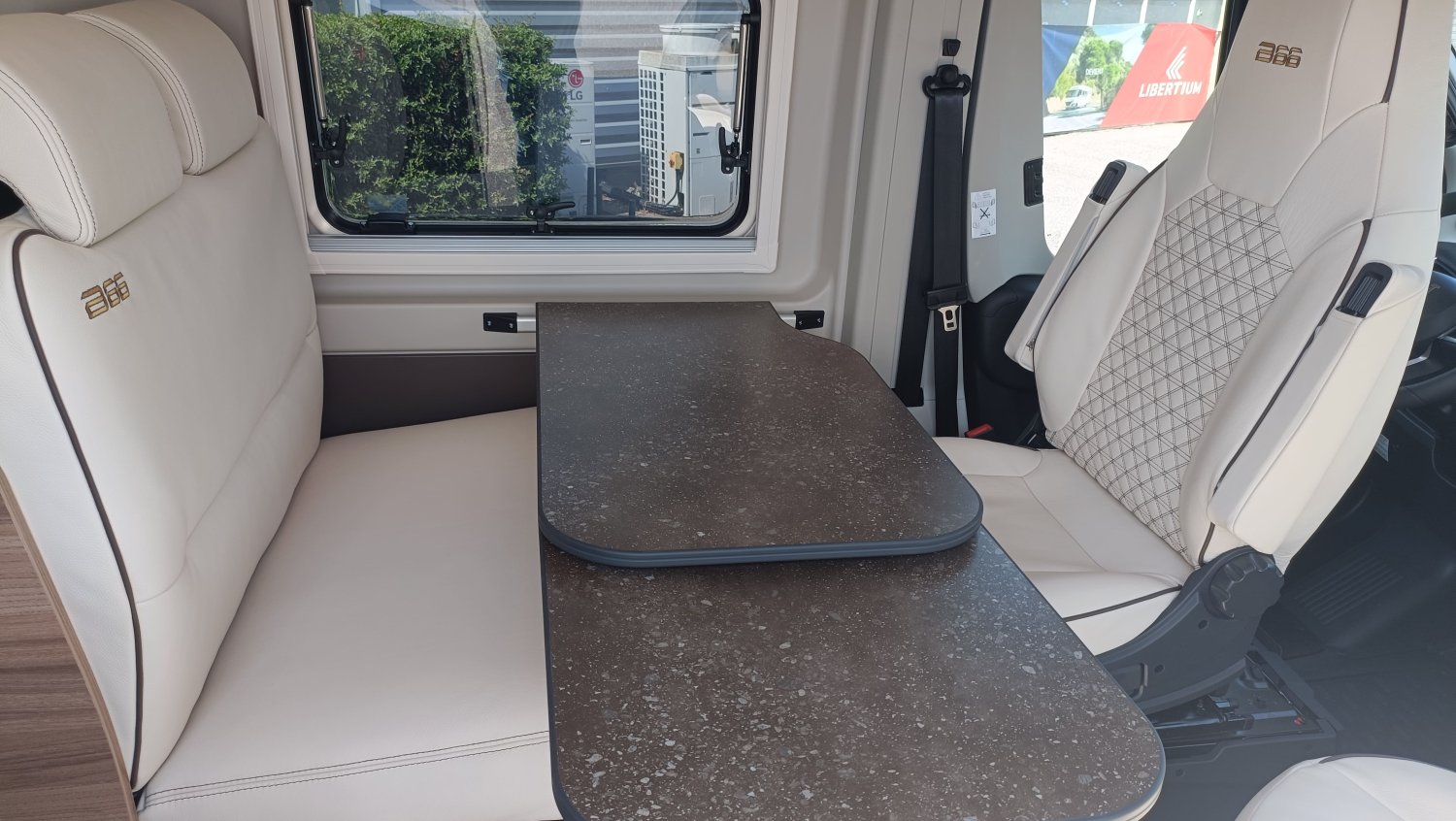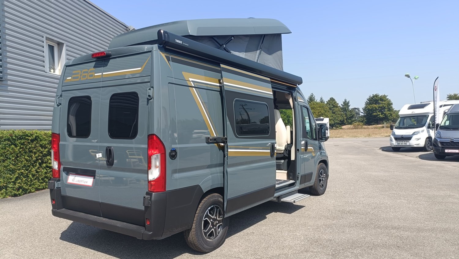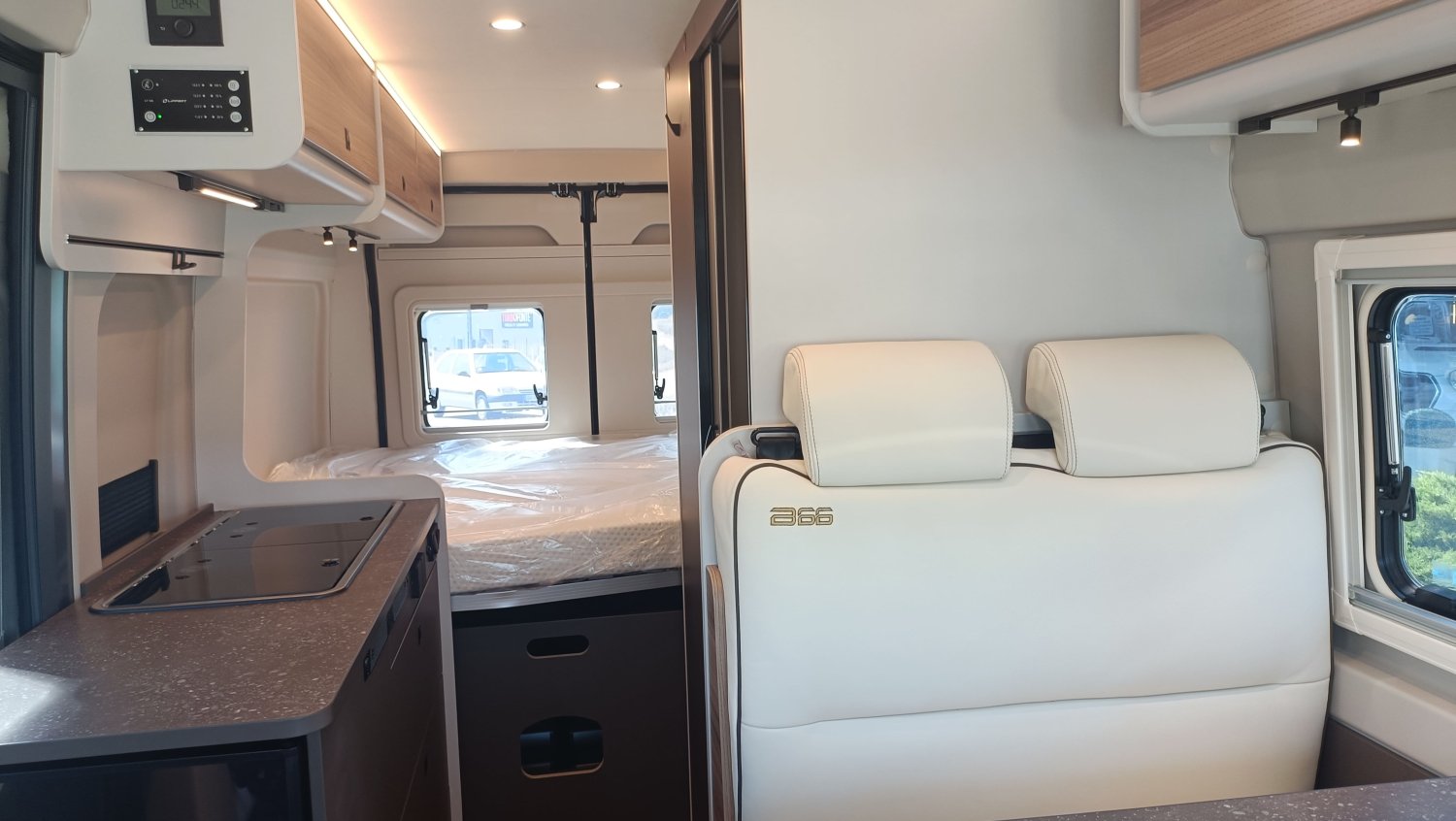 FEUX ANTI BROUILLARD AVANT, GRAND COUCHAGE ARRIERE 197X150, GRAPHISME EXCLUSIF B66, BAIE LATERALE ARRIERE GAUCHE, SELLERIE EXCLUSIVE CUIR MATELASSE AVEC SURPIQURES B66, MOTORISATION 140CV AVEC BOITE AUTOMATIQUE, MOUSTIQUAIRE PORTE LATERALE, PACK ECLAIRAGE INDIRECT, POMMEAU CUIR, BAIES A ENCADREMENT, STORE EXTERIEUR 3.75 M ANTHRACITE, STORES PLISSES OCCULTANTS DE CABINE, COULEUR CARROSSERIE GRIS LANZAROTE, VOLANT MULTIFONCTIONS, STATION MULTIMEDIA CAMERA RECUL, JANTES ALU 16", MARCHEPIED ELECTRIQUE