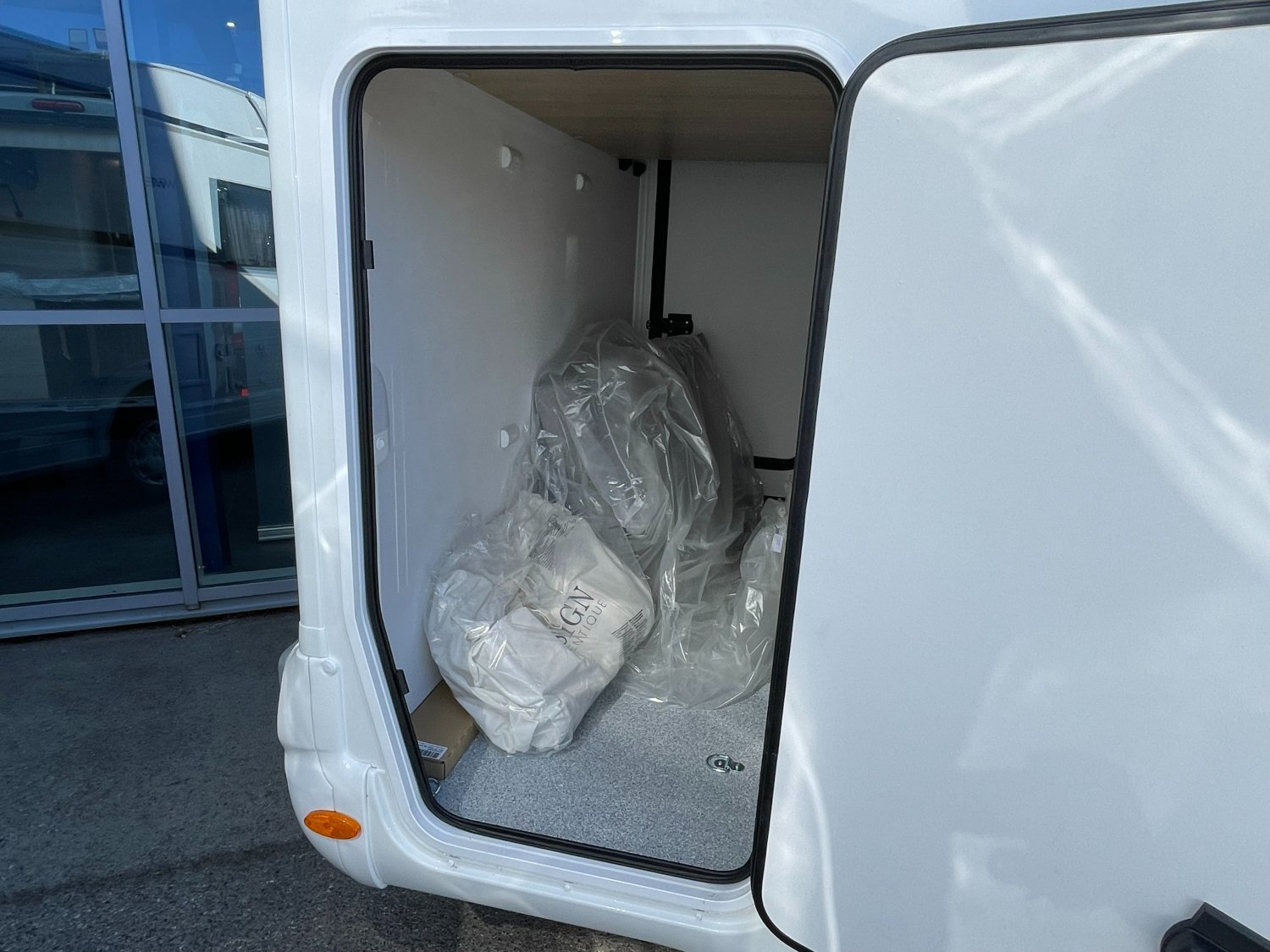 Pour ceux qui veulent de l’espace, beaucoup d’espace : Le 640 est incroyablement spacieux en seulement 6,99m : Maxi salon, maxi cuisine, maxi salle de bains, Garage à vélos ou scooter, dressing et lit largeur 1,60m, qui dit mieux ?