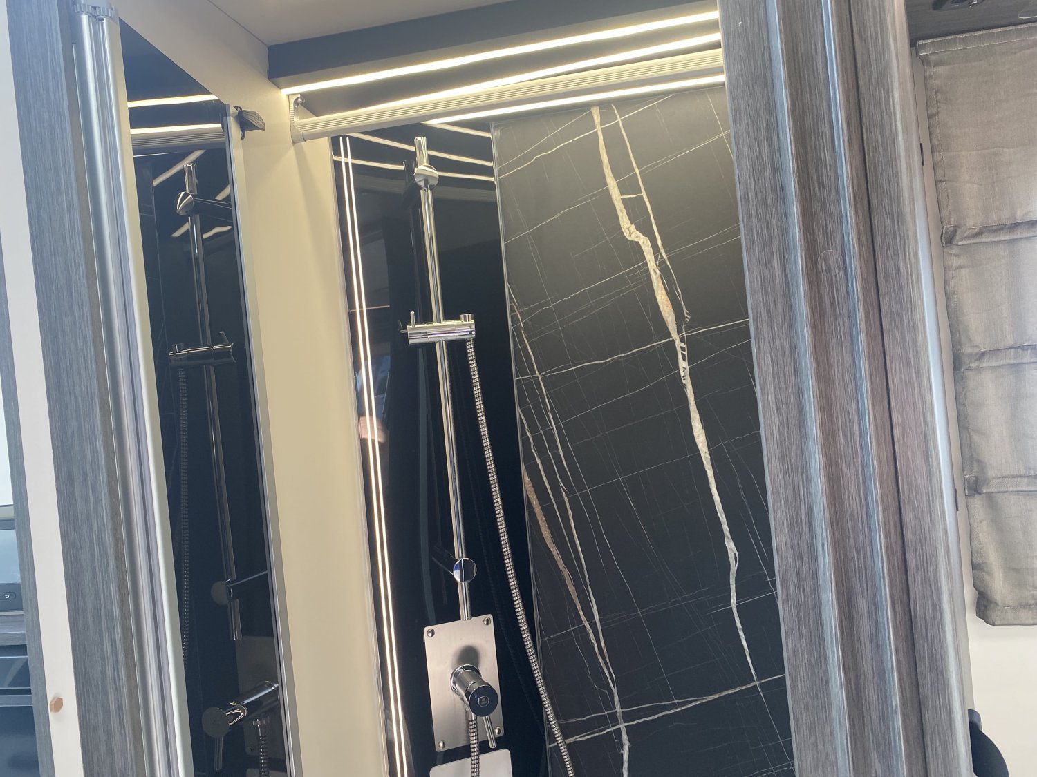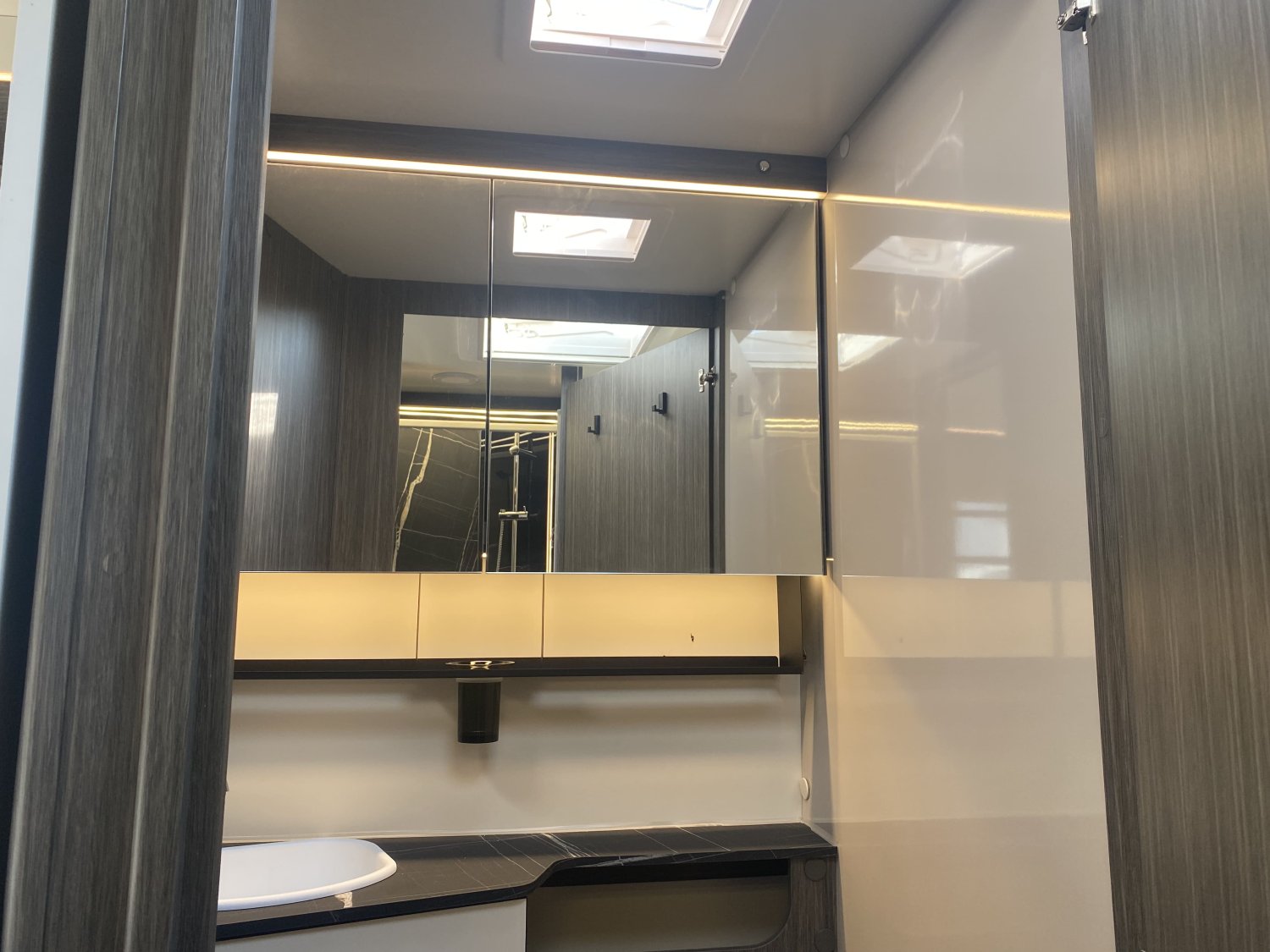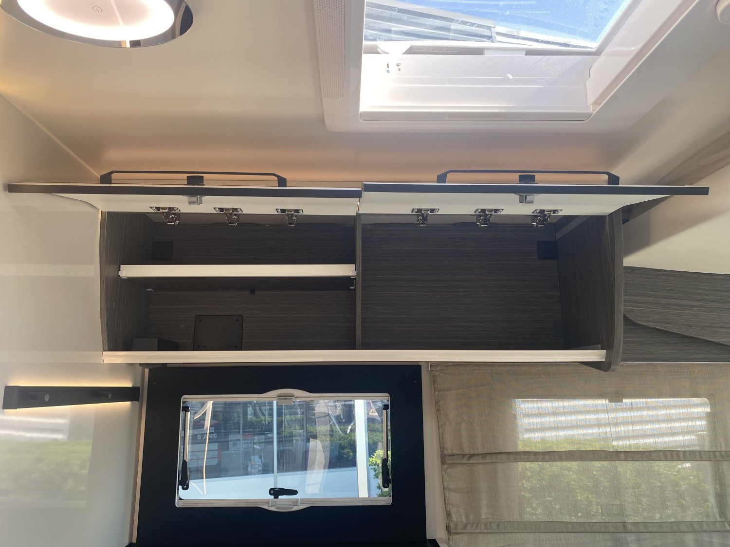 Intégral lit central sur soute garage réglable en hauteur, lit de cabine, salon en face à face et douche indépendante pour cette nouvelle série 25 Edition de chez Mc Louis. Véhicule sur équipé avec une finition spécifique, intérieure et extérieure et qui aborde une nouvelle face avant.