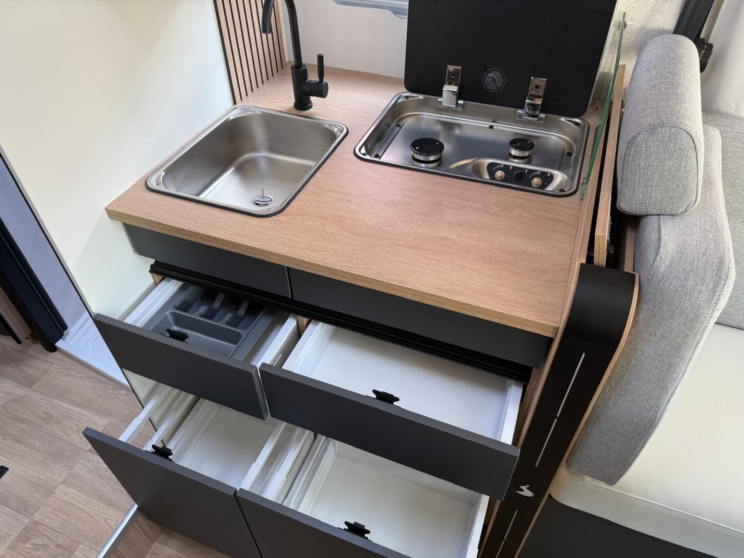 -Caméra de recul, HP dans la cabine et dns la cellule, 140 CV, BOITE AUTOMATIQUE, CABINE NOIRE, REFRIGERATEUR A COMPRESSION THEDFORD, STORE EXTERIEUR + TIROIR BAS DE CAISSE, DOUCHETTE EAU CHAUDE/FROIDE EN SOUTE, BATTERIE LITHIUM 210 AH, BOOSTER DE CHARGE, 2 PANNEAUX SOLAIRES 100W, TOPCon haute performance, CHAUFFAGE HYBRIDE TRUMA D 6E (DIESEL/230V), LIT DE PAVILLON ELECTRIQUE AVEC SOMMIERS A LATTES, PACK JANTES :, -JA 16", volant simili, aérateurs gris aluminium, PACK MEDIA :, -autoradio 7" Pioneer, DAB, AppleCar/AndroidAuto