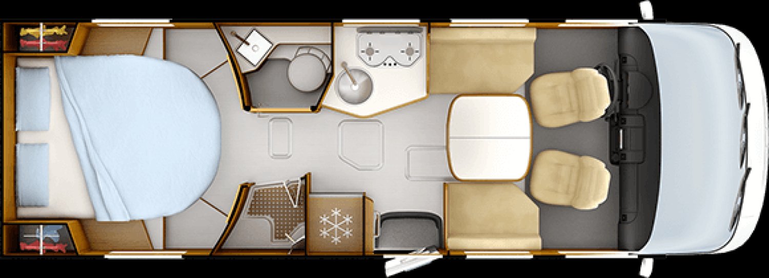 DOUCHE SEPAREE ET INDEPENDANTE, WC A CASETTE EXTRACTIBLE, MEUBLE TV OUVERT POUR ECRAN 32", VASQUE RETANGULAIRE THERMOFORMEE AVEC MITIGEUR, PORTE CELLULE XL, RESERVOIR EAUX USEES CHAUFFE, PLAQUE DE CUISSON 2 FEUX INOX ALLUMAGE PIEZZO, GRAND SALON OUVERT AVEC BANQUETTES FACE A FACE ET ACCOUDOIRS, LIT CENTRAL 160*196CM, VOLANT ET POMMEAU CUIR, TABLE PORTEFEUILLE, SOMMIER LIT CENTRAL RETRACTABLE, TIROIR DE RANGEMENT EN FACADE DE LIT CENTRAL, CHAUFFAGE DIFFUSE PAR PIED DE TABLE SALON, REFRIGERATEUR GRANDE PROFONDEUR 156L
