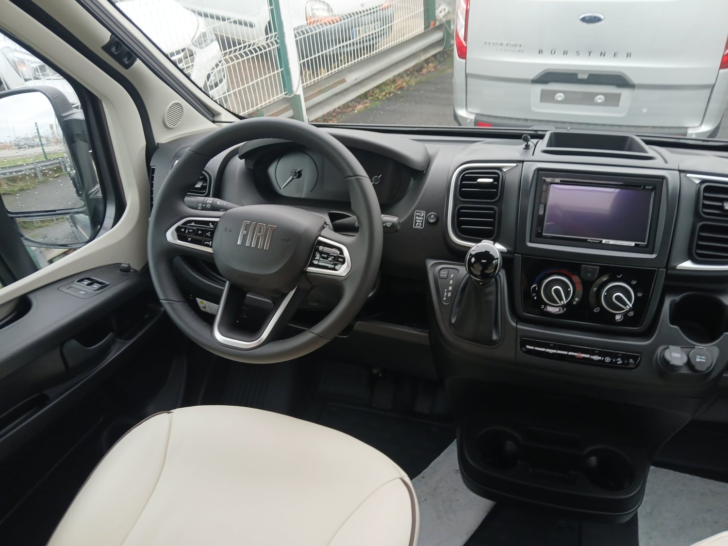 Burstner fait très fort avec cette série B 66. Ce fourgon de 5m99 dispose de 3 couchages avec grand lit arrière et un dinette transformable. Coup de cœur assuré tant il séduisant par sa couleur extérieure Gris Lanzarote, sa sérigraphie spécifique B66, sa sellerie cuir et son nouveau mobilier. Intérieurement, il est admirablement bien conçu avec une belle chambre arrière avec un lit en 150x197cm, une salle de bain vario, une cuisine astucieuse et un salon généreux. Un niveau d'équipement de série très appréciable.