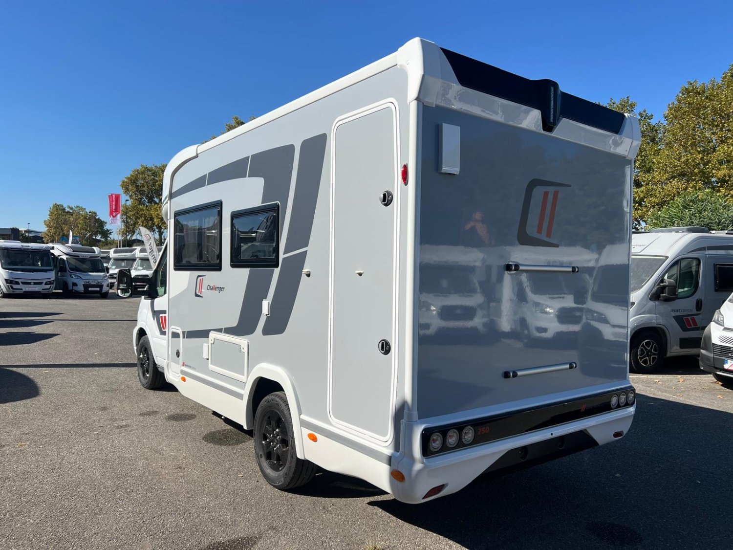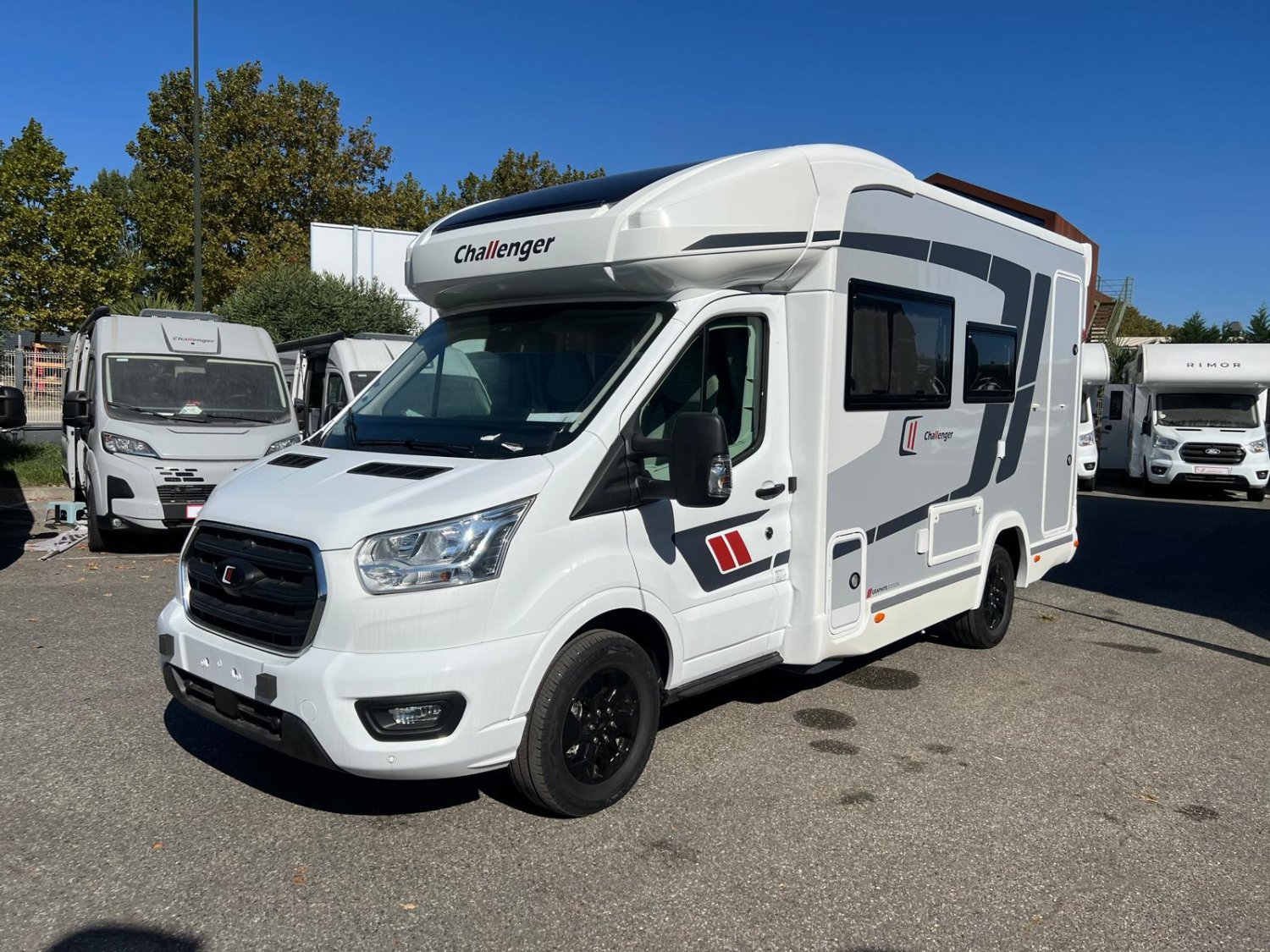Le Challenger 250 Graphite Edition 2026 est un camping-car profilé de 7,20?m sur porteur Ford avec boîte automatique. Il dispose d’un grand salon, d’une salle d’eau avec douche séparée, et d’un lit de pavillon. Conçu pour 4 personnes, il offre une soute modulable et de nombreux rangements.