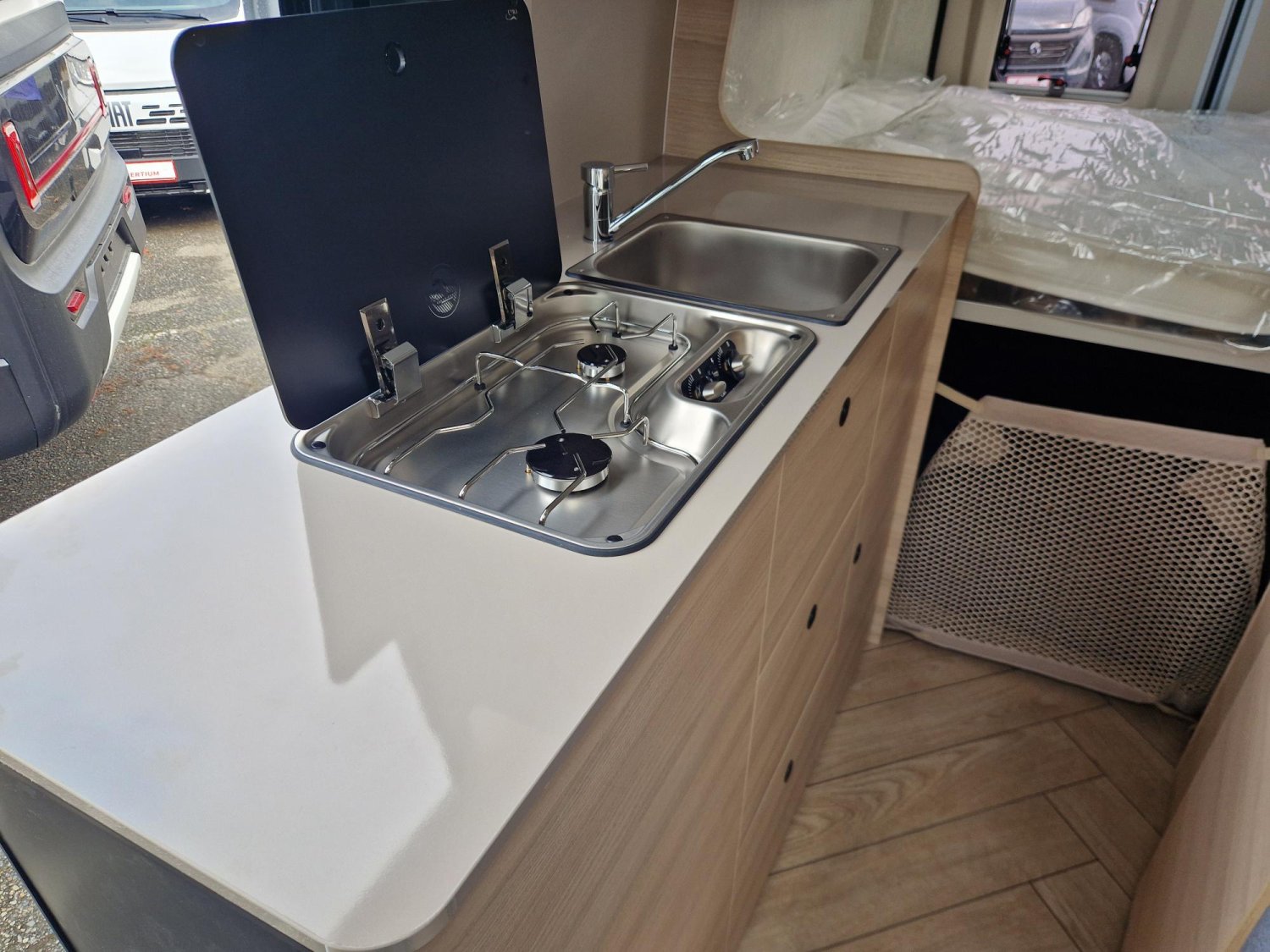 Fourgon de marque leader en 6 mètres avec lit transversal arrière, bien équipé de série avec kit 3 éme couchage, PS, Store, Occultants REMiS. Excellent rapport qualité prix sur une base Citroen 140 CV.