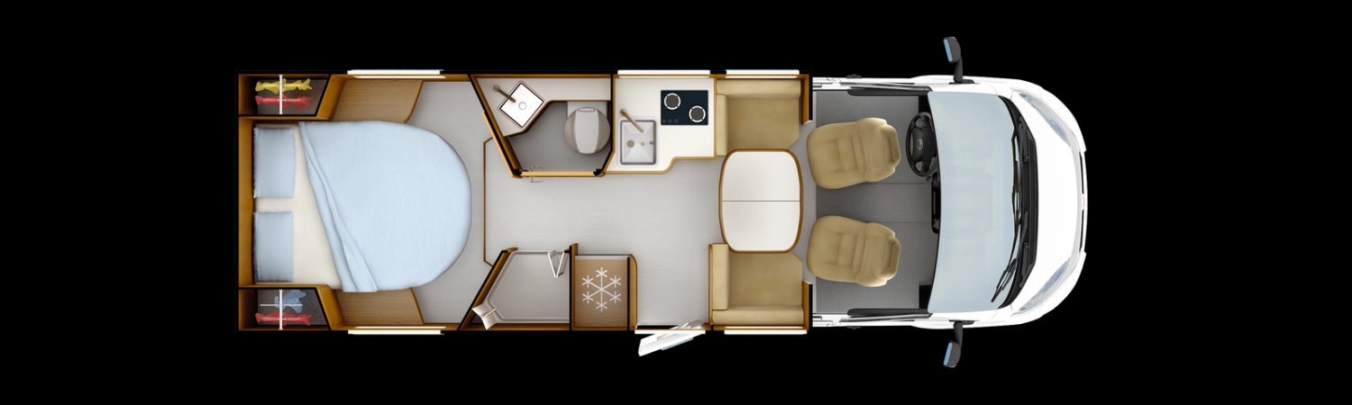 Cabine noire métallisée Décoration extérieure inédite et exclusive PACK SMART de série (jantes alliage léger 16" bi-ton, volant cuir, habillage gris sur aérateur) PACK RELAX de série (TPMS, frein de parc électrique) Station multimédia DAB avec grand écran tactile de 9", navigation intégrée et fonctions APPLE CAR PLAY/ANDROID AUTO Ambiance intérieure unique LUCEO avec accessoires noirs Ambiance tissu inédite et exclusive avec matelassage au motif géométrique : DUBROVNIK TRUMA Combi 4 EH DIESEL (diesel + électrique) avec kit altitude et commande de chauffage CP PLUS (implique 2e batterie cellule) Réservoir d’eaux usées chauffé Pack SELECT de série