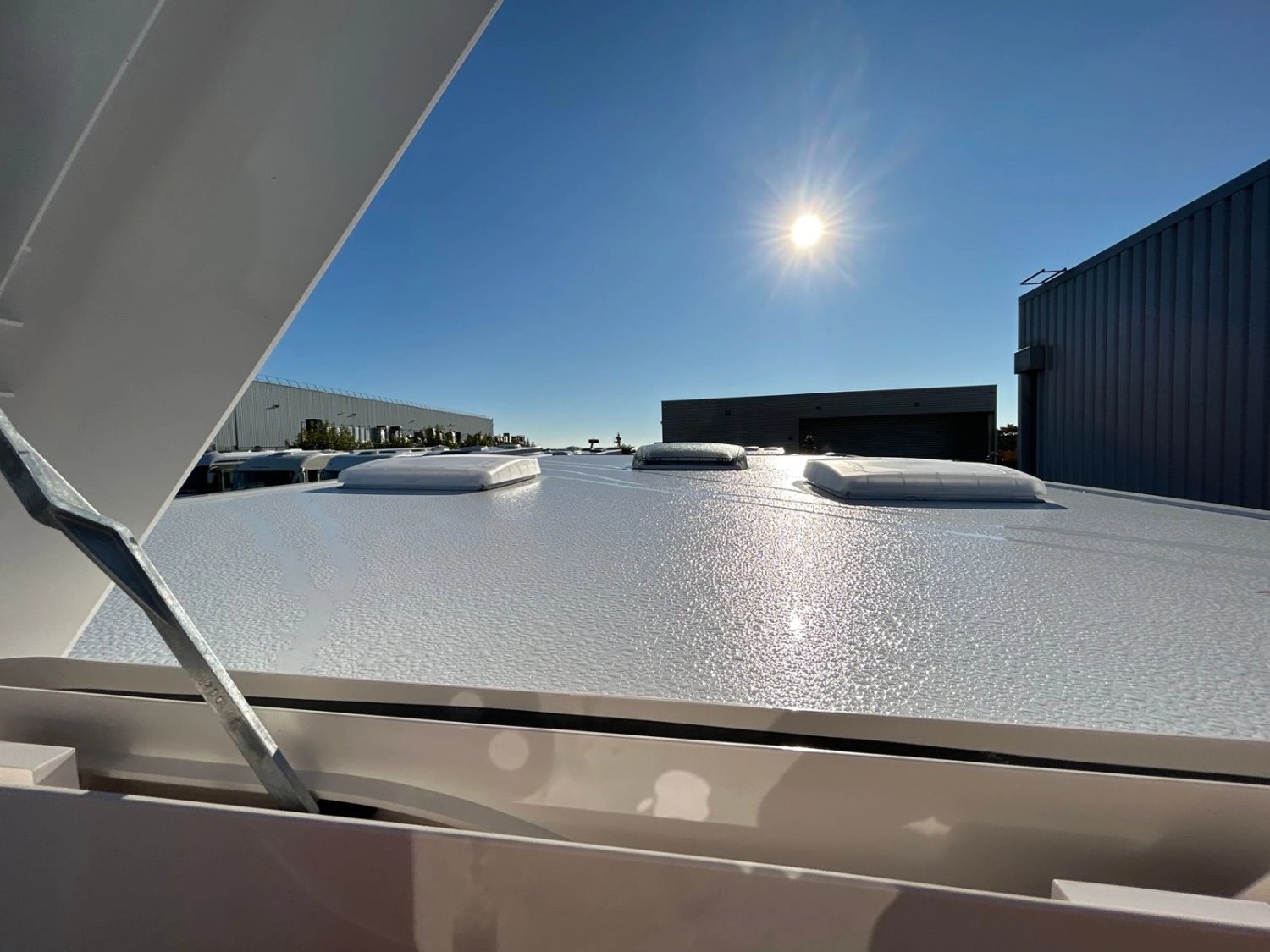 •Store pare-brise isotherme coulissant, double plissé : haut/bas (pare-soleil) et bas/haut (pare-vue)