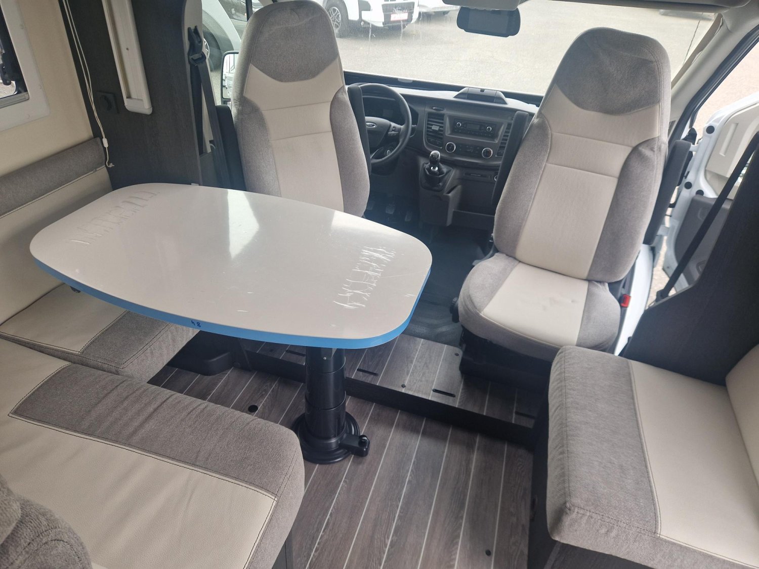 Profilé de marque leader, avec lit central modulable en hauterur et lit de pavillon électrique 2 places. 5 couchages et 5 places CG, état proche du neuf, bien équipé avec notamment clim cellule 220 W, sur une base Ford 2 l 170 CV en boite manuelle.