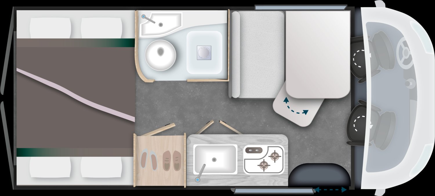 Hill descent control, Jantes acier avec enjoliveurs 15'' gris, Pré-équipement TV, Chauffage au gaz, Rétroviseurs électriques dégivrants, Extension table dinette, Marchepied électrique, Lanterneau panoramique, Climatisation manuelle de cabine, Régulateur/limiteur de vitesse, Traction +, Sièges de cabine pivotants réglables en hauteur + accoudoirs, Fenêtres double-vitrage avec combiné stores moustiquaire