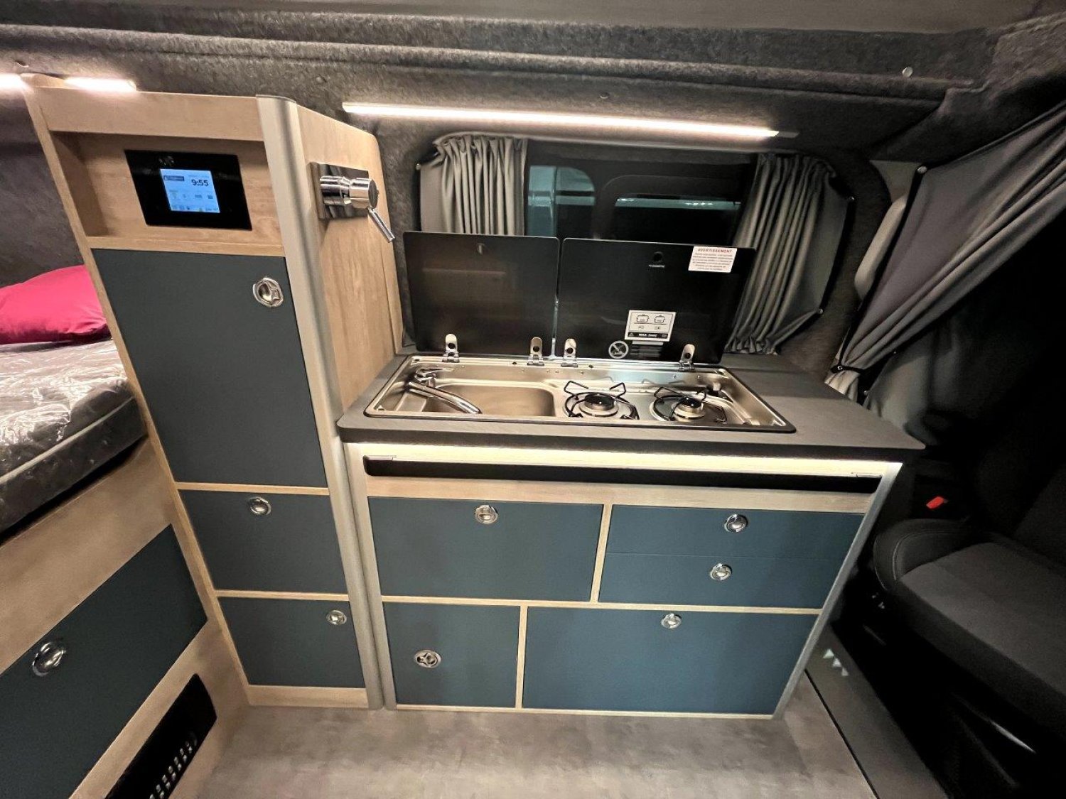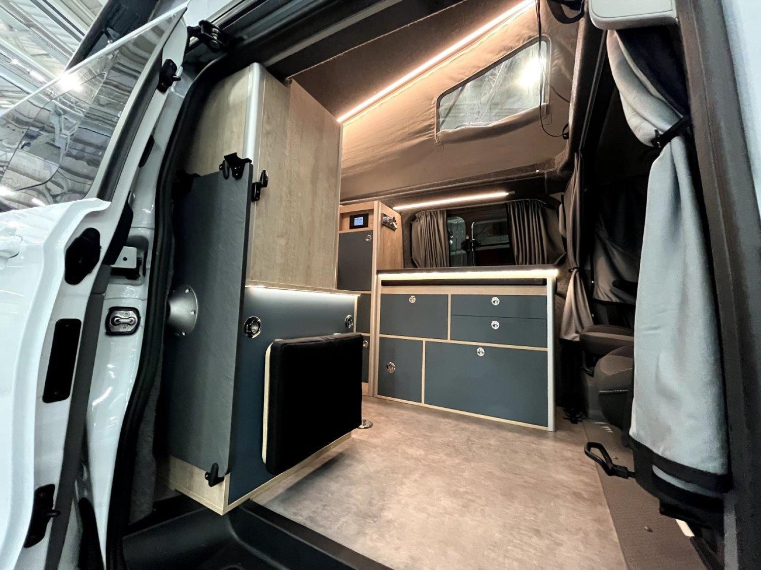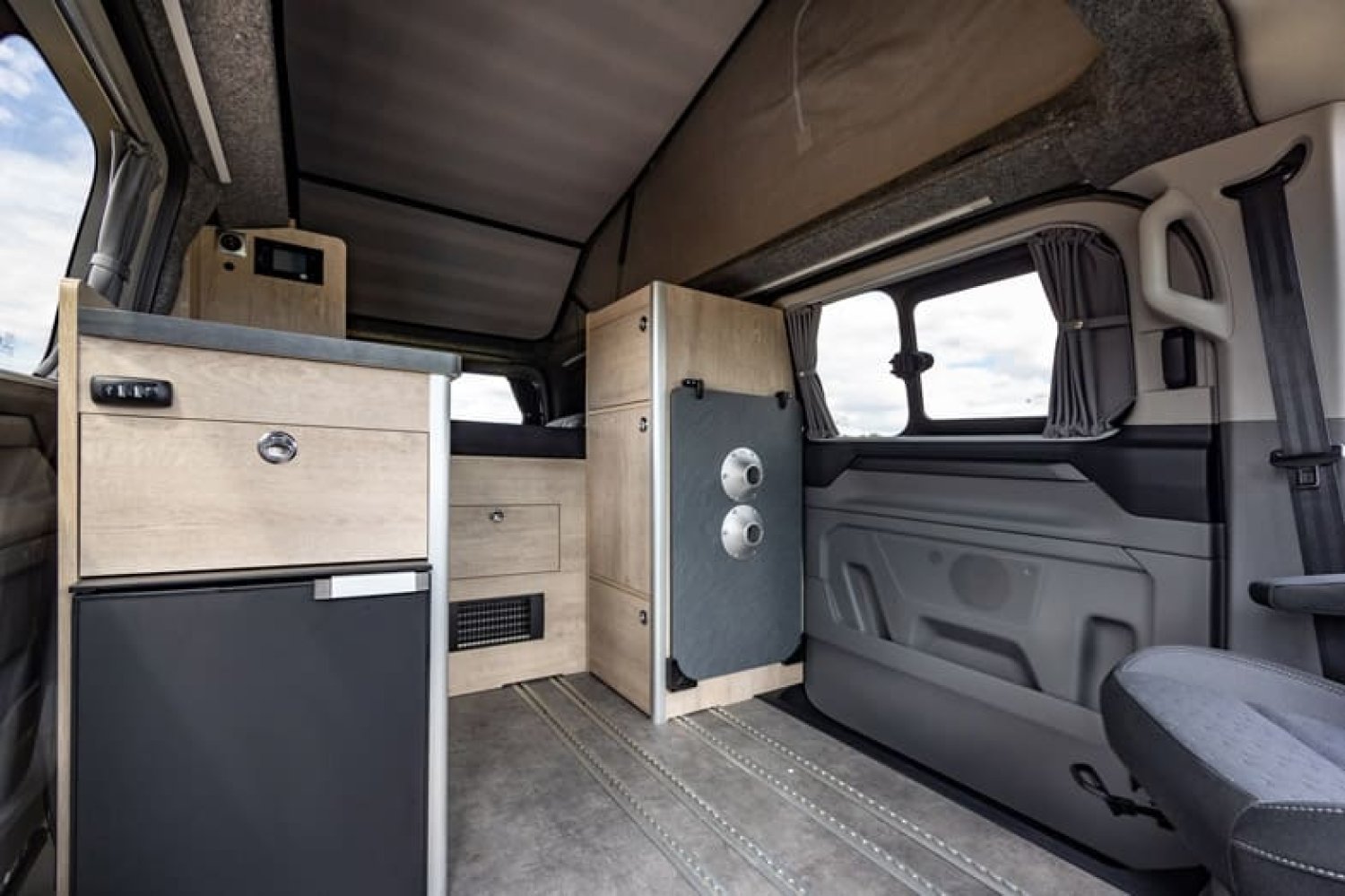 - Autonomie complète : batterie lithium 150 Ah, réfrigérateur compression, éclairage LED.