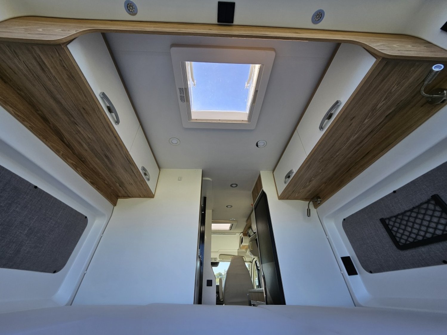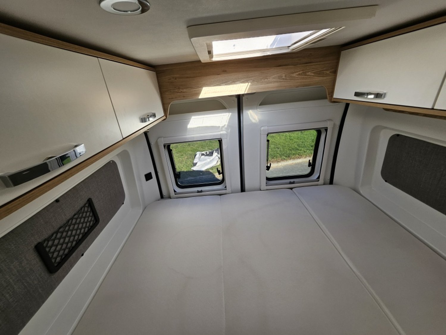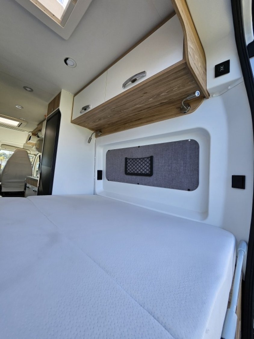 AMENAGEMENT INTERIEUR : Lit transversal 2 places. Lit dinette 1 places. Salle de bain et toilette non séparés (WC coulissant offrant la plus grande douche du marché). Moustiquaires + stores occultants. Siège conducteur et passager pivotants